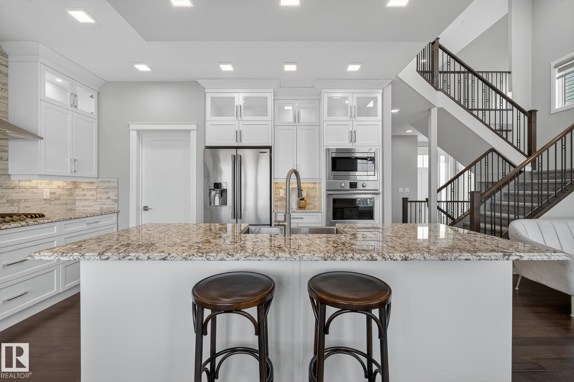 TURNKEY & IMMACULATELY MAINTAINED! Homes like these don?t come around too often - welcome home to this custom built walk-out two storey backing the pond in the heart of Starling! As you enter the home, you are greeted by stunning sunlight and pond views from the 4-panel two storey windows in the open to above greatroom featuring 18 ft. Ceilings. The kitchen features European-style cabinetry, Frigidaire professional appliances, gas-stove, and beveled granite countertops throughout the home. The second level includes a spacious bonus room, huge primary retreat smartly designed with WIC leading to the laundry room, and 2 additional bedrooms complete with THEIR OWN ENSUITE. The walkout basement is fully finished w/ custom wet bar, rec area with stone fireplace feature, 4th bedroom and best of all? gorgeous lower stone patio area looking on to the pond. Move-in ready - all that?s missing is you!