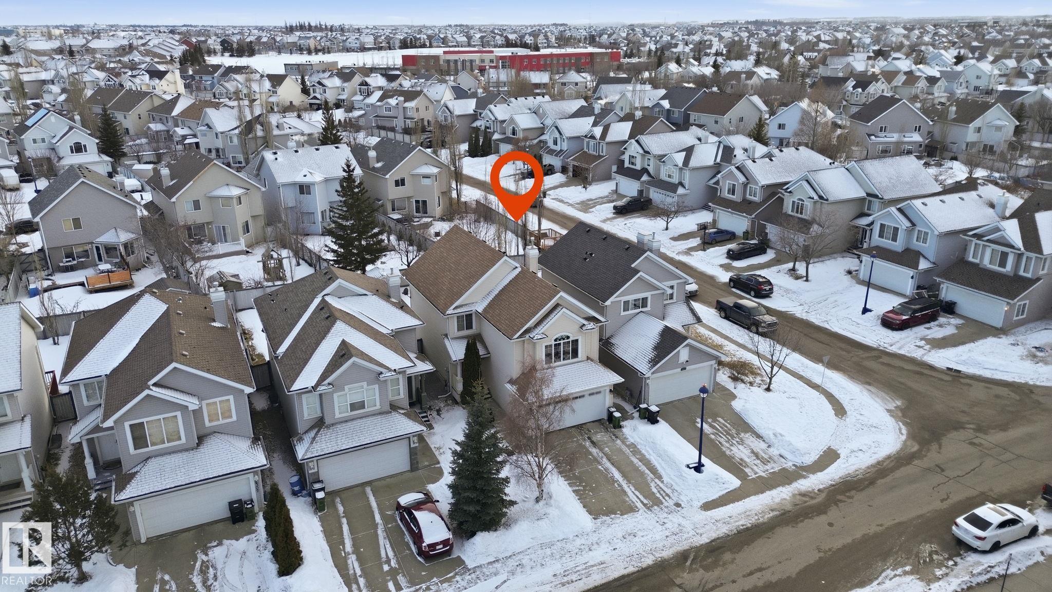 Beautifully maintained landmark home in Summerside, just steps from Father Michael Catholic School and close to parks, walking paths and lake amenities. This family home offers three separate living spaces, including a bright bonus room with 9? ceilings and gas fireplace. The main floor features hickory hardwood floors and an open kitchen with granite countertops, maple cabinetry, island, stainless steel appliances and glass tile backsplash. Dining area overlooks the south-facing yard with a freshly stained 12x12 deck and approved shed. Upstairs offers newer carpet, a spacious primary bedroom with walk-in closet and updated bathrooms, including a shared bath with new tub, tile and lighting. Additional features include A/C, Nest thermostat & doorbell, newer hot water tank, newer shingles, motorized living room shades, and a drywalled, painted garage. Lovingly cared for by owners who appreciated the functional kitchen, defined living spaces, and vibrant community amenities.
