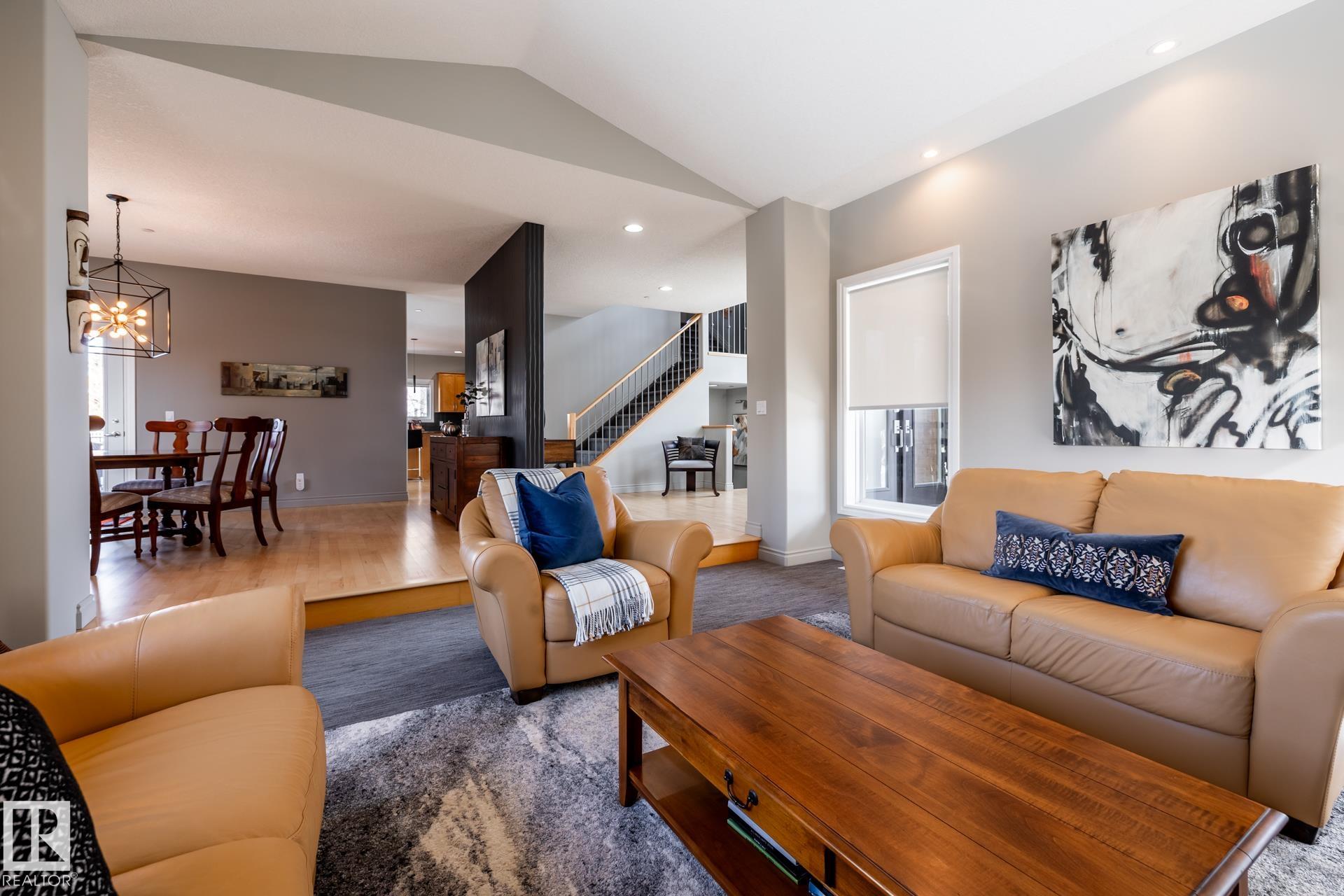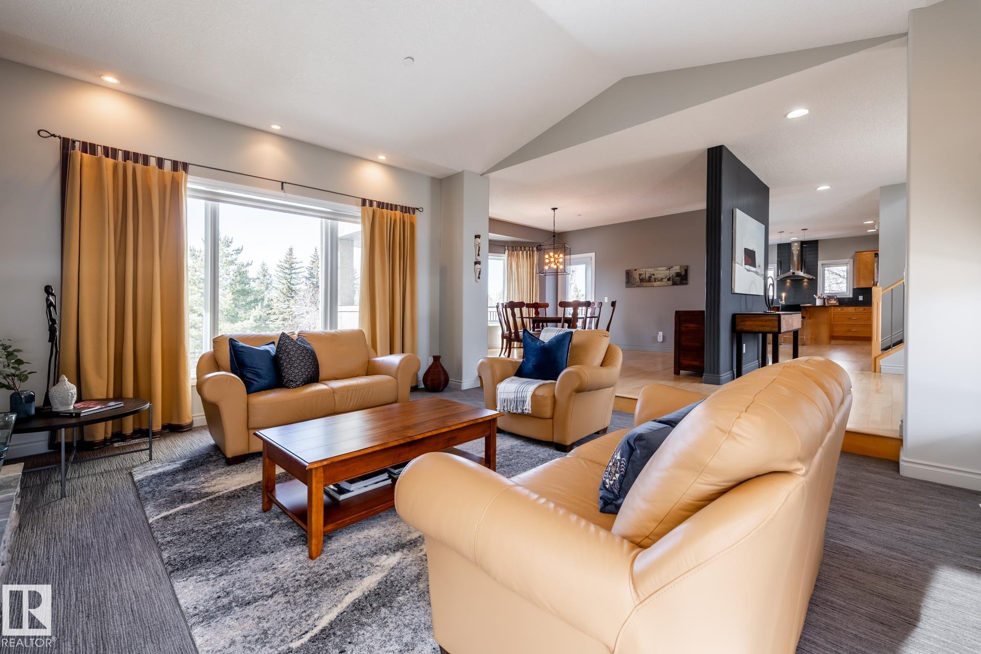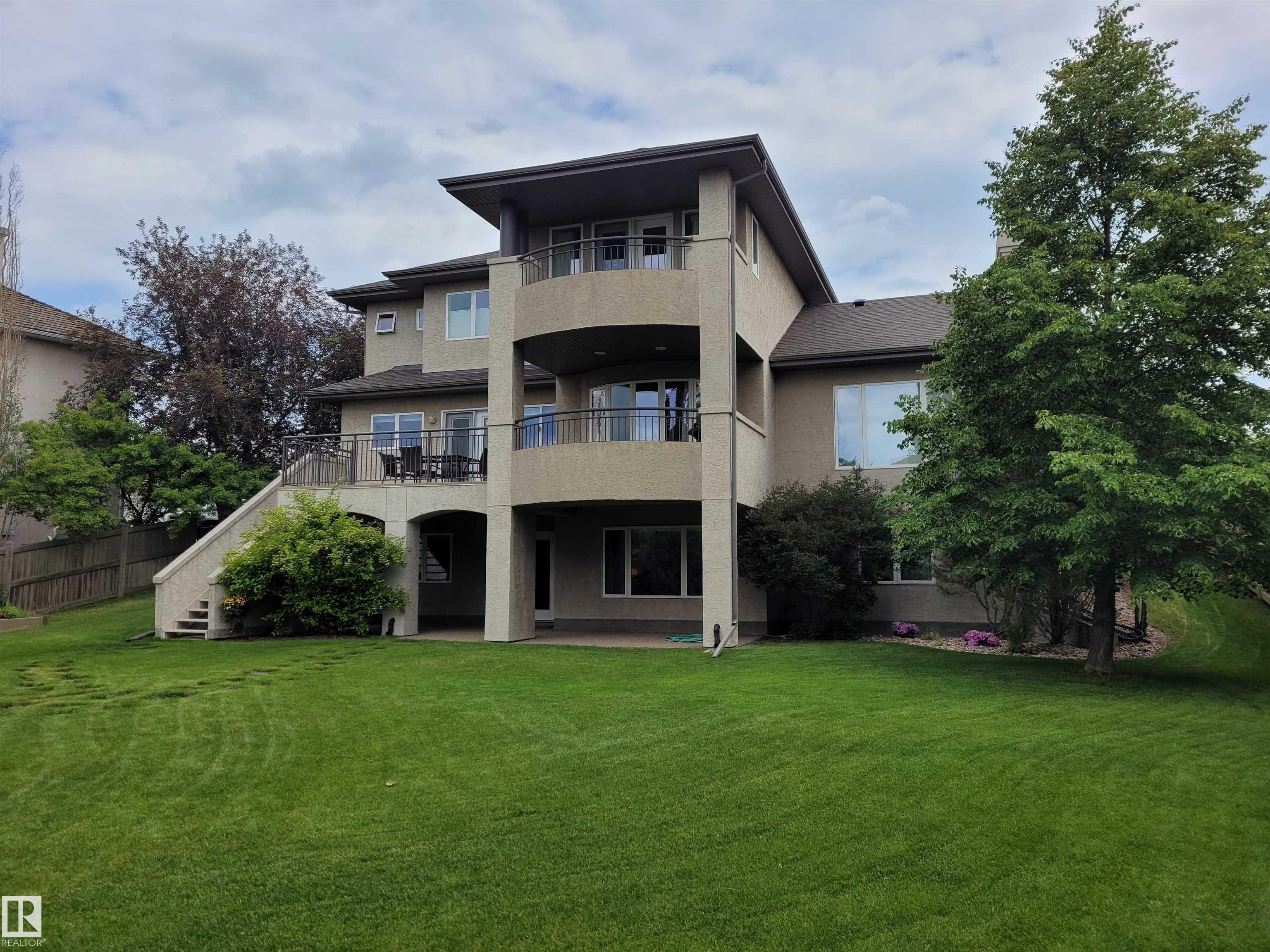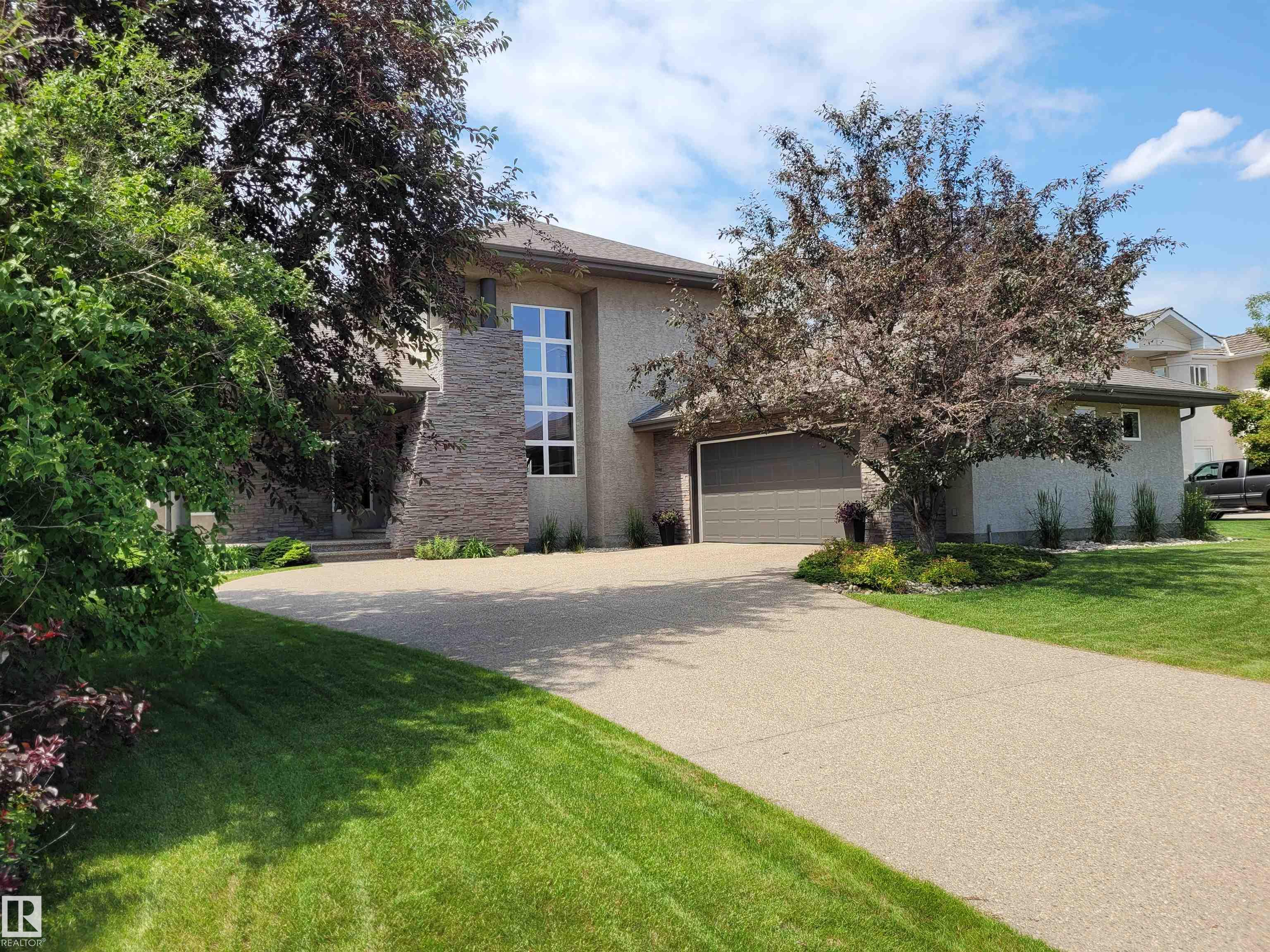 EXECUTIVE HOME WITH PRIVATE LOT....!WELCOME HOME. METICULOUS ATTENTION TO DETAIL. CUL DE SAC LOCATION. Upon entering this property you walk into a spacious foyer, living room with vaulted ceilings and feature stone fireplace and formal dining room. Spacious nook area, walk in pantry and large kitchen with granite and new SS appliances. Kitchen walks onto a large deck overlooking yard. Main floor laundry room with sink and loads of closets. Upstairs is a private office and the Primary retreat is expansive with walk in closet, and well appointed 5 pce.ensuite. Basement is a WALKOUT with in-floor heating, 2nd and 3rd bedrooms, rec room with doors to lower covered patio and 4 pce. bathroom.YARD is beautifully landscaped with private sitting area and firepit. Oversized dble garage with man door, drain and cold water tap. Upgrades: roof (2024),HE furnace (2025) sump pump (2023) and more.