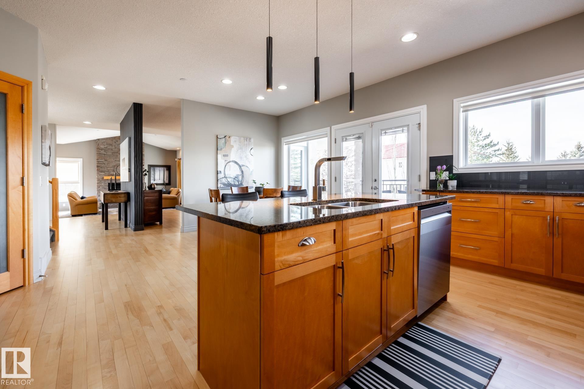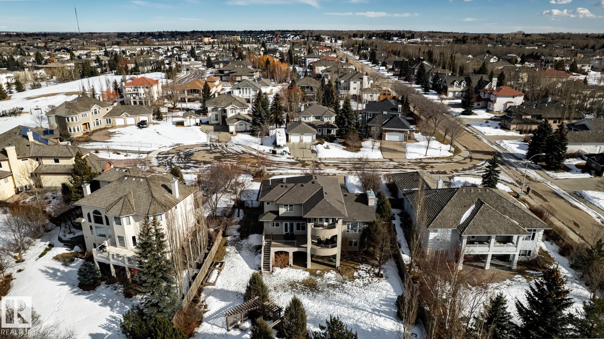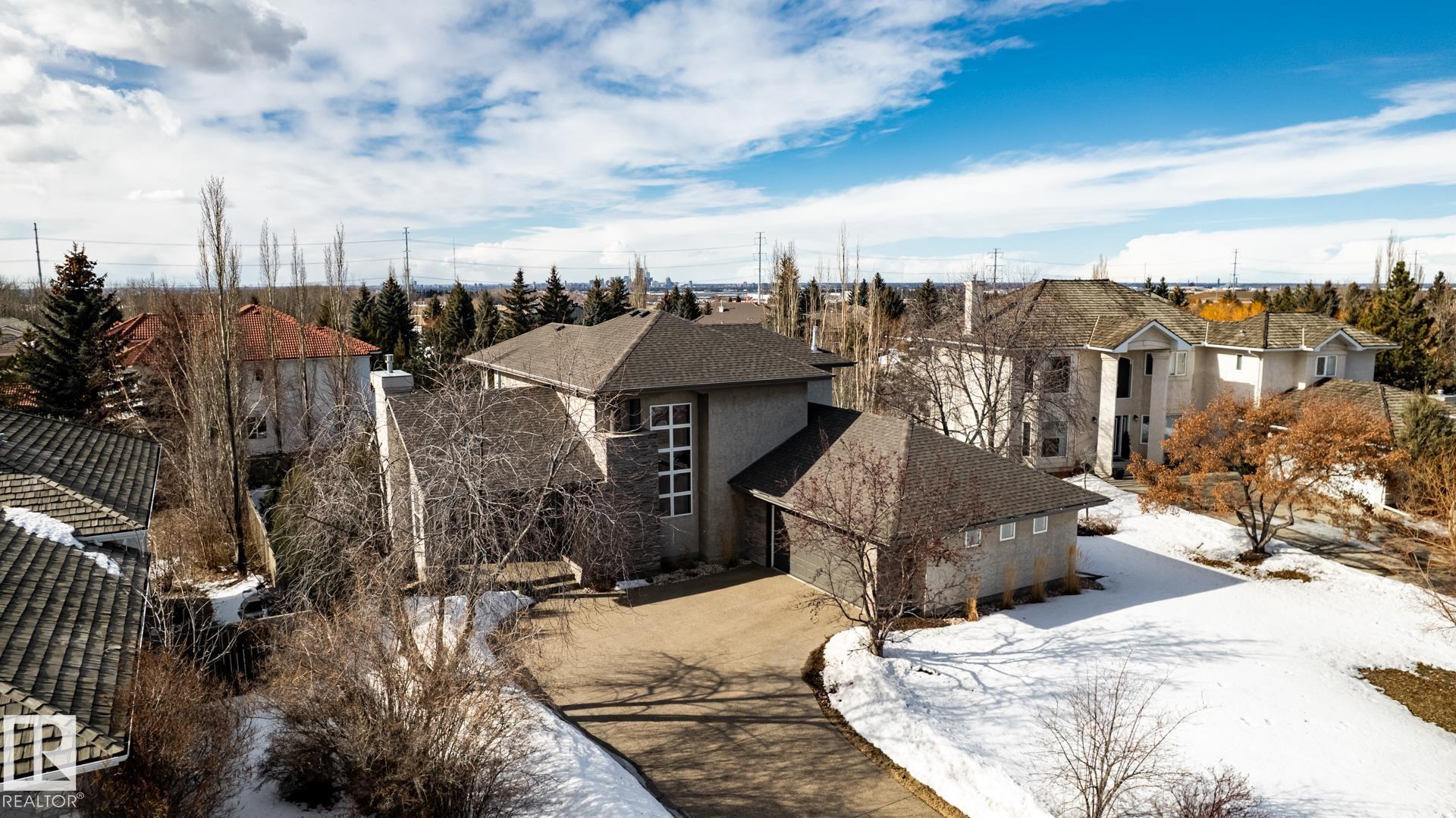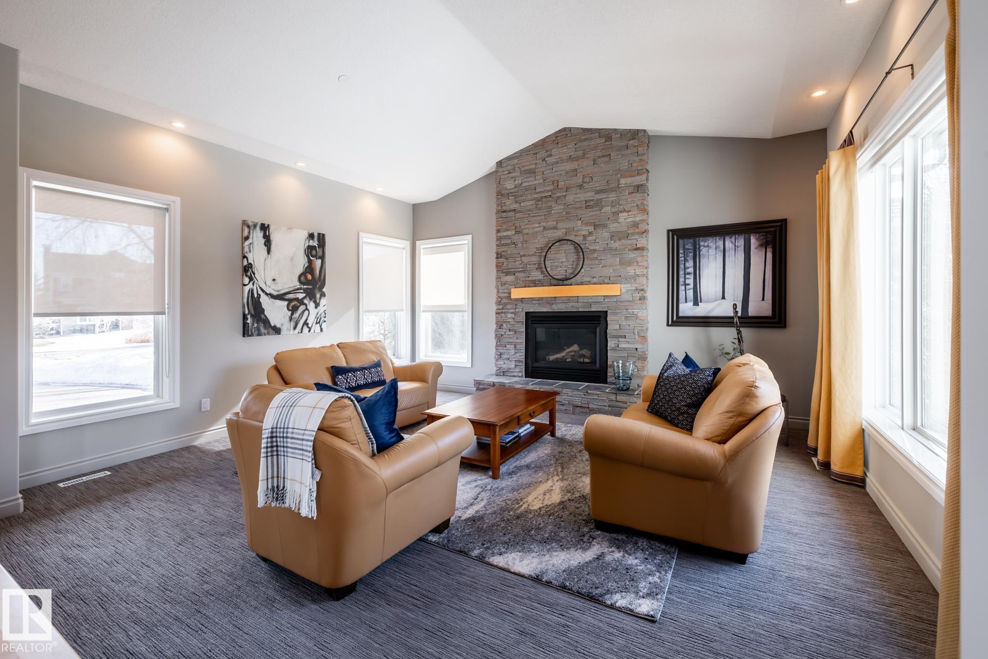 EXECUTIVE HOME WITH PRIVATE LOT....!WELCOME HOME. METICULOUS ATTENTION TO DETAIL. CUL DE SAC LOCATION. Upon entering this property you walk into a spacious foyer, living room with vaulted ceilings and feature stone fireplace and formal dining room. Spacious nook area, walk in pantry and large kitchen with granite and new SS appliances. Kitchen walks onto a large deck overlooking yard. Main floor laundry room with sink and loads of closets. Upstairs is a private office and the Primary retreat is expansive with walk in closet, and well appointed 5 pce.ensuite. Basement is a WALKOUT with in-floor heating, 2nd and 3rd bedrooms, rec room with doors to lower covered patio and 4 pce. bathroom.YARD is beautifully landscaped with private sitting area and firepit. Oversized dble garage with man door, drain and cold water tap. Upgrades: roof (2024),HE furnace (2025) sump pump (2023) and more.