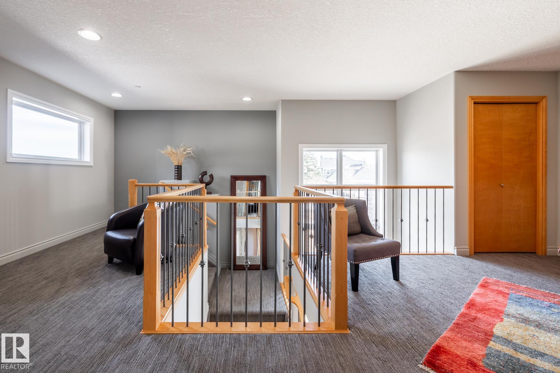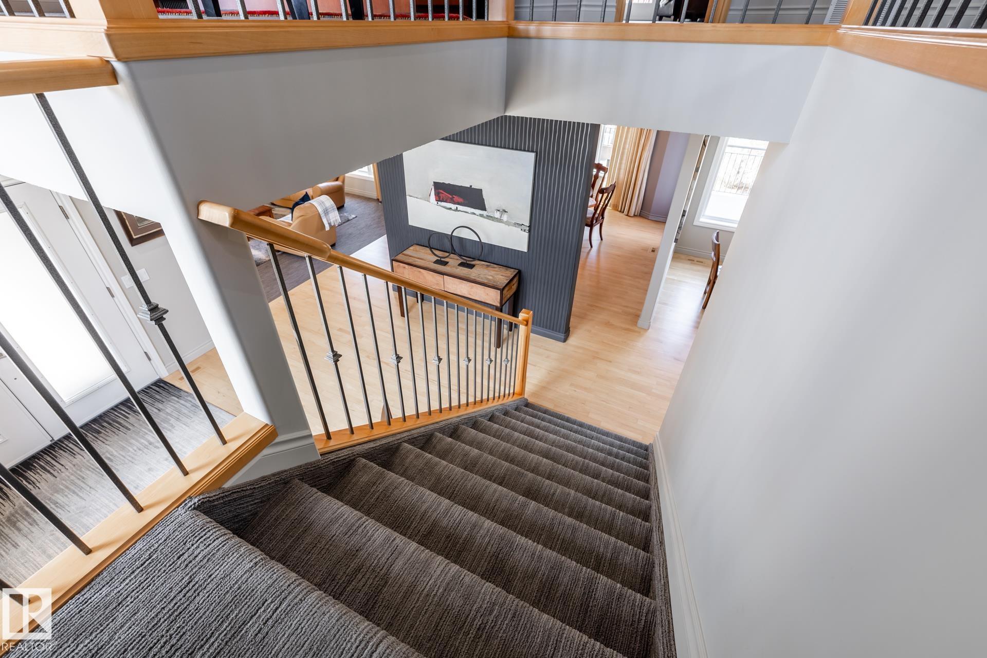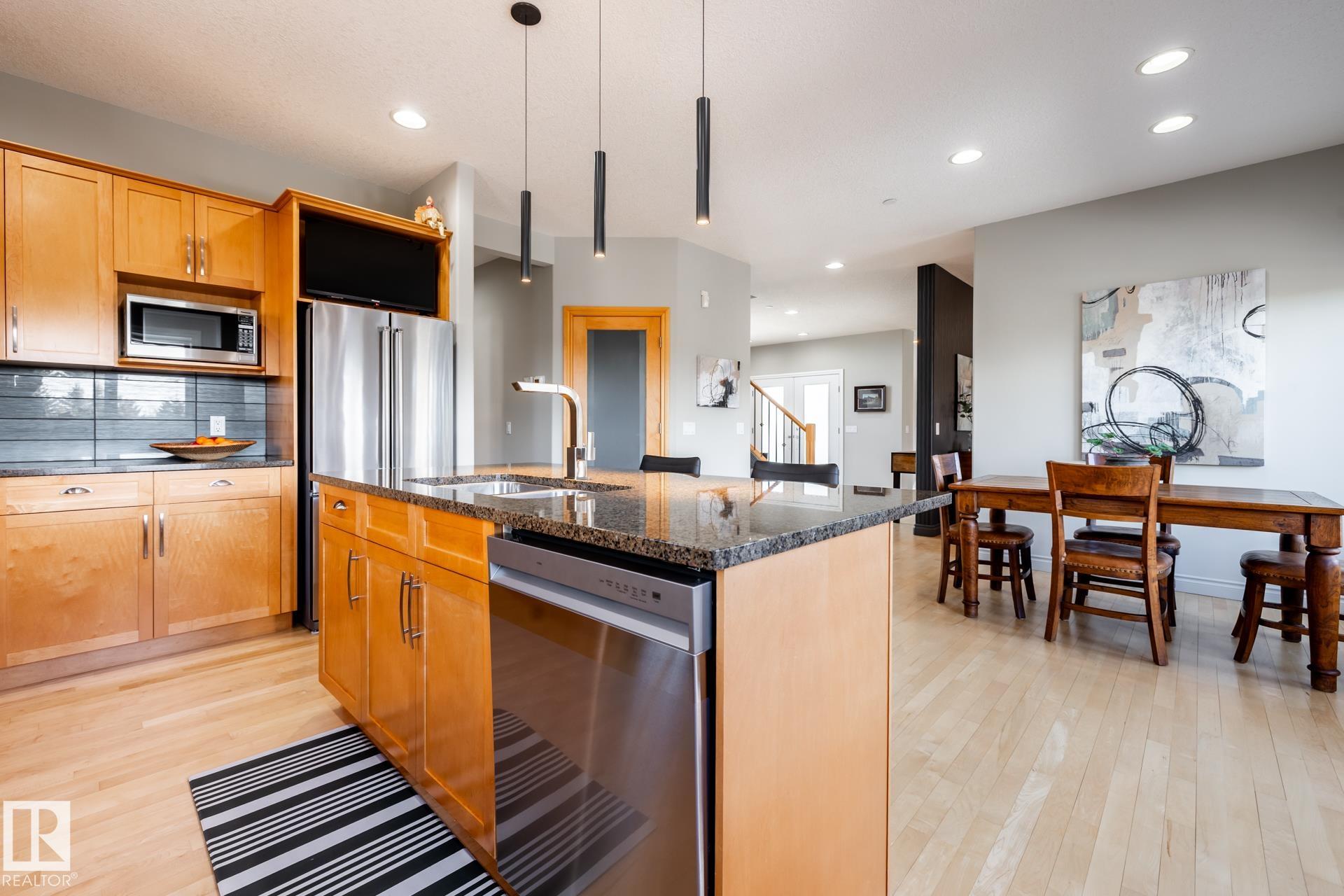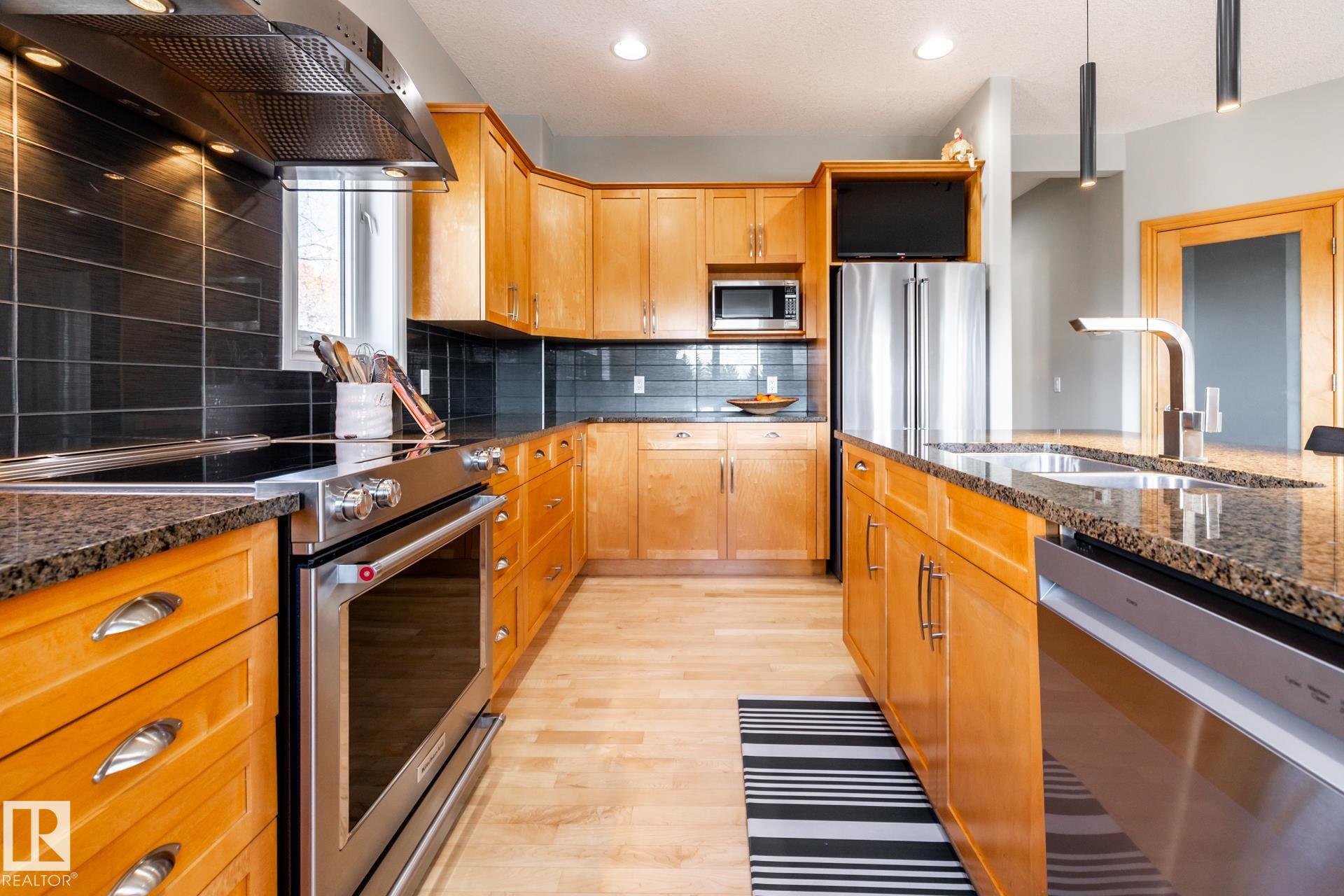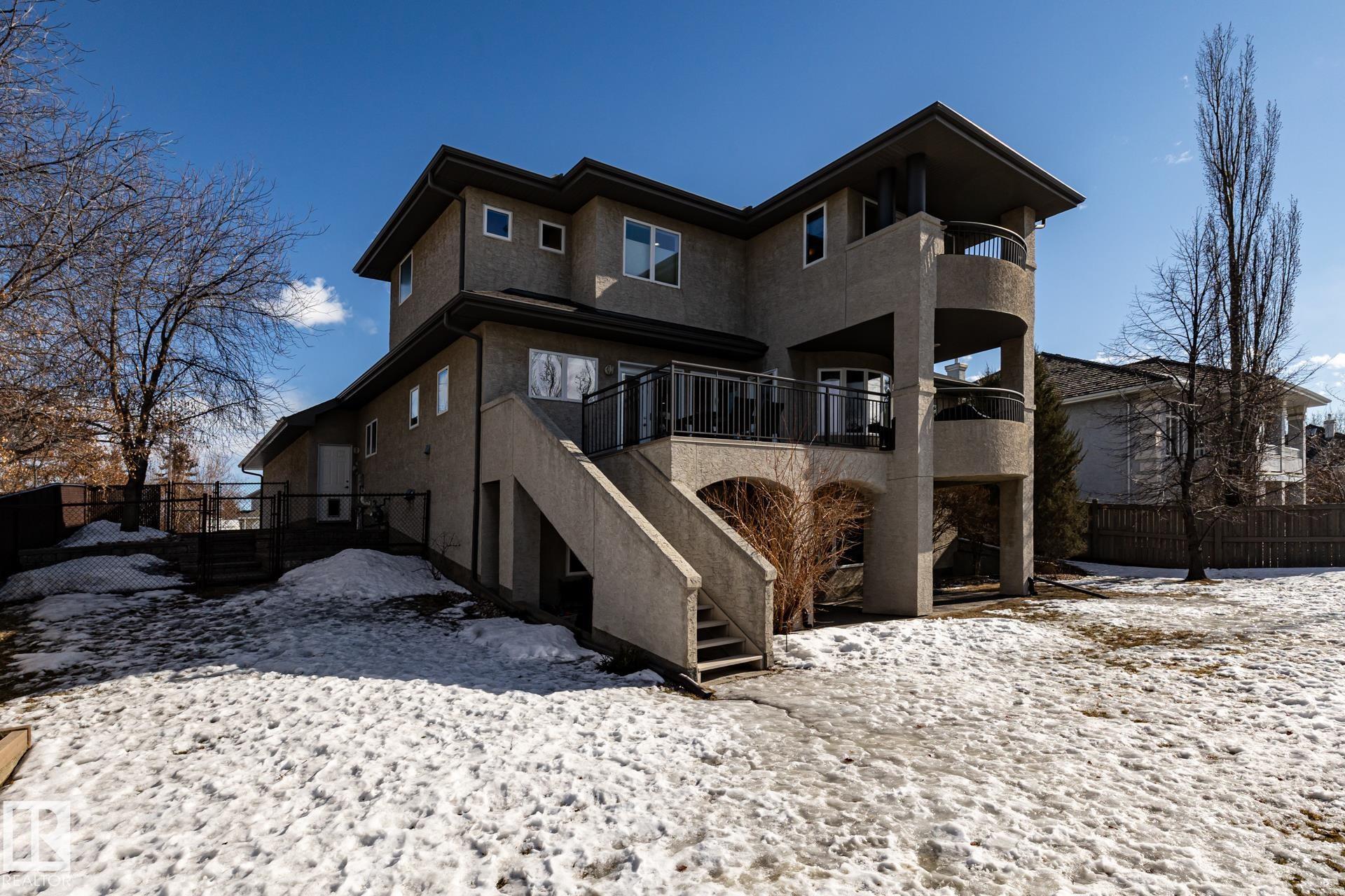 EXECUTIVE HOME WITH PRIVATE LOT....!WELCOME HOME. METICULOUS ATTENTION TO DETAIL. CUL DE SAC LOCATION. Upon entering this property you walk into a spacious foyer, living room with vaulted ceilings and feature stone fireplace and formal dining room. Spacious nook area, walk in pantry and large kitchen with granite and new SS appliances. Kitchen walks onto a large deck overlooking yard. Main floor laundry room with sink and loads of closets. Upstairs is a private office and the Primary retreat is expansive with walk in closet, and well appointed 5 pce.ensuite. Basement is a WALKOUT with in-floor heating, 2nd and 3rd bedrooms, rec room with doors to lower covered patio and 4 pce. bathroom.YARD is beautifully landscaped with private sitting area and firepit. Oversized dble garage with man door, drain and cold water tap. Upgrades: roof (2024),HE furnace (2025) sump pump (2023) and more.
