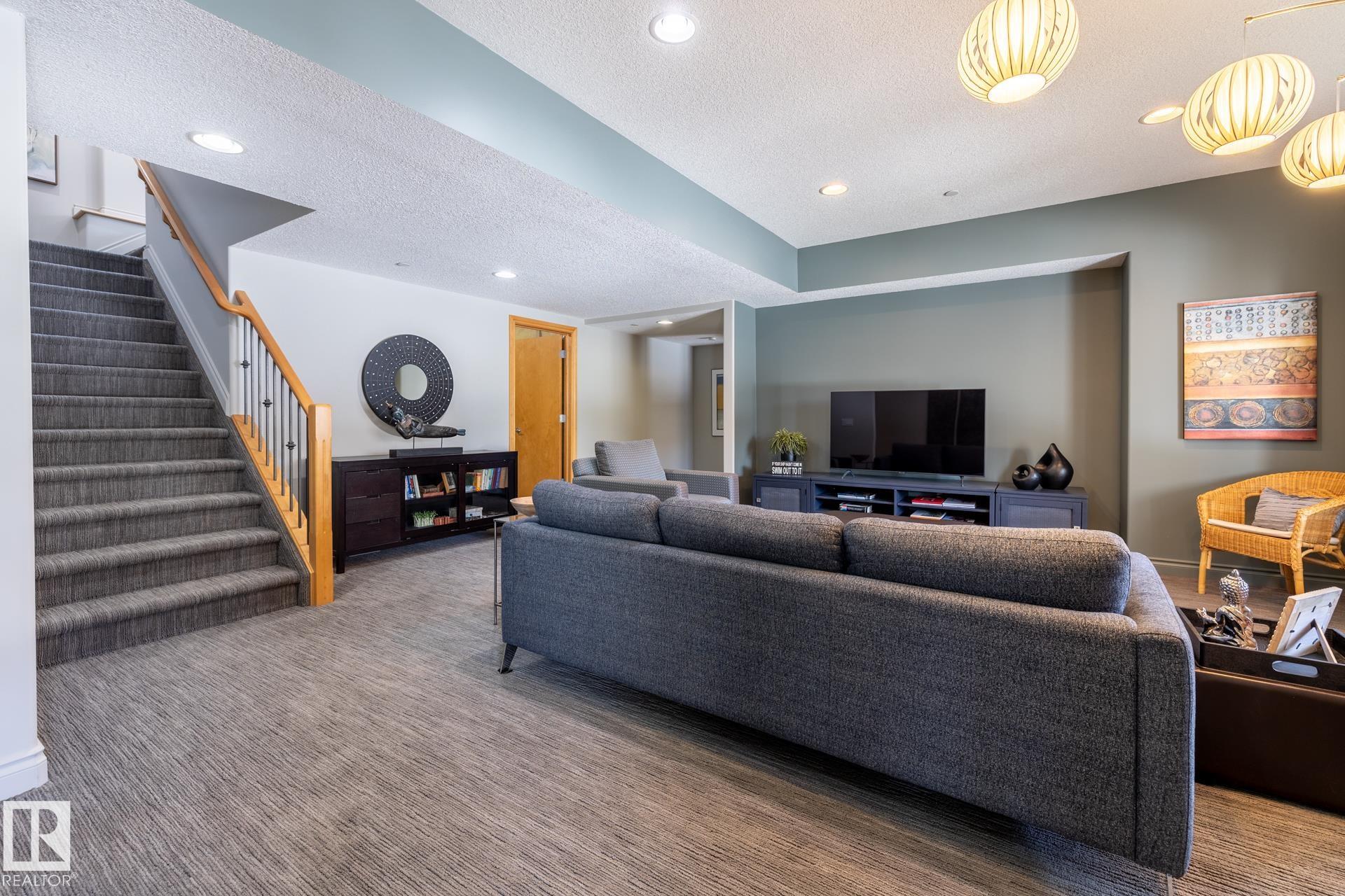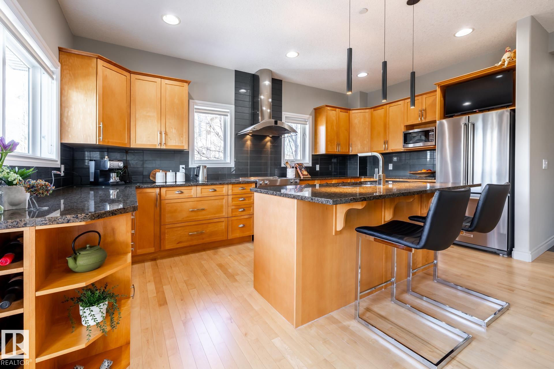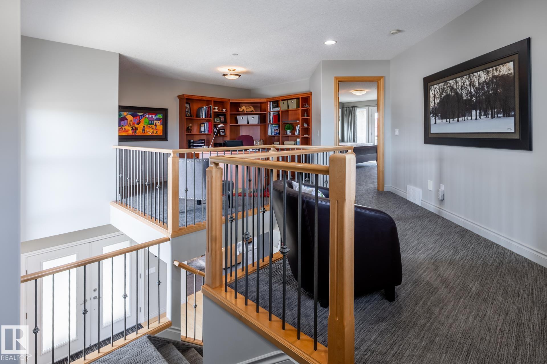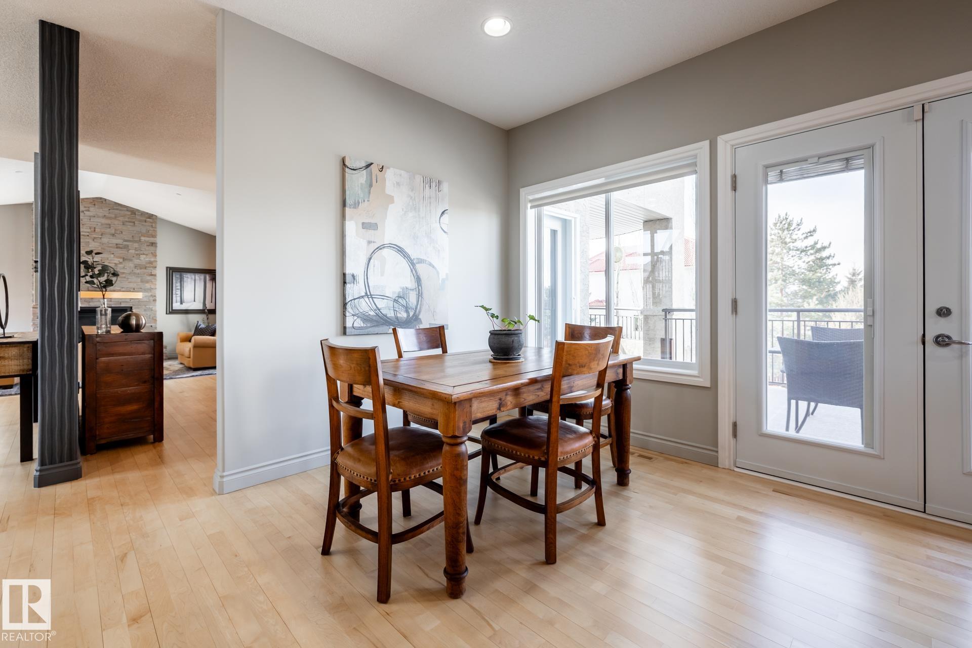 EXECUTIVE HOME WITH PRIVATE LOT....!WELCOME HOME. METICULOUS ATTENTION TO DETAIL. CUL DE SAC LOCATION. Upon entering this property you walk into a spacious foyer, living room with vaulted ceilings and feature stone fireplace and formal dining room. Spacious nook area, walk in pantry and large kitchen with granite and new SS appliances. Kitchen walks onto a large deck overlooking yard. Main floor laundry room with sink and loads of closets. Upstairs is a private office and the Primary retreat is expansive with walk in closet, and well appointed 5 pce.ensuite. Basement is a WALKOUT with in-floor heating, 2nd and 3rd bedrooms, rec room with doors to lower covered patio and 4 pce. bathroom.YARD is beautifully landscaped with private sitting area and firepit. Oversized dble garage with man door, drain and cold water tap. Upgrades: roof (2024),HE furnace (2025) sump pump (2023) and more.