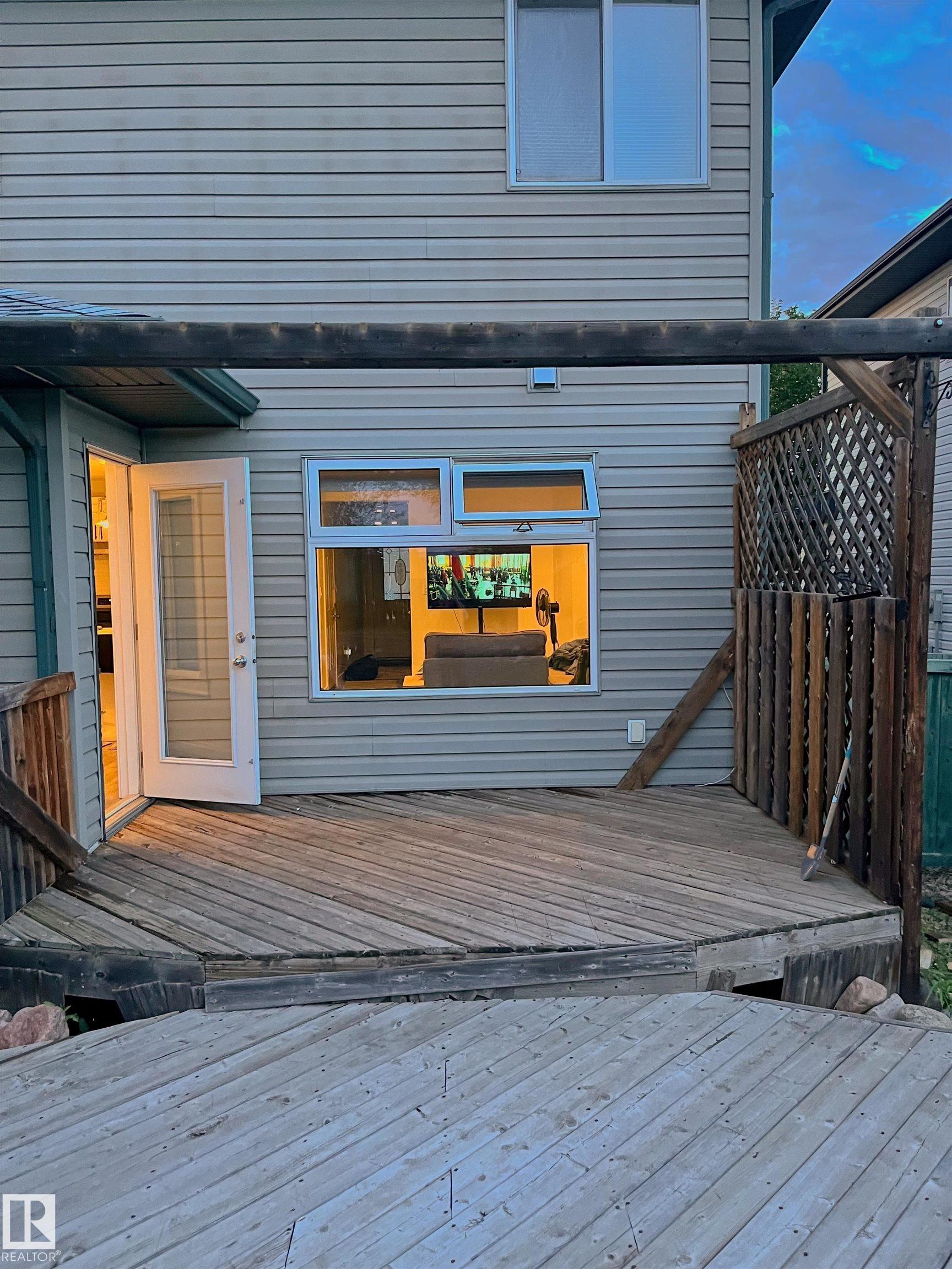 Welcome to Westwood Trails in Fort Saskatchewan! This well-maintained 1424 sq. ft. 3-bedroom duplex with a single attached garage offers comfortable family living with several great upgrades. The main floor features updated flooring and a renovated kitchen with quartz countertops, an island, and plenty of cupboard space. The bright eating area includes garden door access to the deck and private backyard, perfect for relaxing or summer BBQs. A 2PC bath, along with access to the garage and basement, completes the main level. Upstairs, you?ll find three spacious bedrooms, a 4-piece main bathroom, and a convenient laundry room. The primary bedroom includes a 4PC ensuite and ample closet space. The basement provides a great space for kids to play or for future redevelopment.Recent upgrades include shingles, furnace, hot water tank, triple-pane windows on the main level (backside of the home), and air conditioning, offering comfort and peace of mind in a fantastic neighbourhood.