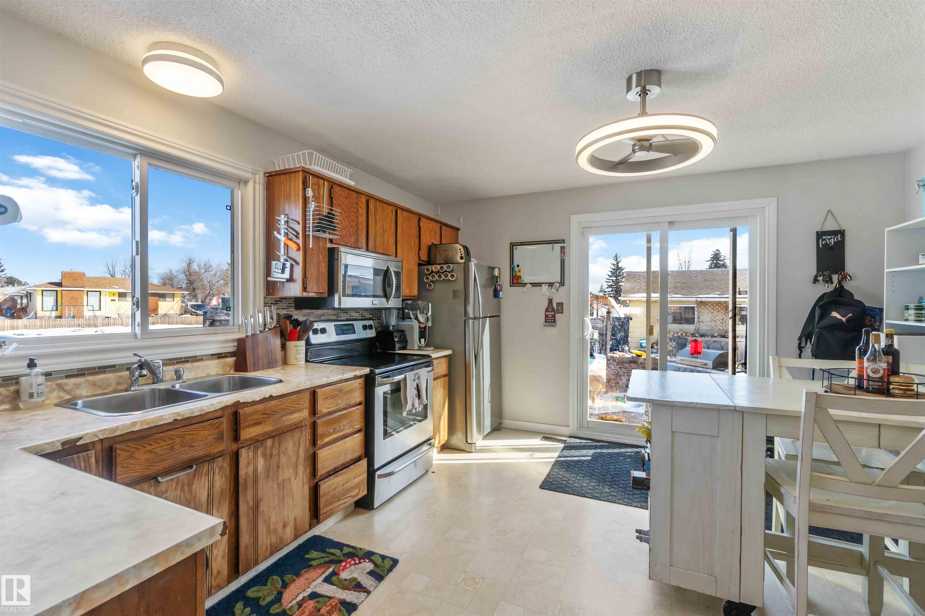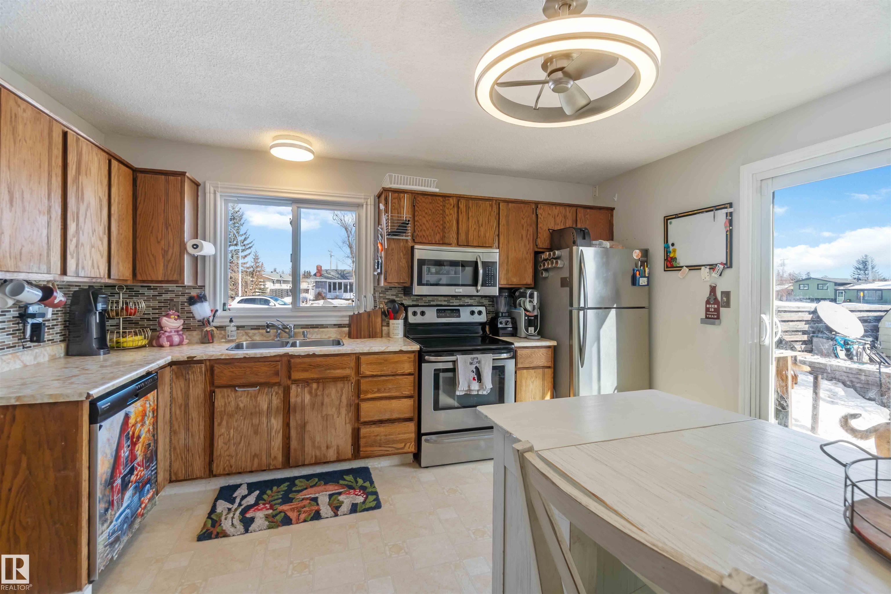 This affordable home is a standout opportunity, featuring a unique corner location with an oversized double detached (220V) garage with RV parking. Significant upgrades provide, including a new furnace (2025), roof (2021), and windows (2019). The interior feels bright and spacious thanks to open-beam vaulted ceilings in the living room, which is anchored by a cozy brick wood-burning fireplace. The functional layout includes a kitchen with a decent size eating area, four total bedrooms across two levels, and two full bathrooms. For extra versatility, the finished fourth level serves as a family or games room, offering massive crawlspace storage to keep everything organized. This property offers a fully landscaped backyard and quick access and walking distance to several parks in town and schools. With its great price and convenient location, it is an ideal choice for anyone seeking a short commute to the nearby military base. Some picture are virtually stages