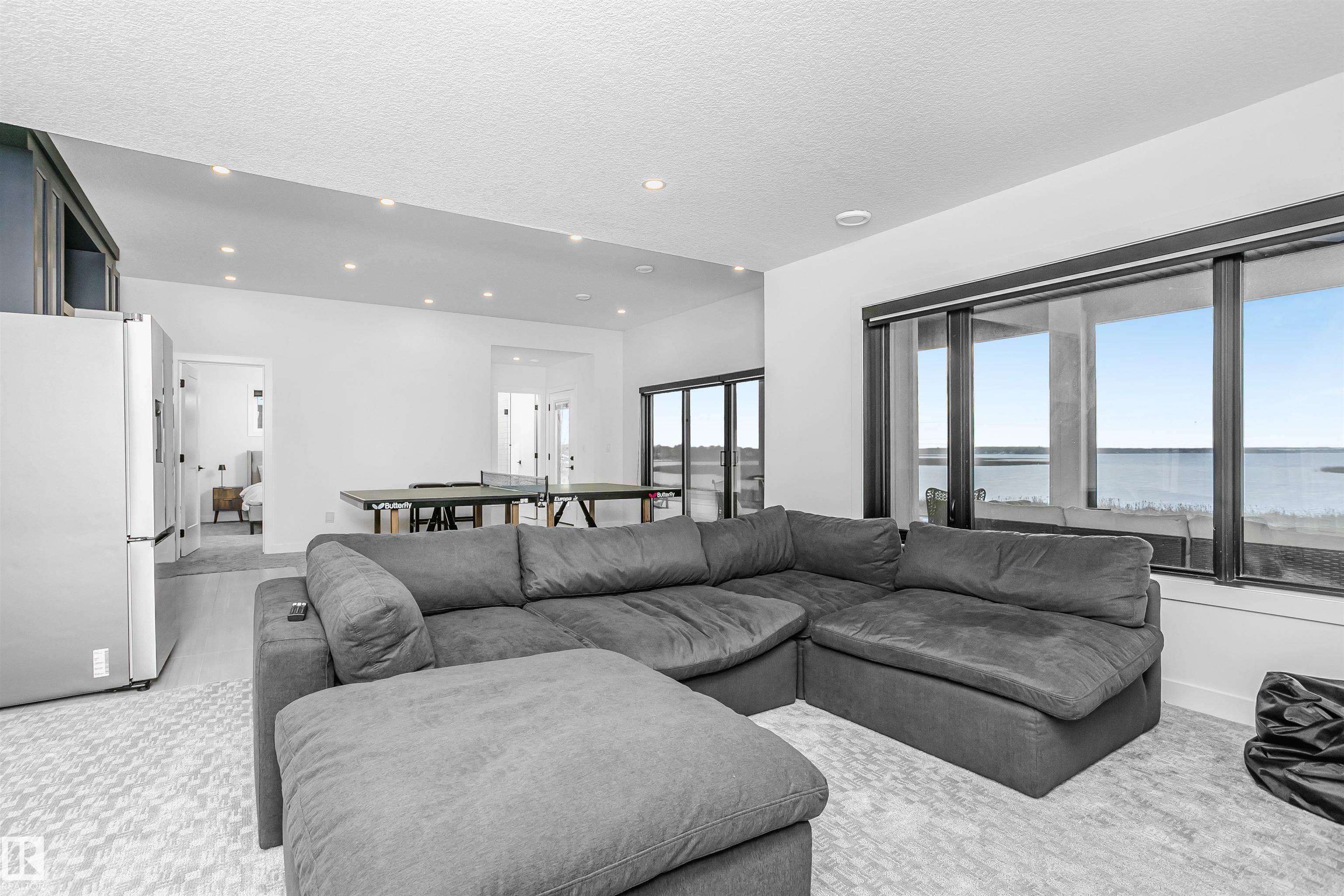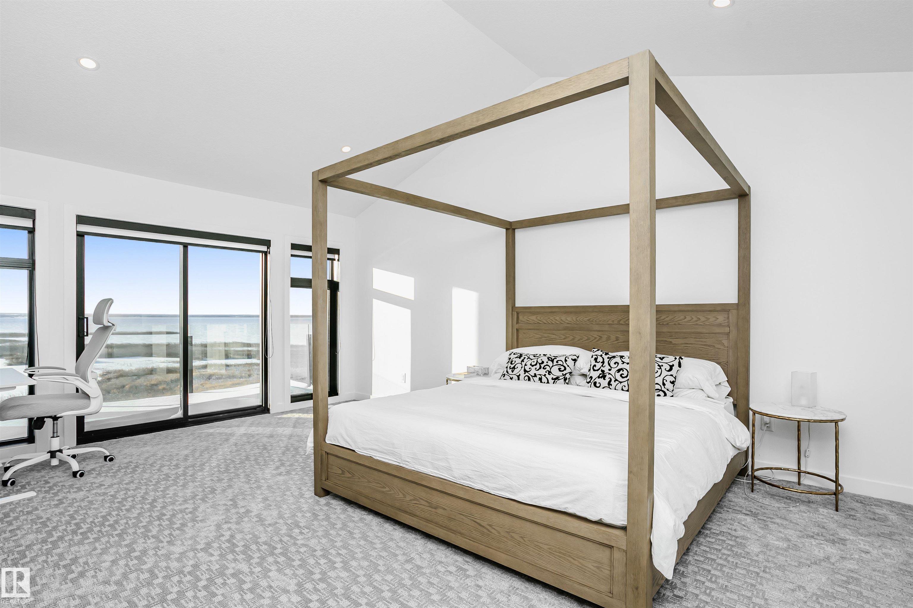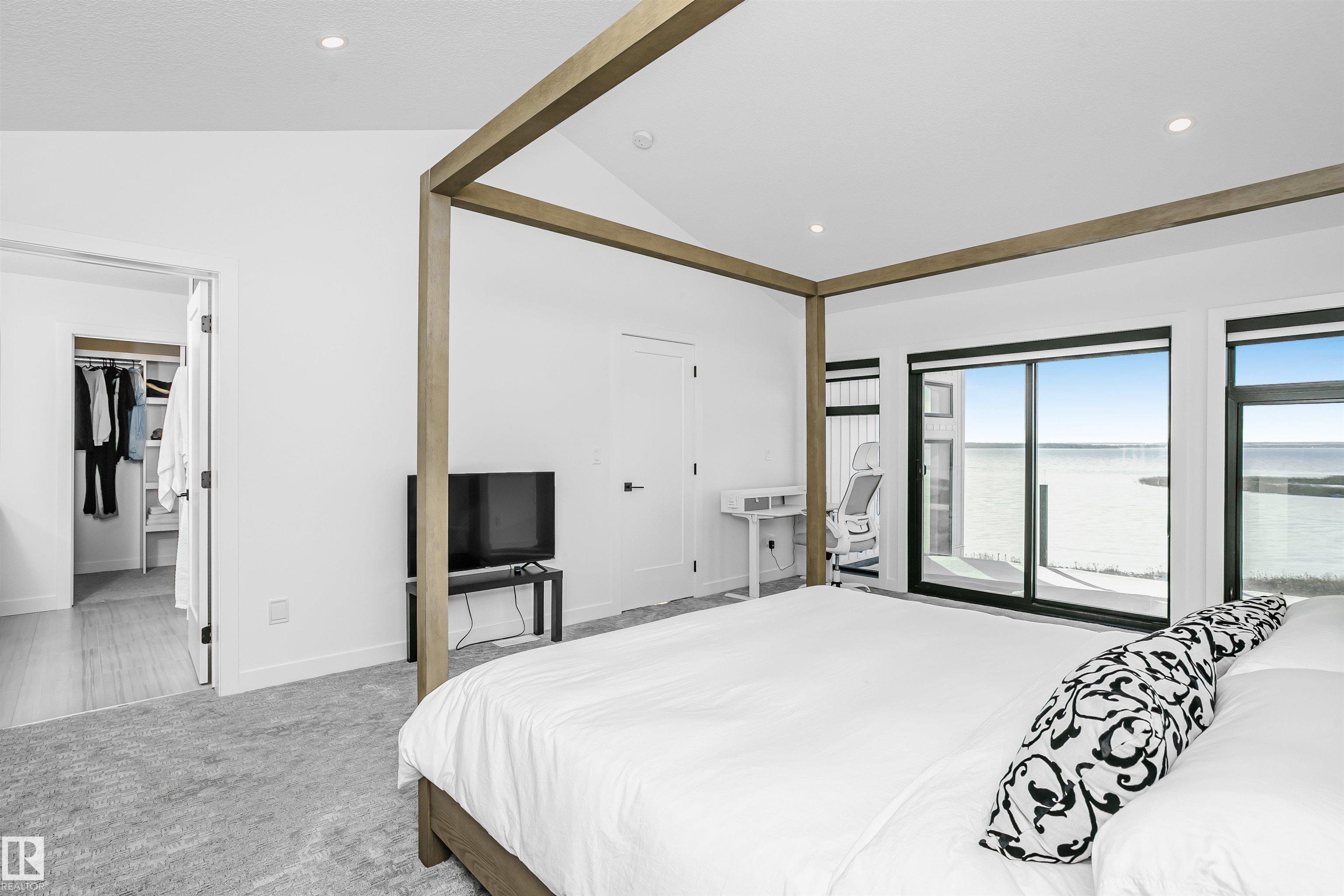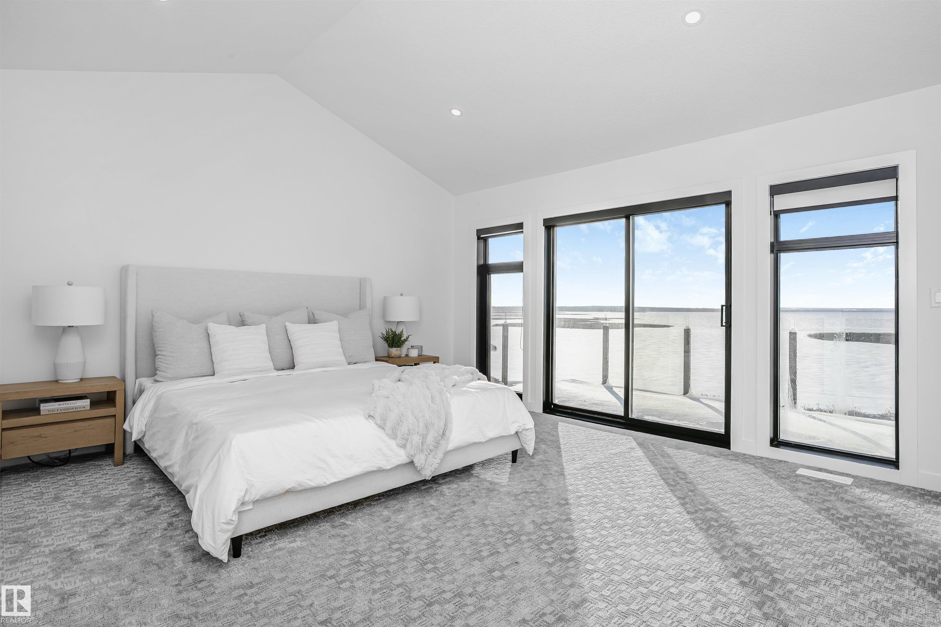 Amazing custom built WATERFRONT WALKOUT 2 story now available. Soaring vaulted clearstory story ceilings on the main floor great room featuring an island kitchen, large lakeside dining, floor to ceiling f/p feature, glass wall to den and large patio sliders out to the south facing main deck. The main floor is also host to a large front entry, garage mudroom (both with hockey benches), a 2 piece bath, laundry and walkthrough pantry. Rise up the open web stair case with custom rail to the upper floor which is home to 2 PRIMARY bedrooms with ensuites, walk-in closets and each its own private lakeside deck. They are on opposite ends of the home connected by a bridge. Downstairs you will find a huge family/rec room with wet bar, 2 more bedrooms (one with built-in bunks), 2 bathrooms and doors out to the screened-in patio. You will also enjoy the triple attached garage, gas bbq hook-up, central a/c, community pool along with fitness centre, clubhouse, beachfront park, marina and R/V storage option.