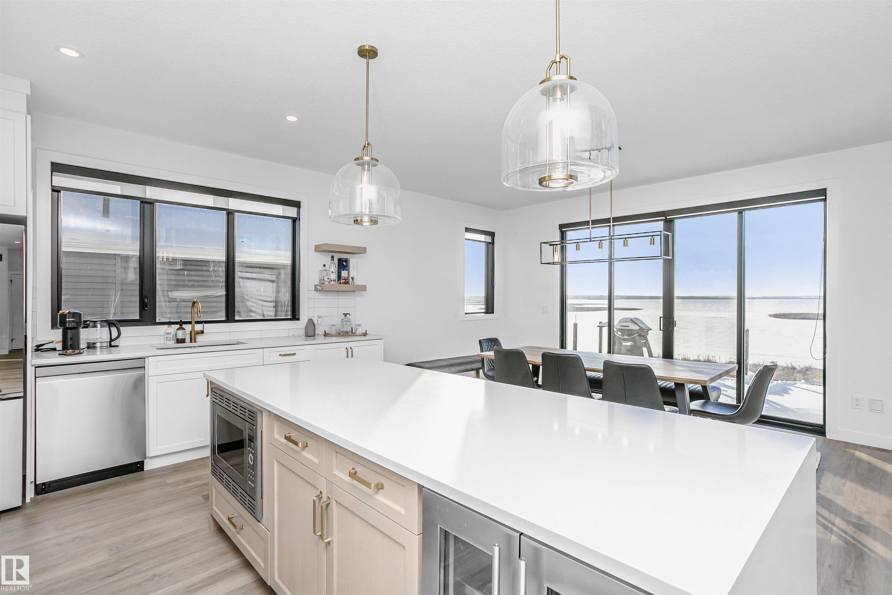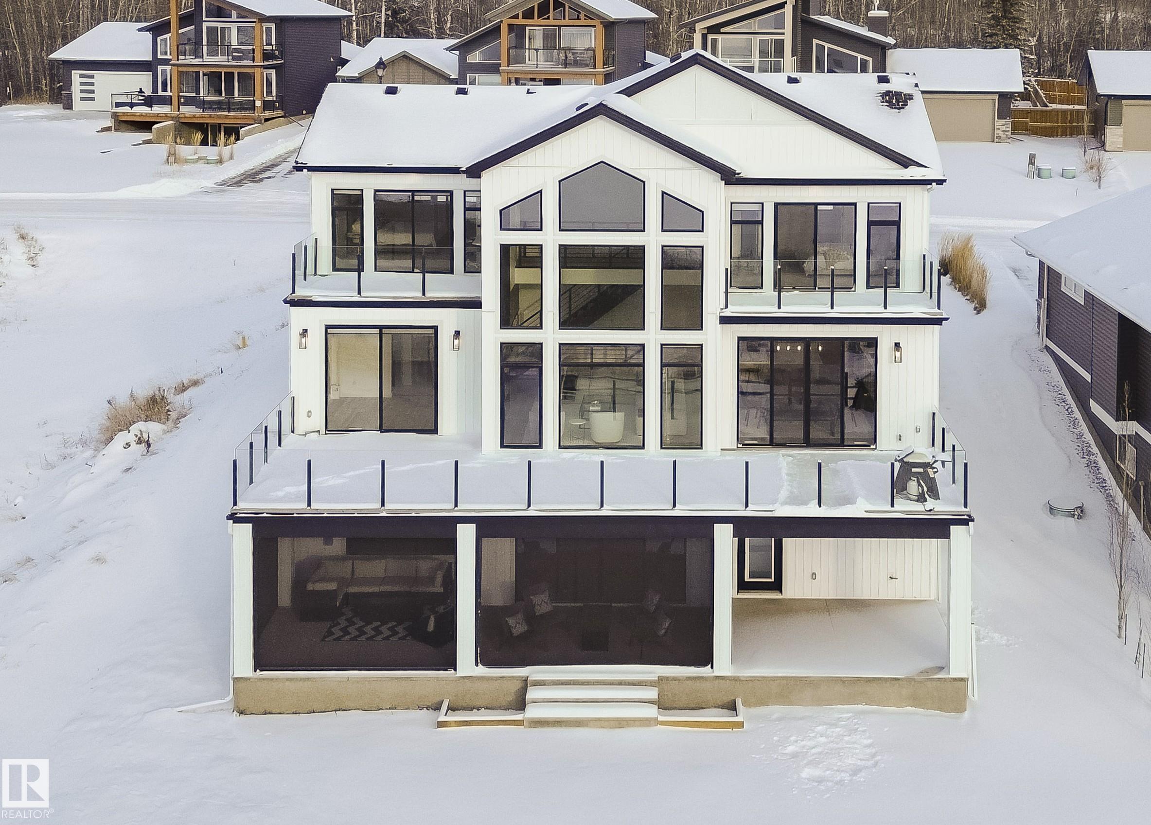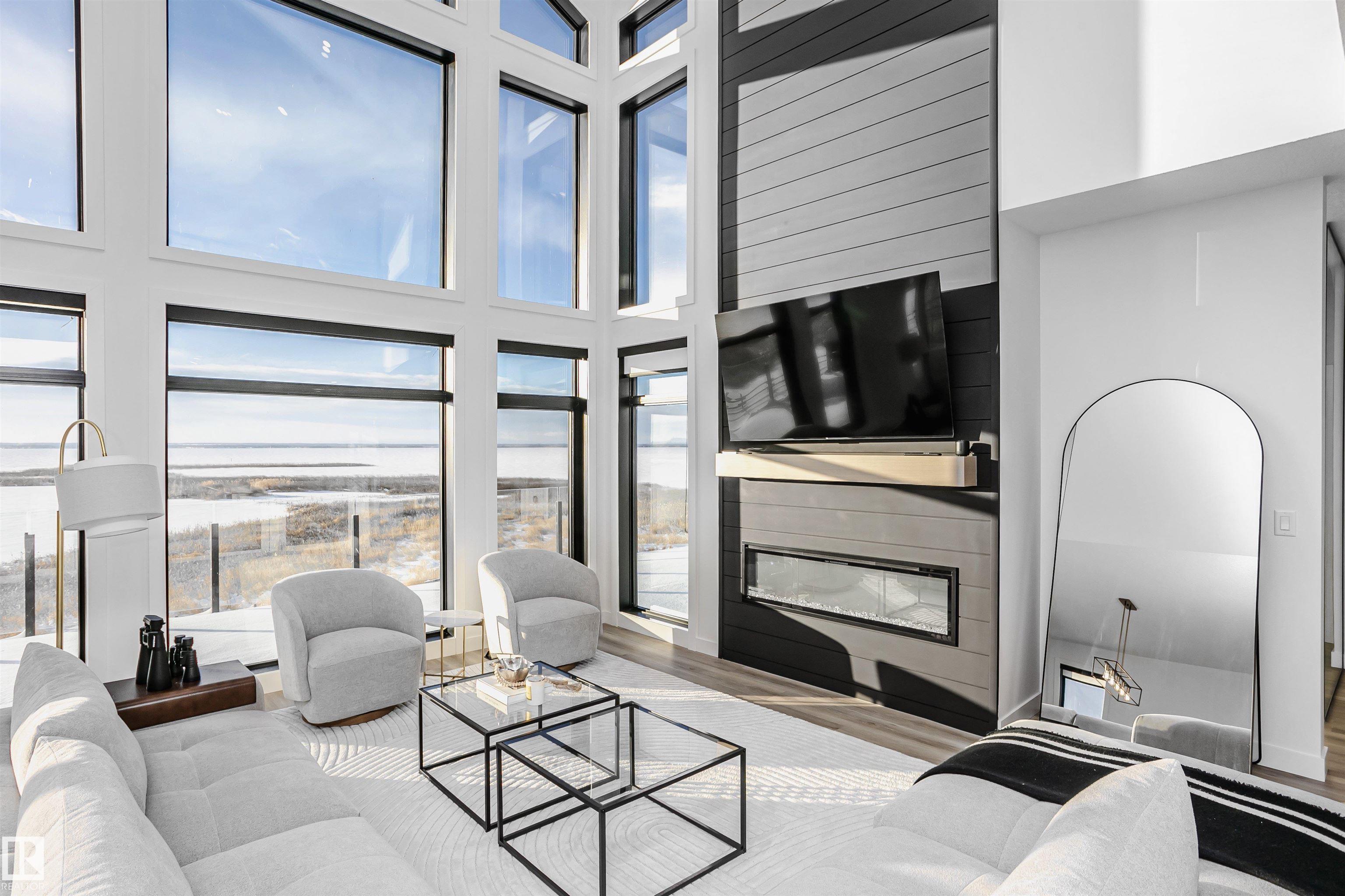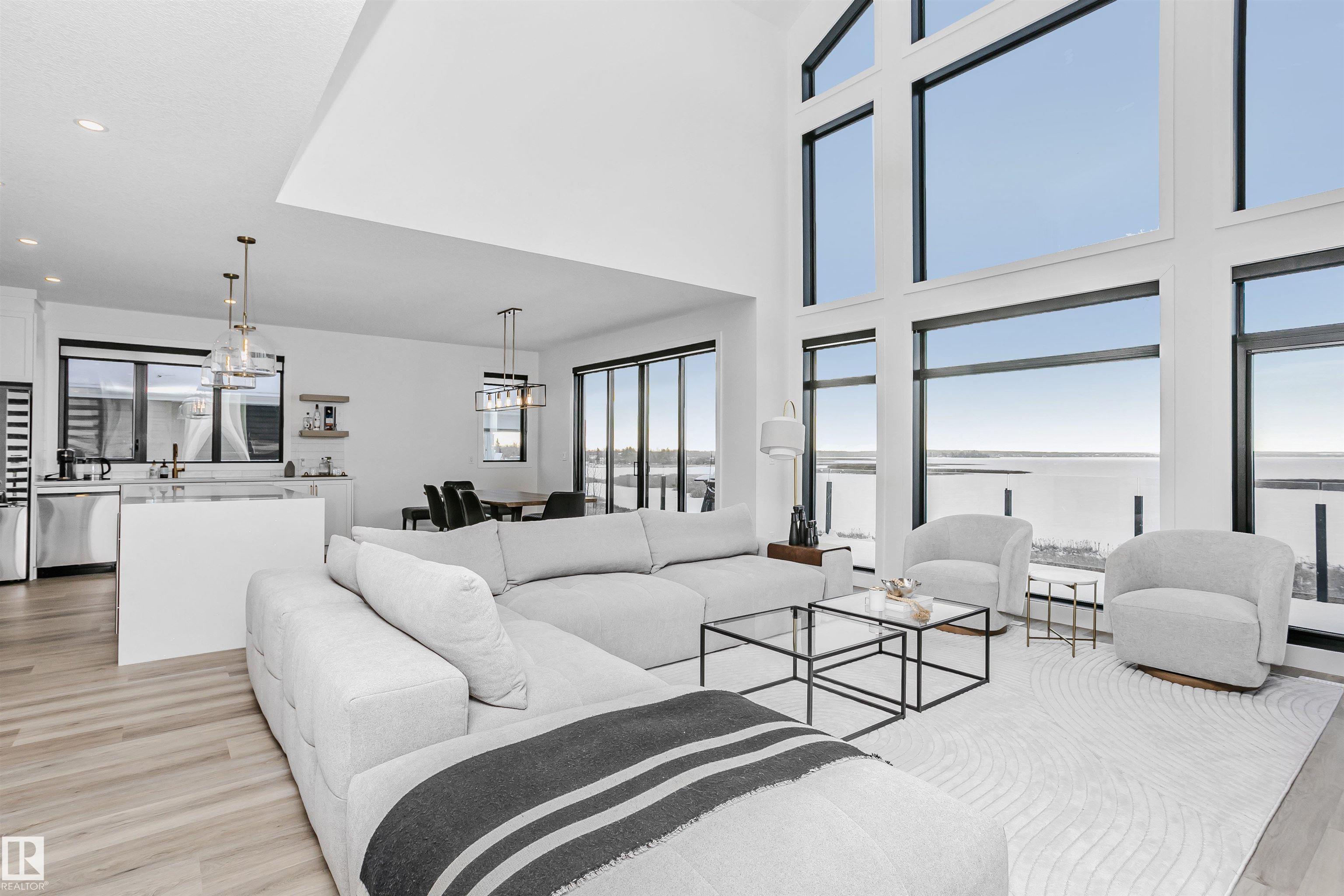 Amazing custom built WATERFRONT WALKOUT 2 story now available. Soaring vaulted clearstory story ceilings on the main floor great room featuring an island kitchen, large lakeside dining, floor to ceiling f/p feature, glass wall to den and large patio sliders out to the south facing main deck. The main floor is also host to a large front entry, garage mudroom (both with hockey benches), a 2 piece bath, laundry and walkthrough pantry. Rise up the open web stair case with custom rail to the upper floor which is home to 2 PRIMARY bedrooms with ensuites, walk-in closets and each its own private lakeside deck. They are on opposite ends of the home connected by a bridge. Downstairs you will find a huge family/rec room with wet bar, 2 more bedrooms (one with built-in bunks), 2 bathrooms and doors out to the screened-in patio. You will also enjoy the triple attached garage, gas bbq hook-up, central a/c, community pool along with fitness centre, clubhouse, beachfront park, marina and R/V storage option.