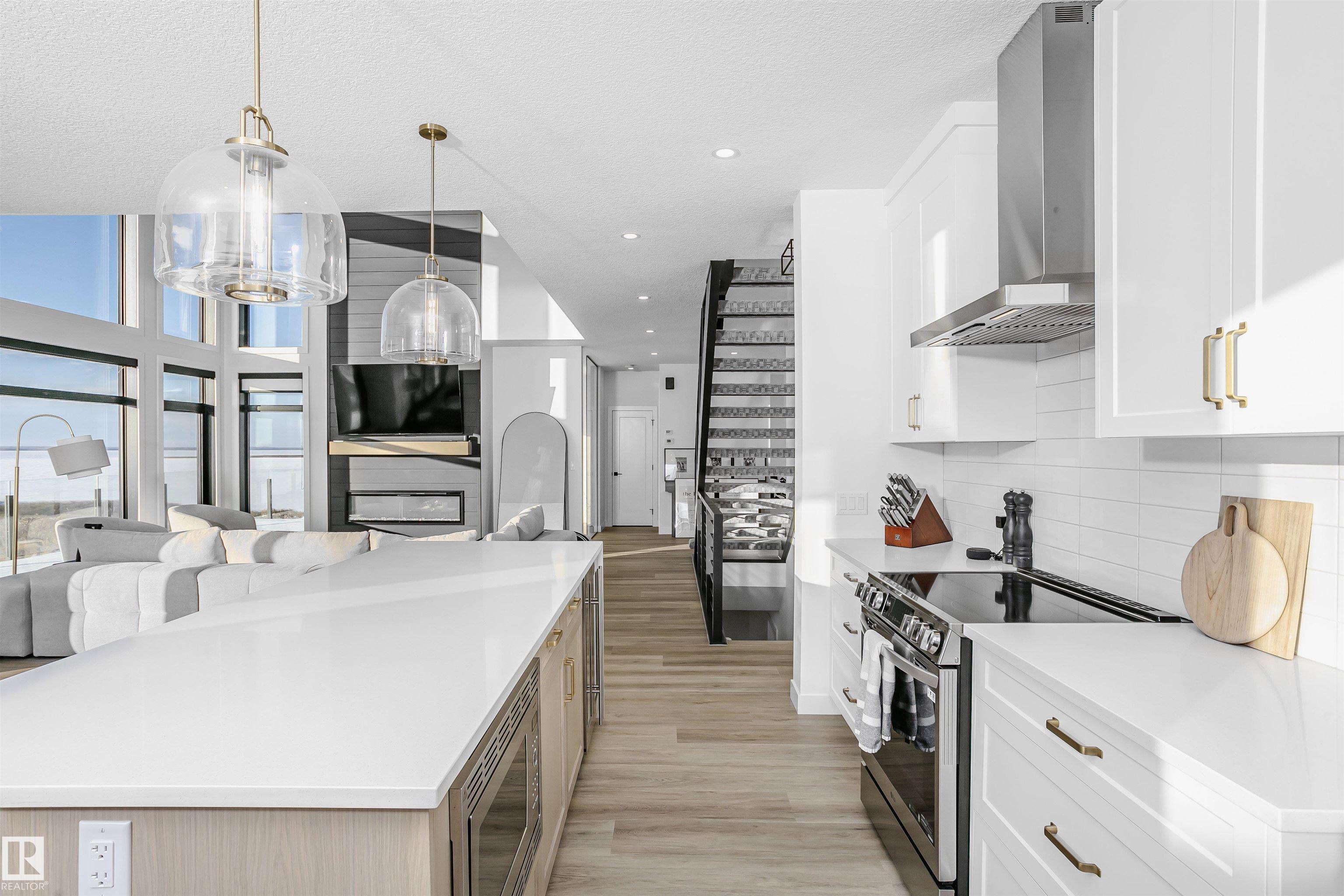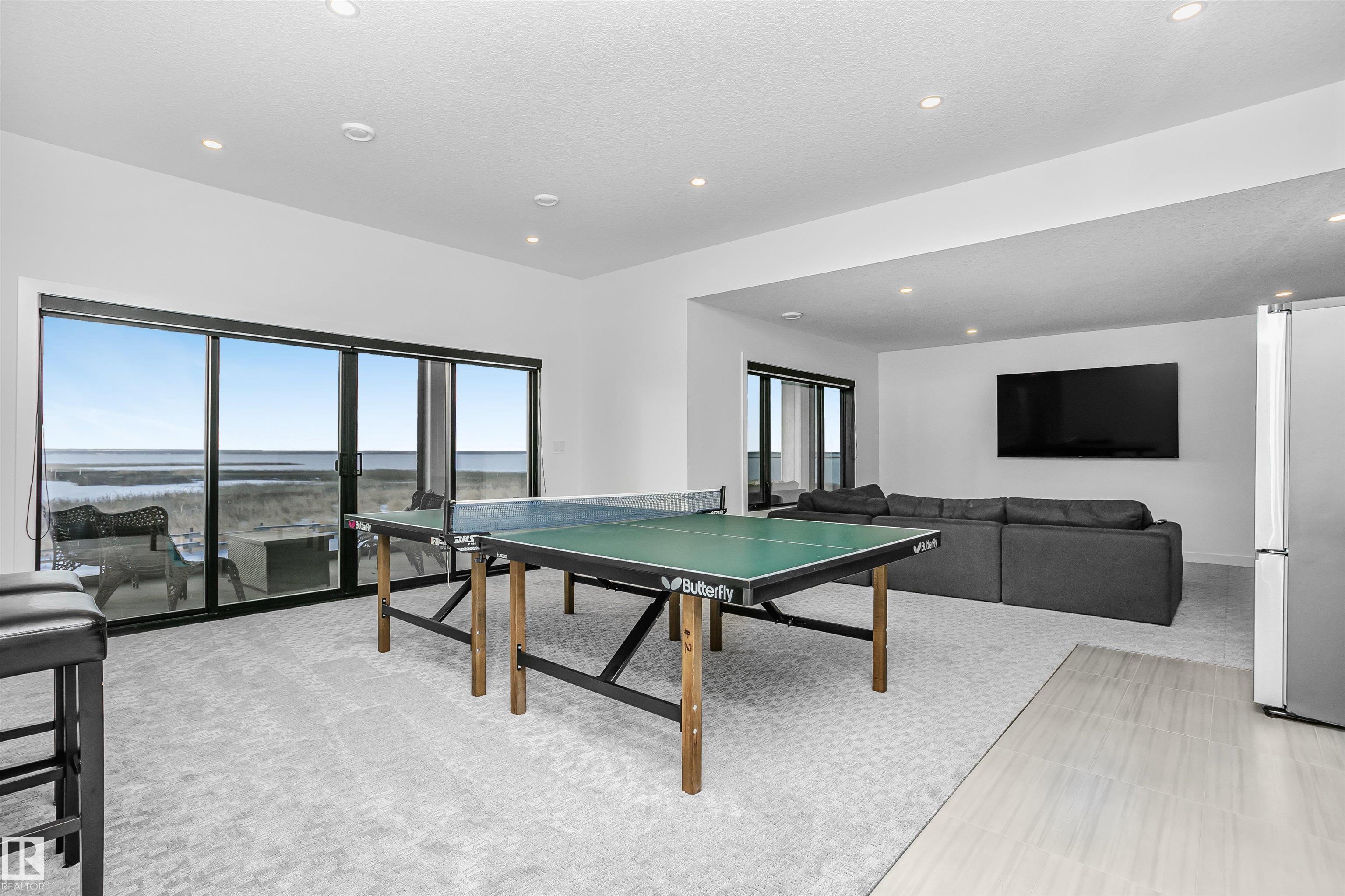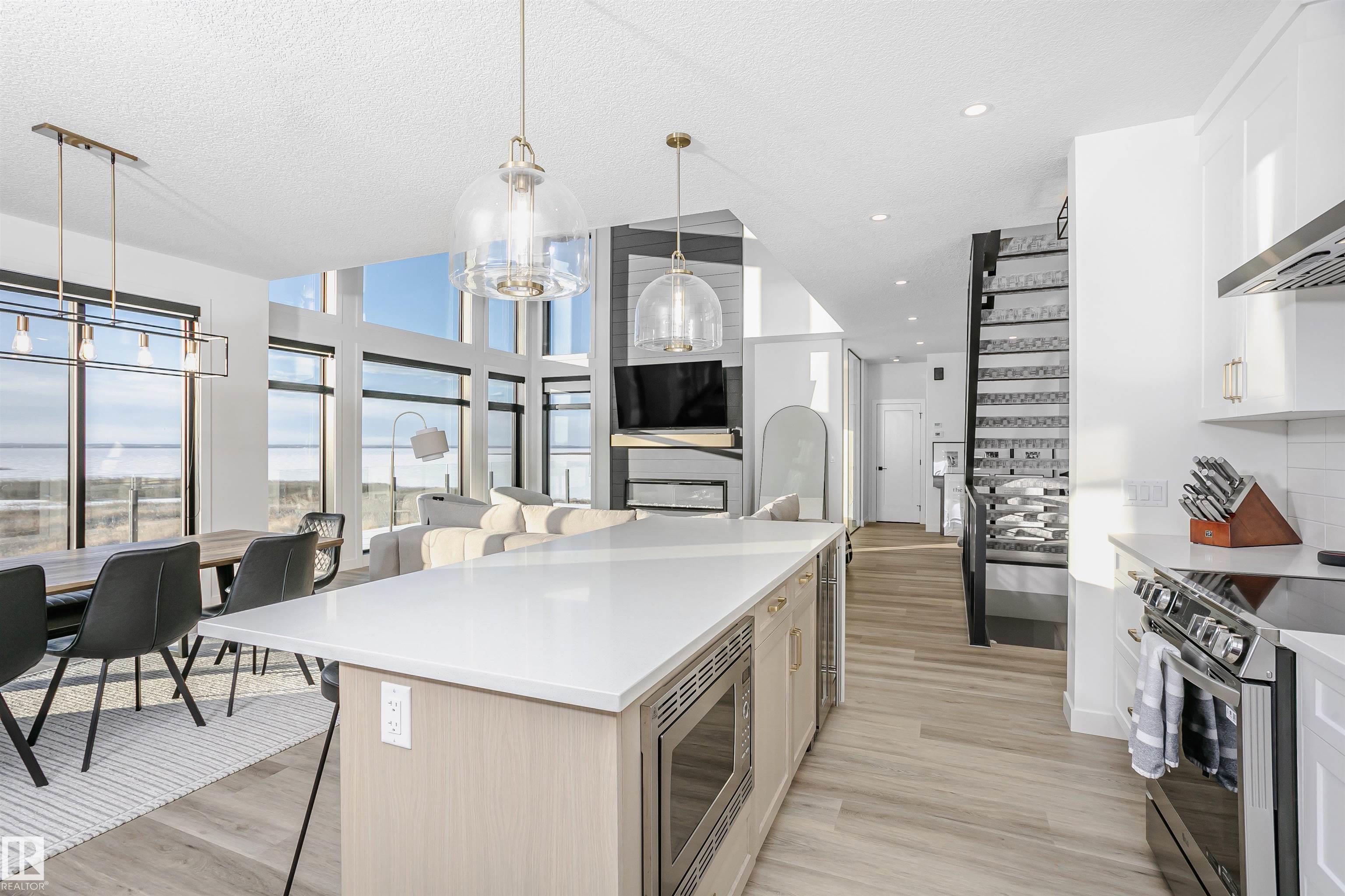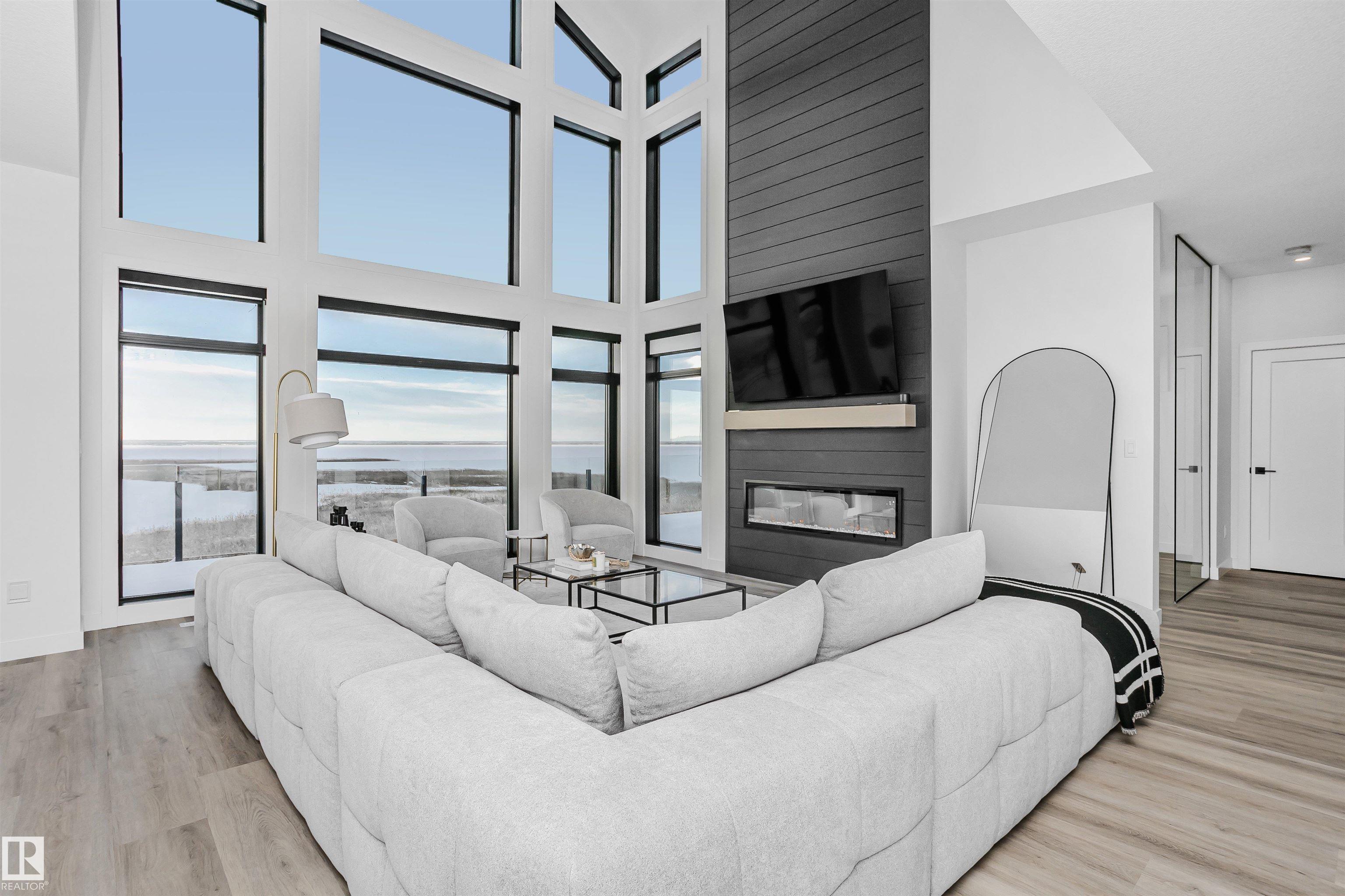 Amazing custom built WATERFRONT WALKOUT 2 story now available. Soaring vaulted clearstory story ceilings on the main floor great room featuring an island kitchen, large lakeside dining, floor to ceiling f/p feature, glass wall to den and large patio sliders out to the south facing main deck. The main floor is also host to a large front entry, garage mudroom (both with hockey benches), a 2 piece bath, laundry and walkthrough pantry. Rise up the open web stair case with custom rail to the upper floor which is home to 2 PRIMARY bedrooms with ensuites, walk-in closets and each its own private lakeside deck. They are on opposite ends of the home connected by a bridge. Downstairs you will find a huge family/rec room with wet bar, 2 more bedrooms (one with built-in bunks), 2 bathrooms and doors out to the screened-in patio. You will also enjoy the triple attached garage, gas bbq hook-up, central a/c, community pool along with fitness centre, clubhouse, beachfront park, marina and R/V storage option.