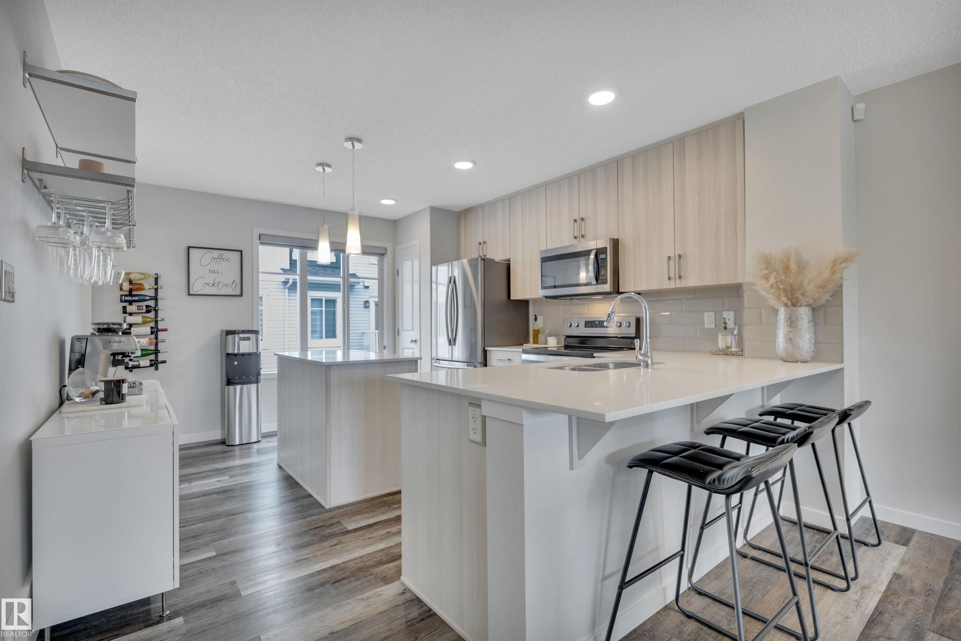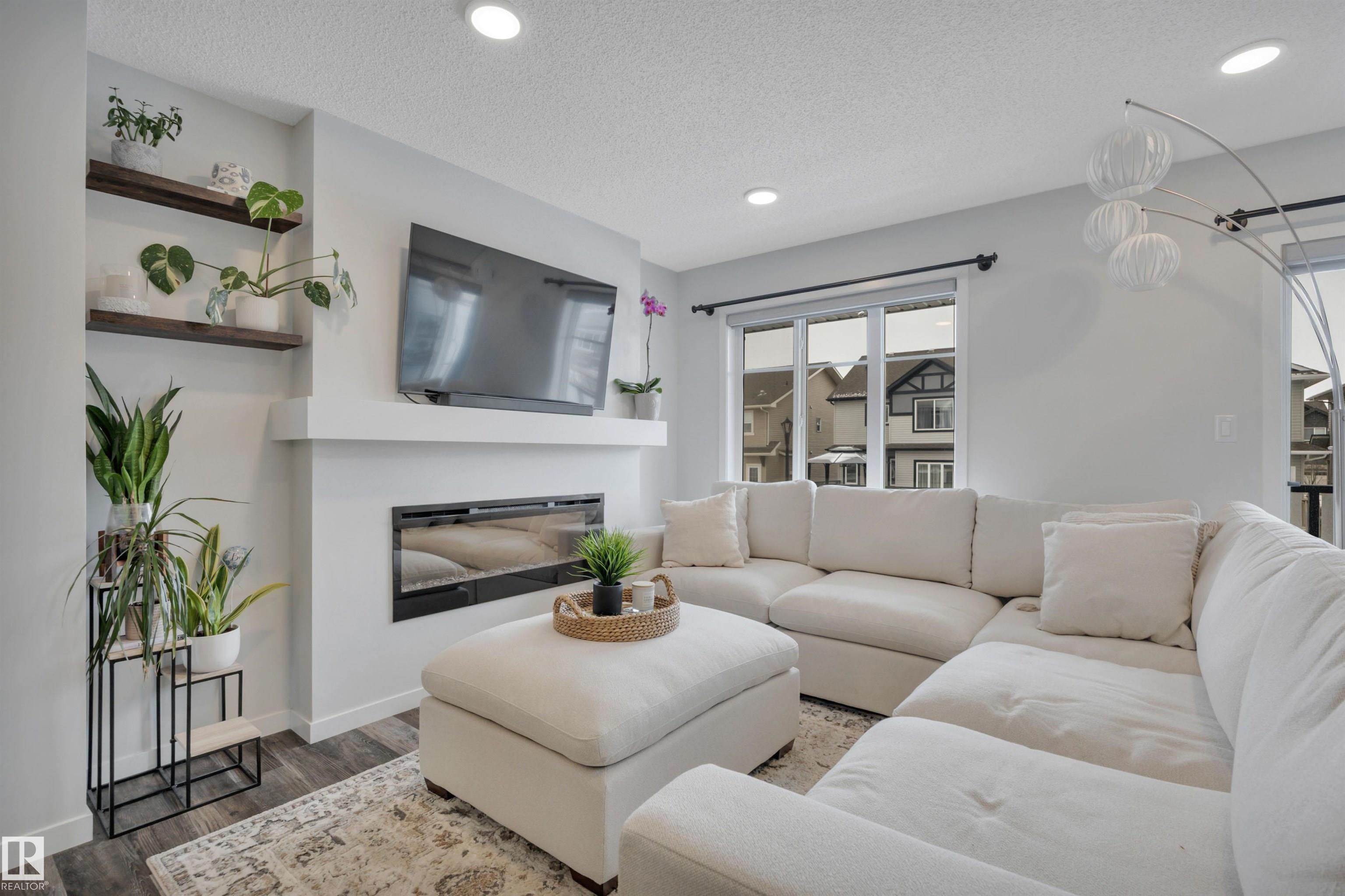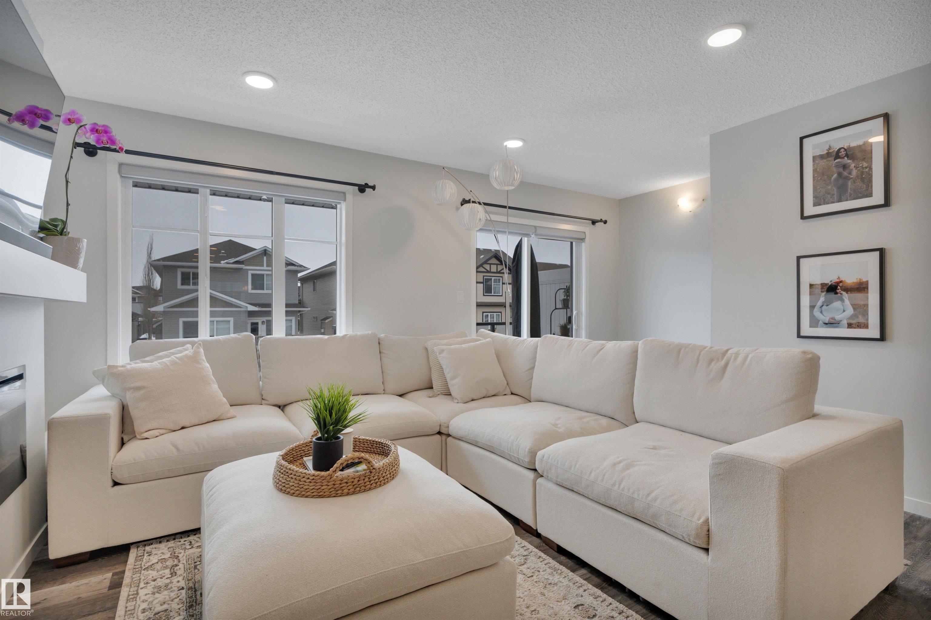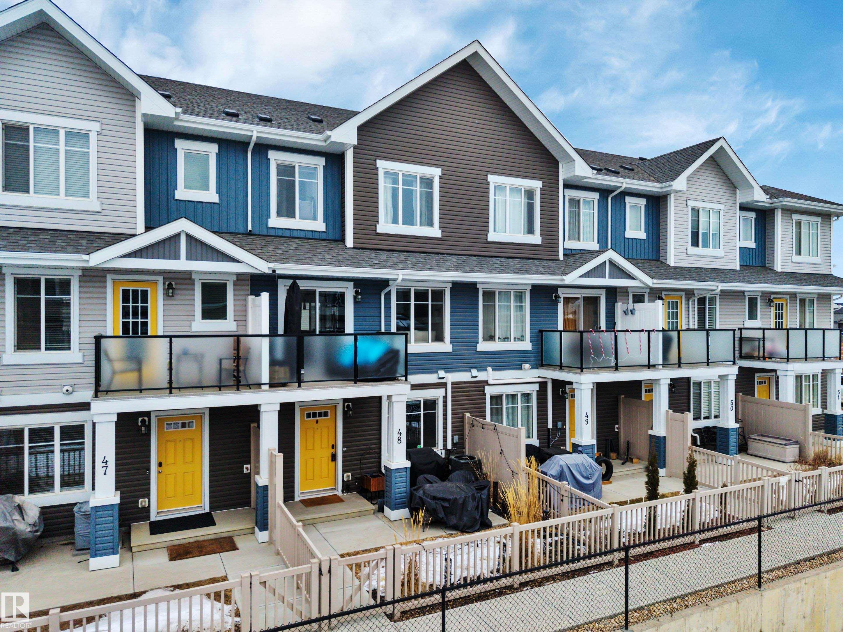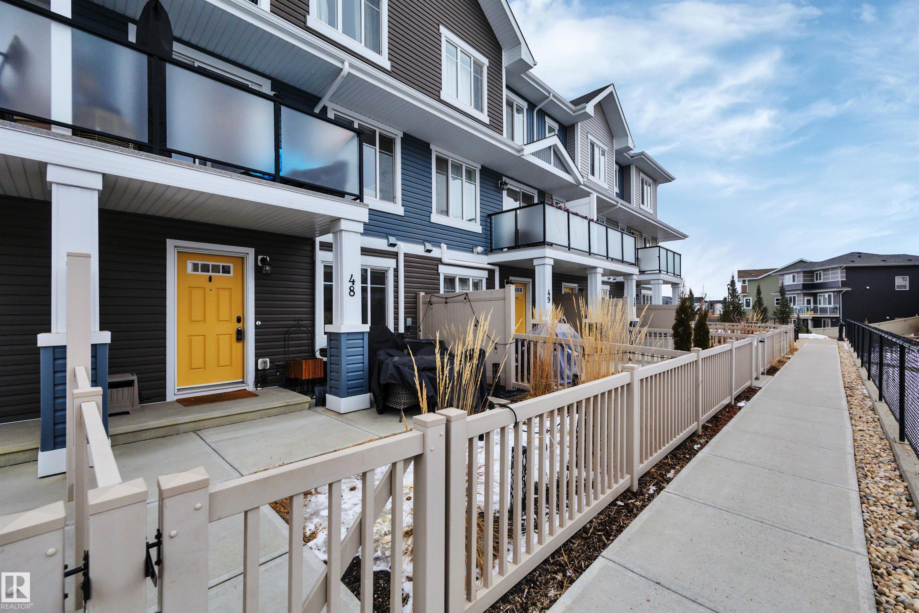 Welcome to this fully upgraded 3 Bedroom + Bonus Room home with Double Garage, Fully Fenced Yard, Central Air Conditioning, and backing onto a Walking Trail! At 1480 sqft, this is one of the largest townhouse floor plans available in Chappelle and includes a rare main floor Bonus Room, Office or Potential 4th Bedroom! The home is in pristine move-in-ready condition and has the best location ? built on the exterior of the complex with sunny south-facing exposure overlooking a walking trail (and not other units)! Enjoy the convenience of your full-sized dining room, oversized kitchen with island, full-sized laundry room, south-facing balcony, and great sunny south-facing concrete patio with fully fenced yard making it great for kids or pets. Upgrades include 9' ceilings, quartz counters, stainless steel appliances, fireplace, A/C and more! Enjoy life in one of the best townhomes, and in one of the best complexes in all of Chappelle ? steps to shopping, restaurants & trails. Immediate possession available!