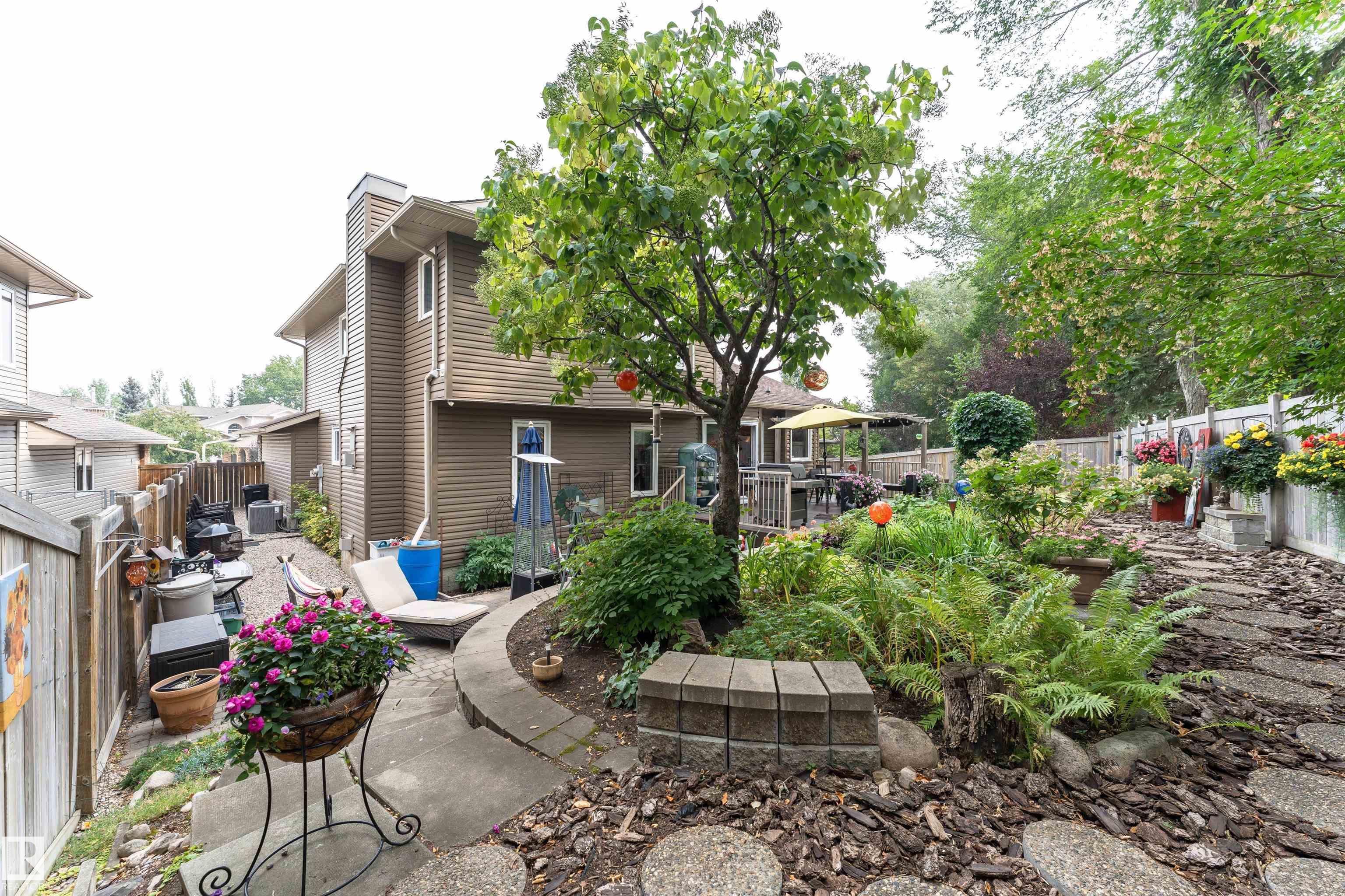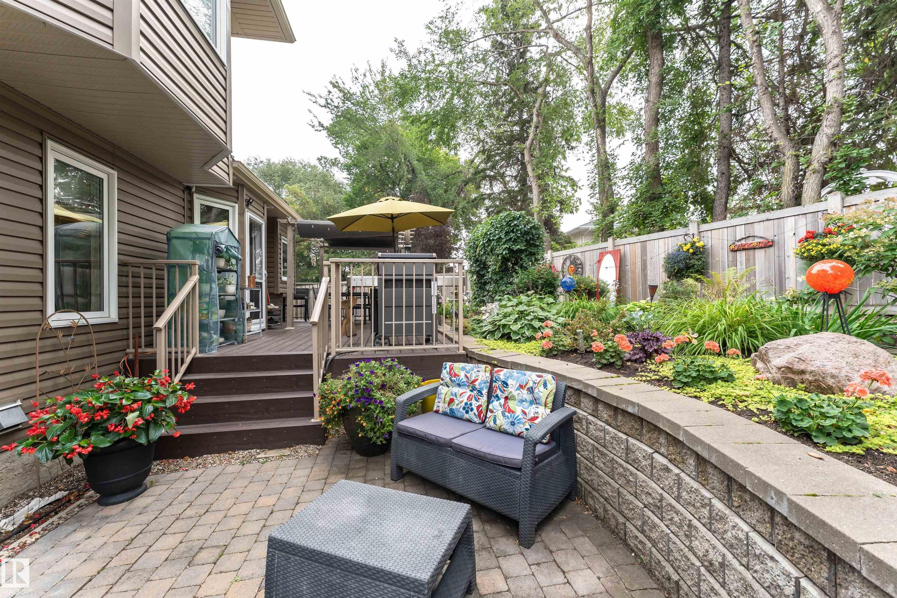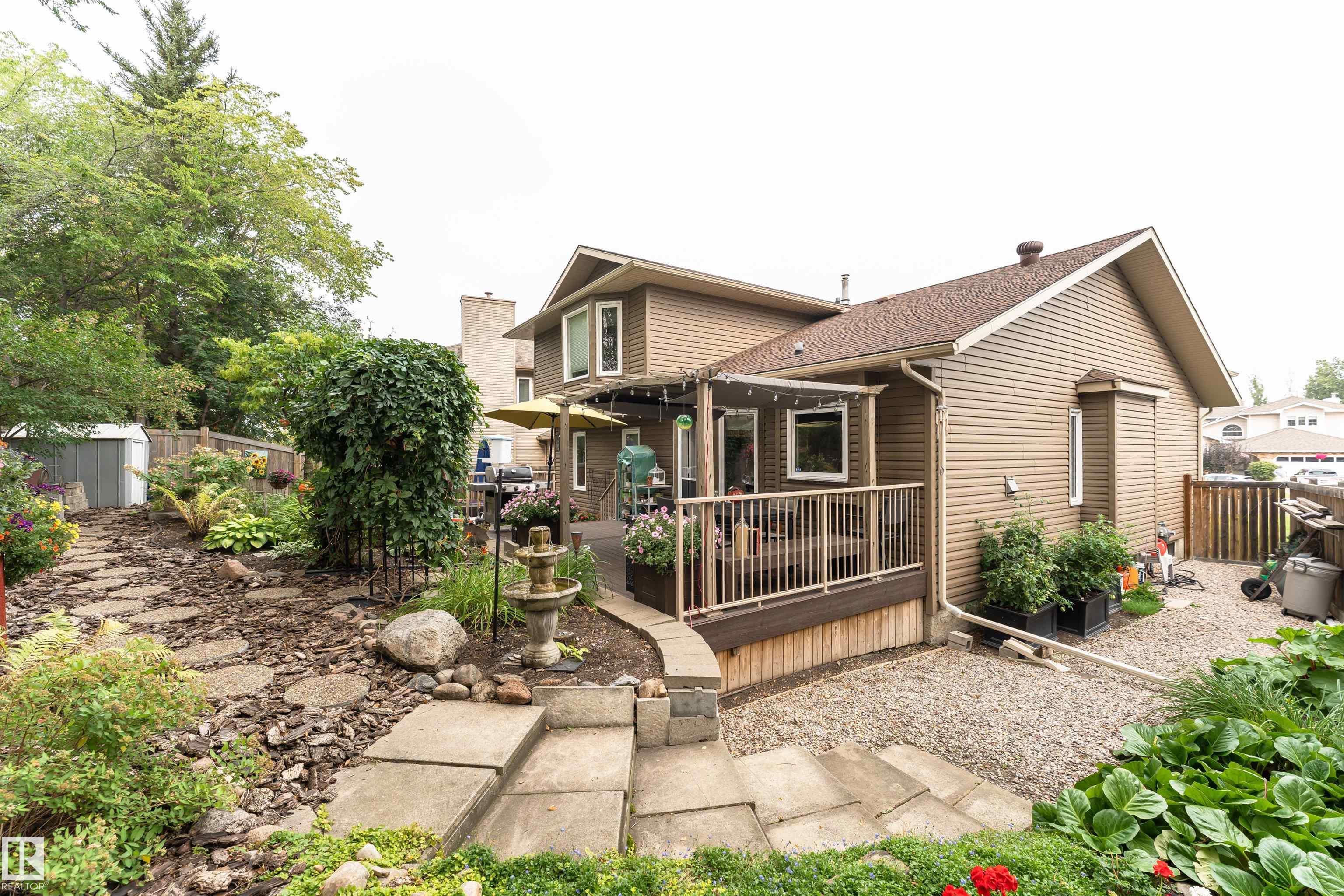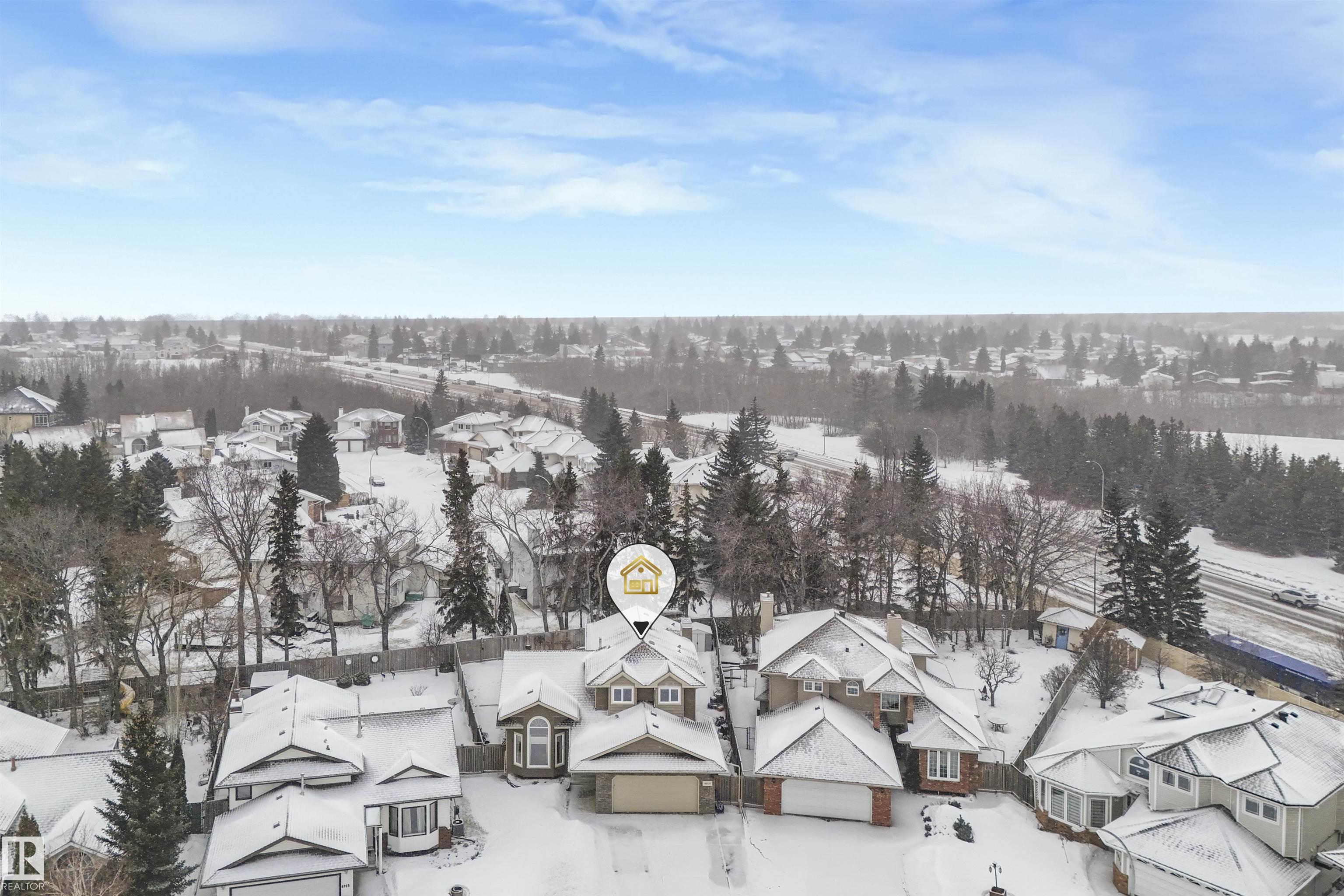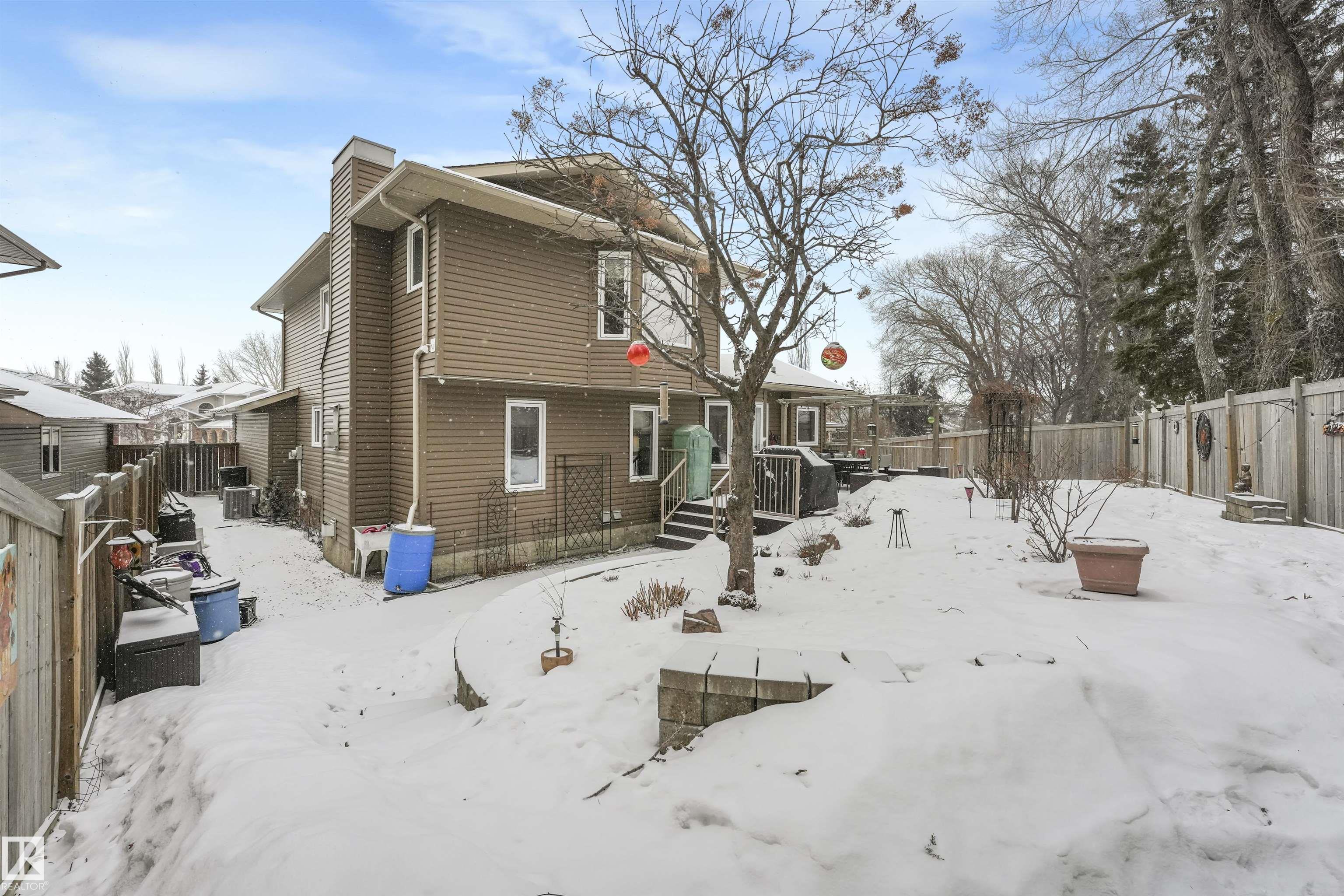 Tucked away in a quiet cul-de-sac in Jackson Heights, this well-maintained home sits on a beautifully landscaped pie-shaped lot. The private backyard is fully fenced with a composite deck & gas BBQ hookup. The main level showcases tiger hardwood throughout and a bright living room with vaulted ceilings. The kitchen offers granite counters, gas stove, SUB-ZERO FRIDGE, and corner appliance garage/bread box. A cozy family room with a gas fireplace, main floor office, and 3-pc bath complete the level. Upstairs has new carpet, primary suite with WIC and 3-pc ensuite, plus an additional 2 bedrooms and a 4-pc bath. The finished basement provides a large rec room with 2ND GAS FIREPLACE, plus built-in shelving, bedroom, 3-pc bath, laundry, and ample storage. Major updates incl. triple-glazed windows, A/C (2015), sump pump (2020), HWT (2020), furnace (2022), and Telus security system w/cameras. Fantastic location just steps to Jackie Parker Park, a short walk to Jackson Heights School, and access to the Whitemud!