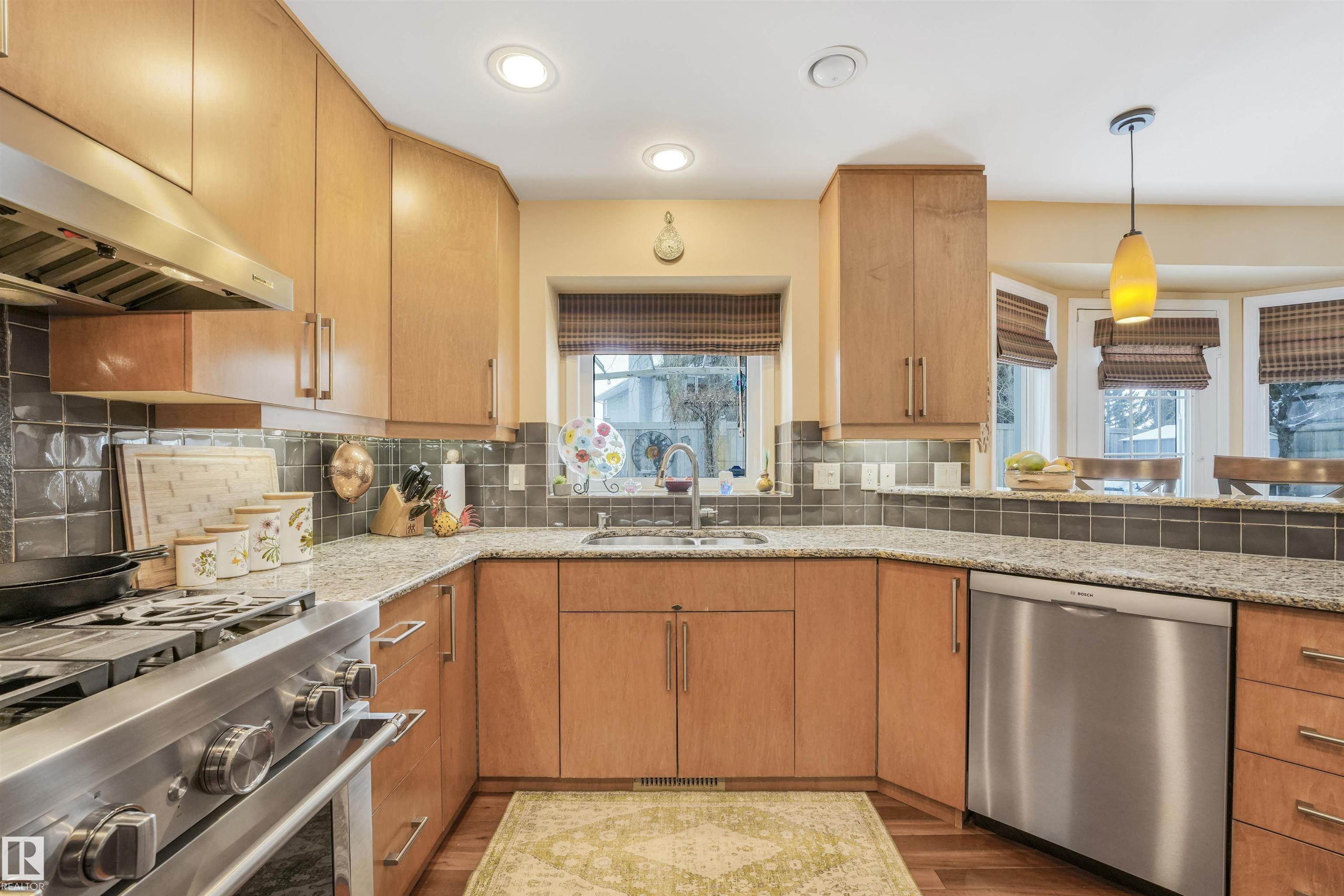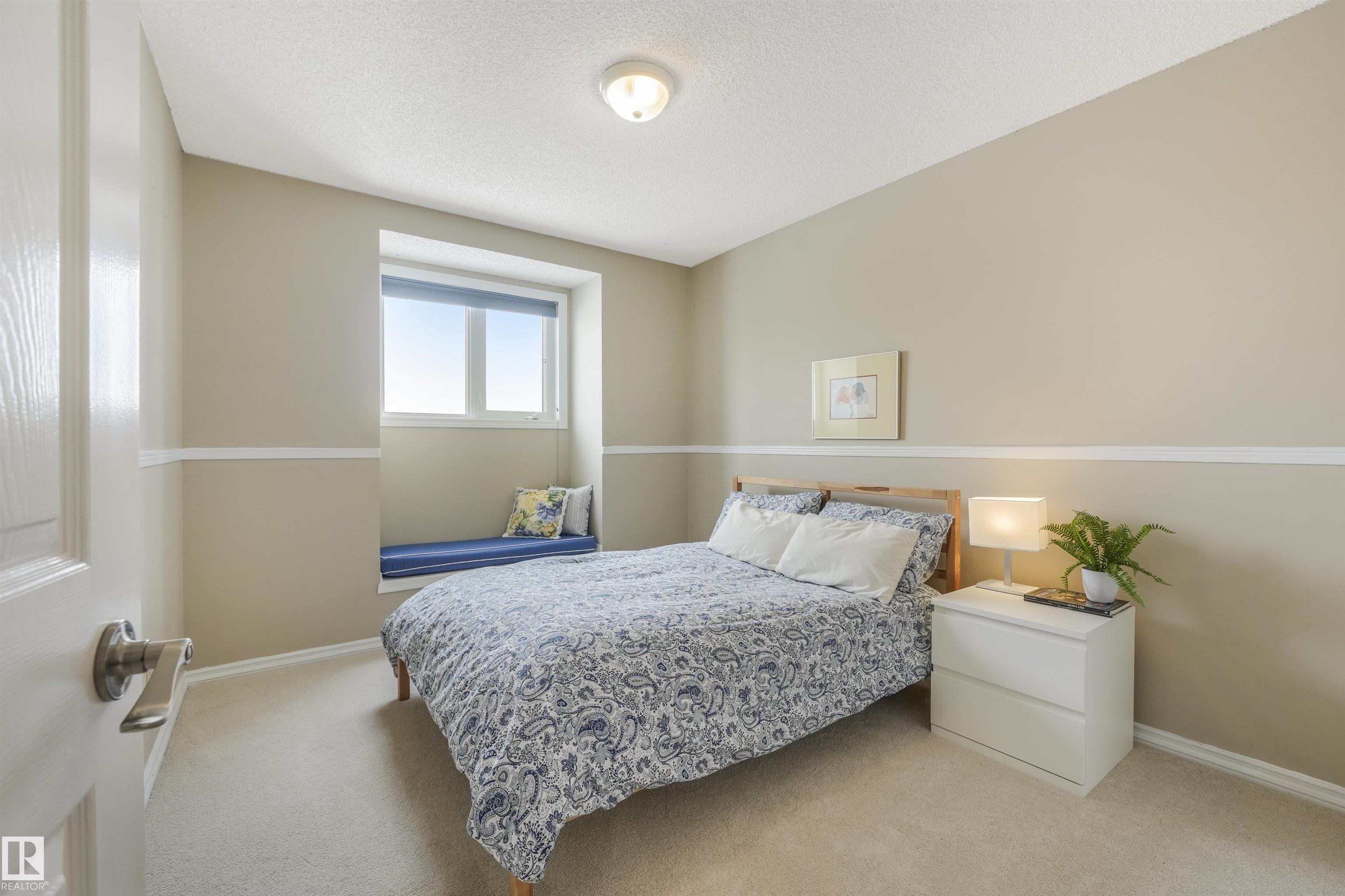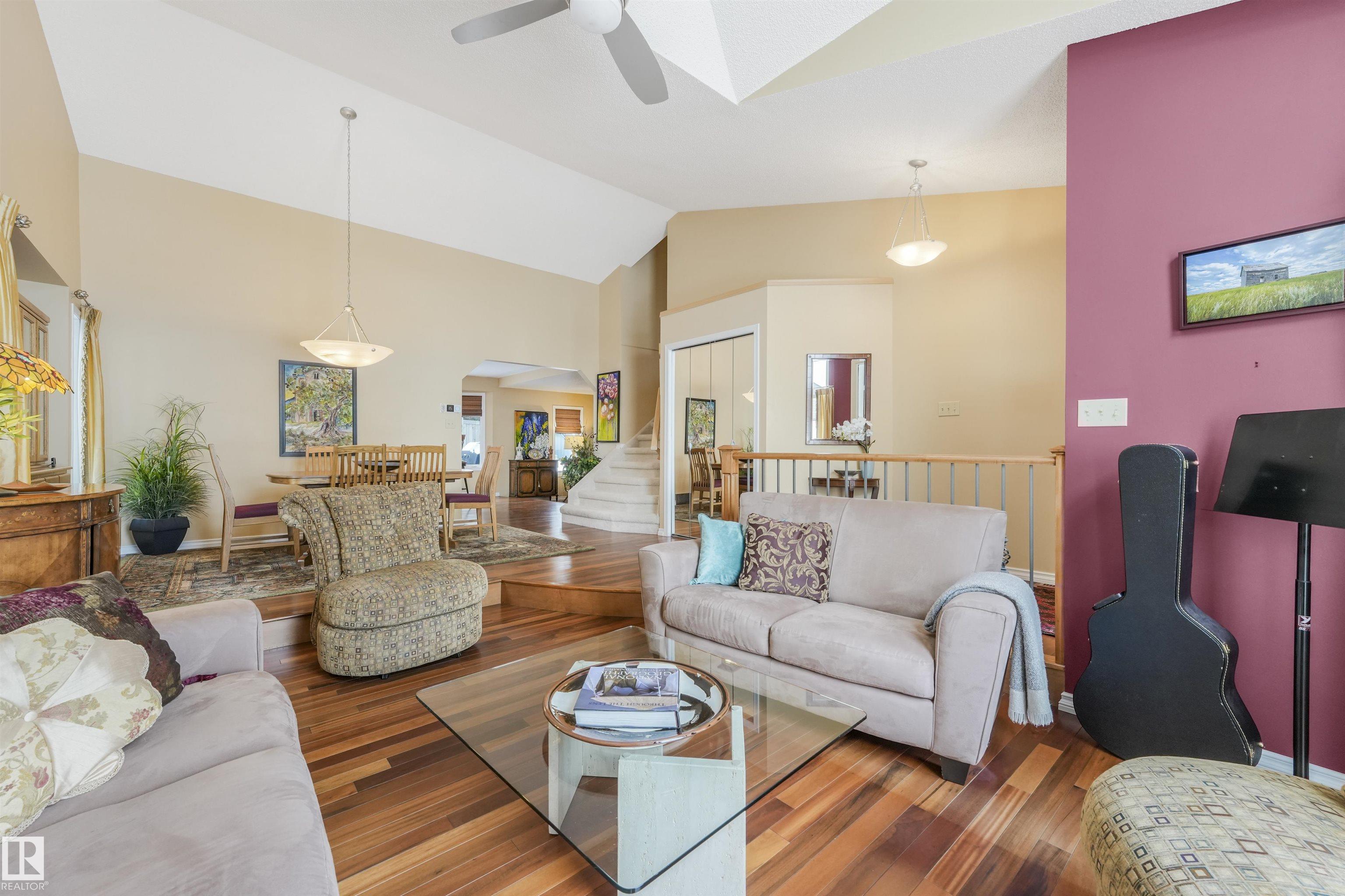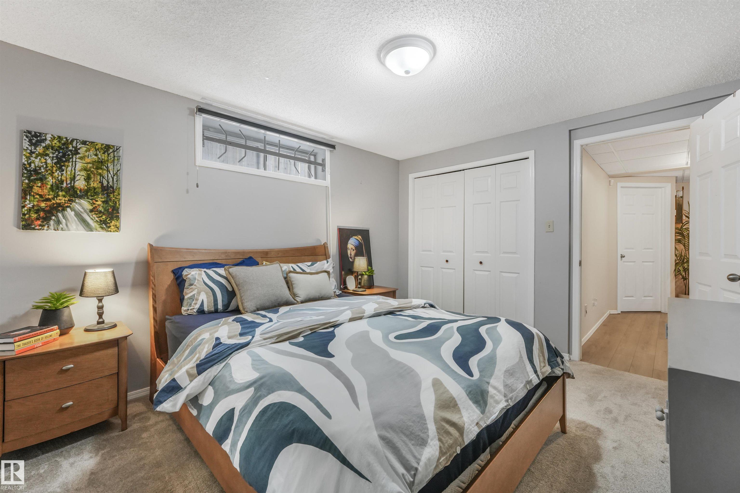 Tucked away in a quiet cul-de-sac in Jackson Heights, this well-maintained home sits on a beautifully landscaped pie-shaped lot. The private backyard is fully fenced with a composite deck & gas BBQ hookup. The main level showcases tiger hardwood throughout and a bright living room with vaulted ceilings. The kitchen offers granite counters, gas stove, SUB-ZERO FRIDGE, and corner appliance garage/bread box. A cozy family room with a gas fireplace, main floor office, and 3-pc bath complete the level. Upstairs has new carpet, primary suite with WIC and 3-pc ensuite, plus an additional 2 bedrooms and a 4-pc bath. The finished basement provides a large rec room with 2ND GAS FIREPLACE, plus built-in shelving, bedroom, 3-pc bath, laundry, and ample storage. Major updates incl. triple-glazed windows, A/C (2015), sump pump (2020), HWT (2020), furnace (2022), and Telus security system w/cameras. Fantastic location just steps to Jackie Parker Park, a short walk to Jackson Heights School, and access to the Whitemud!