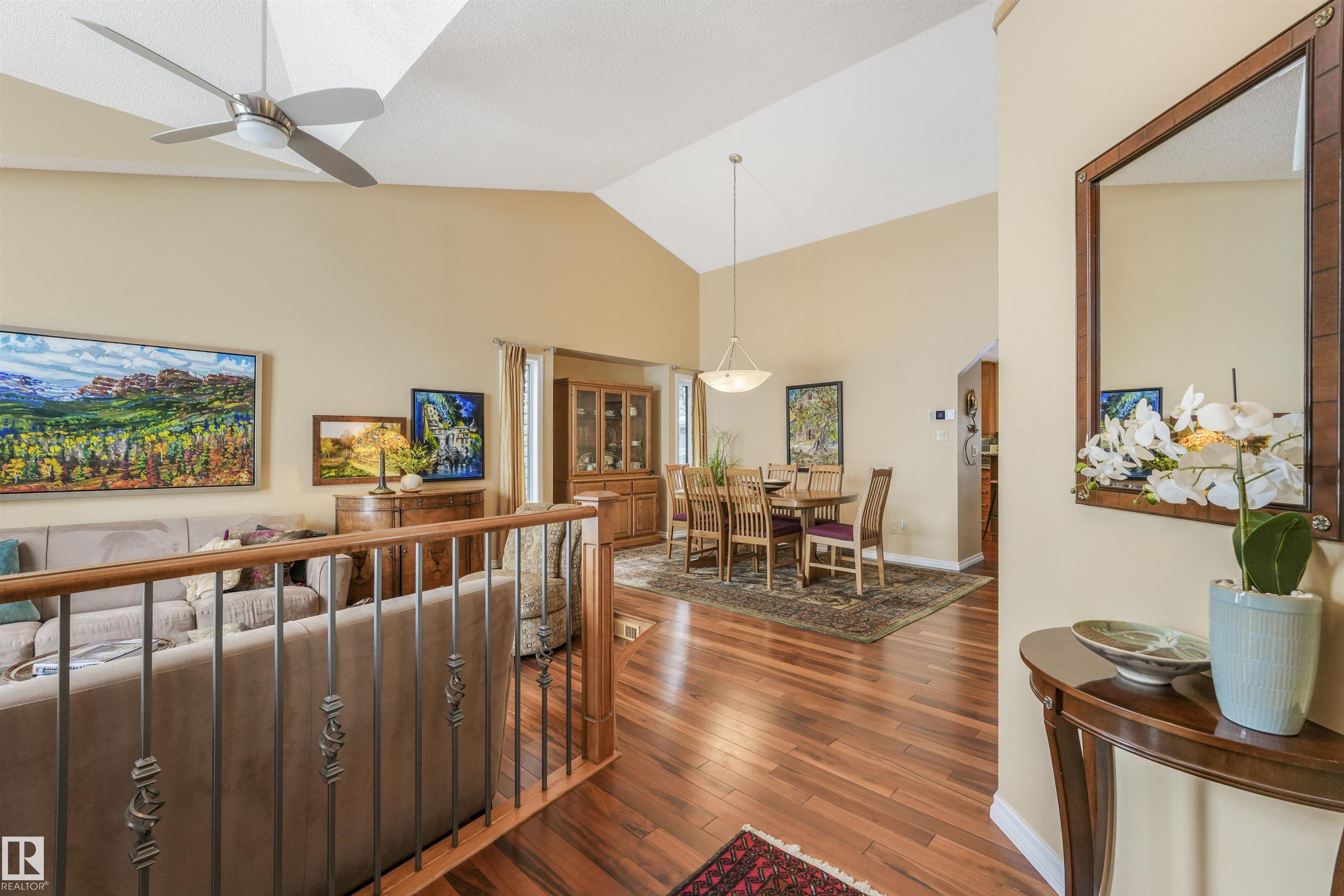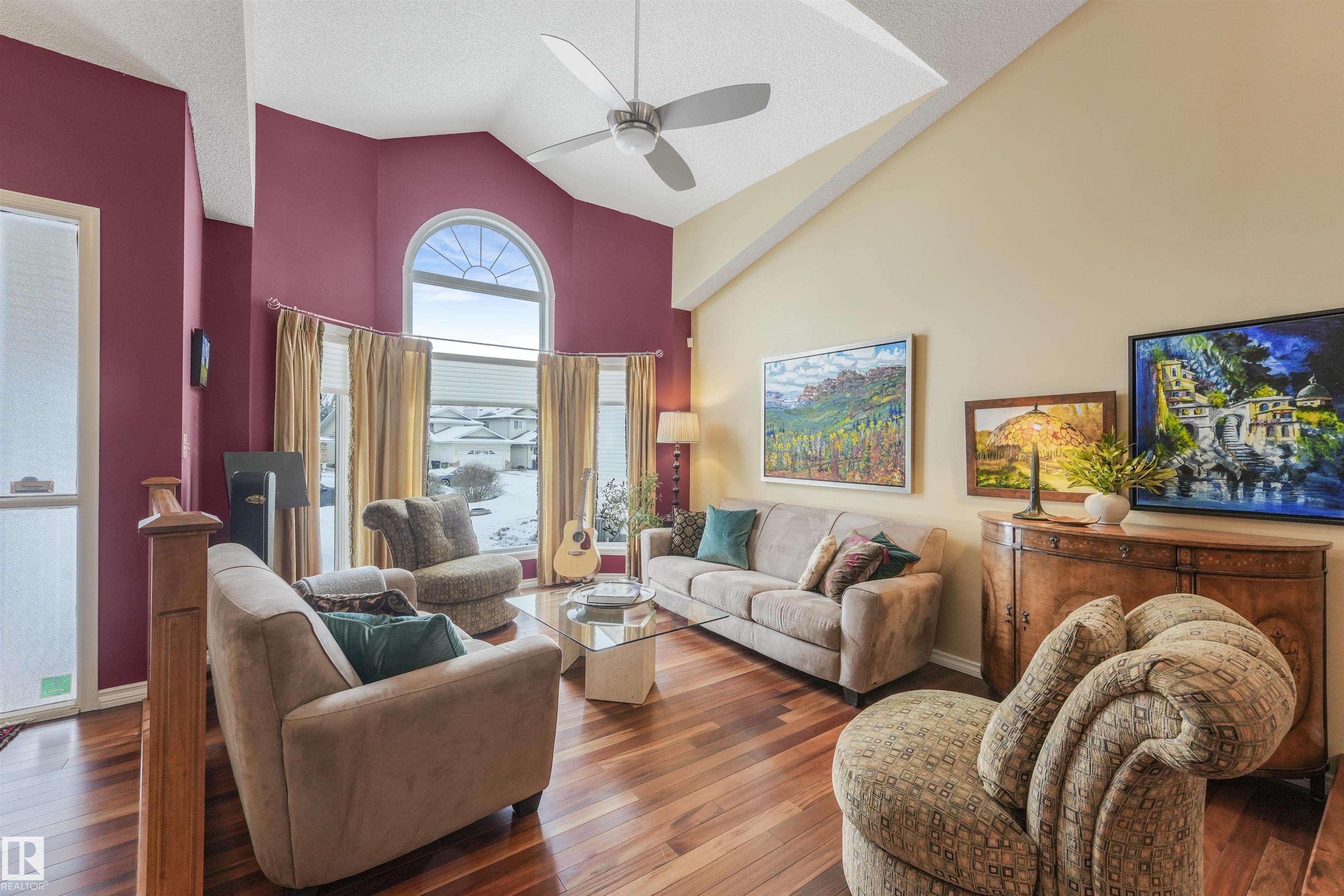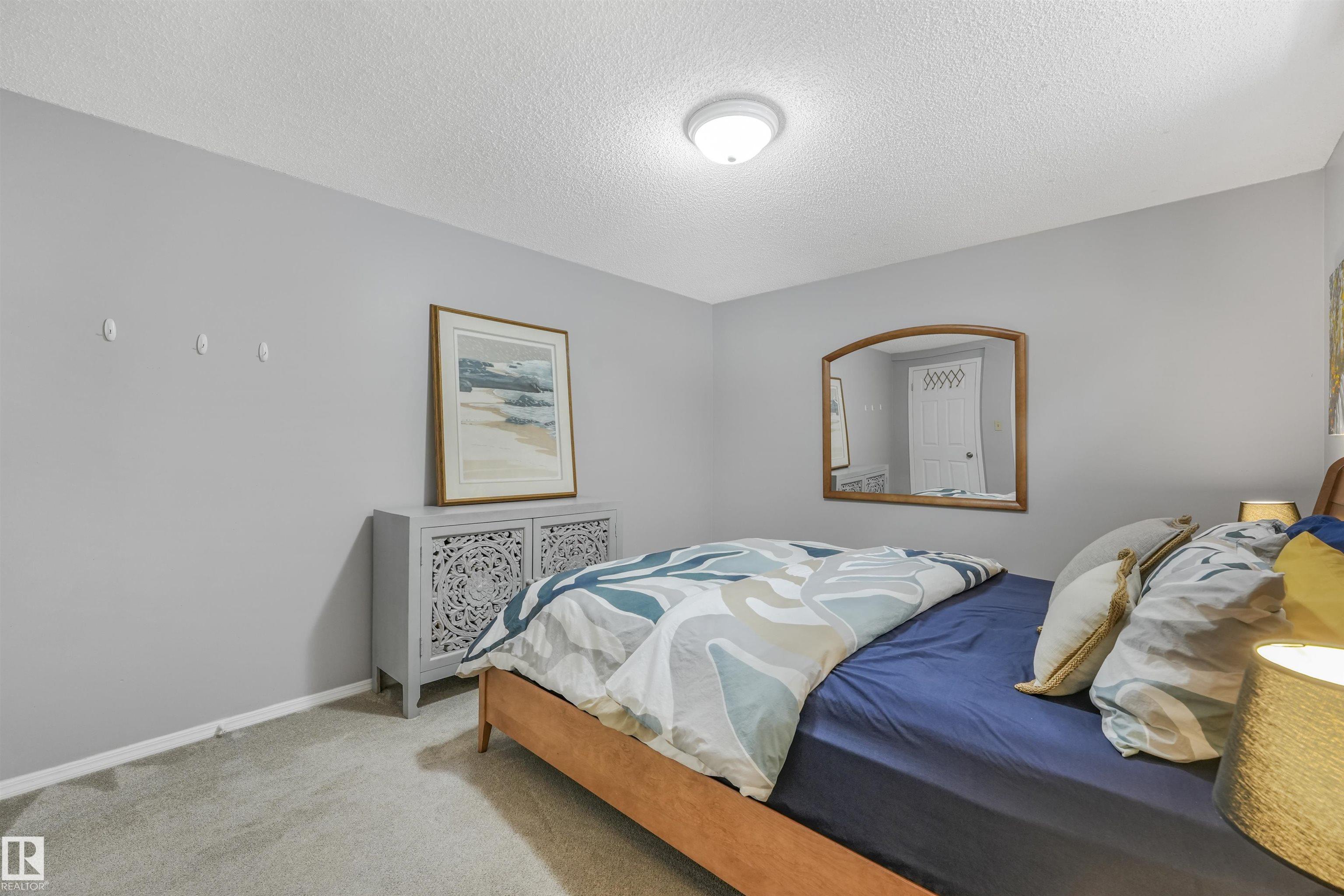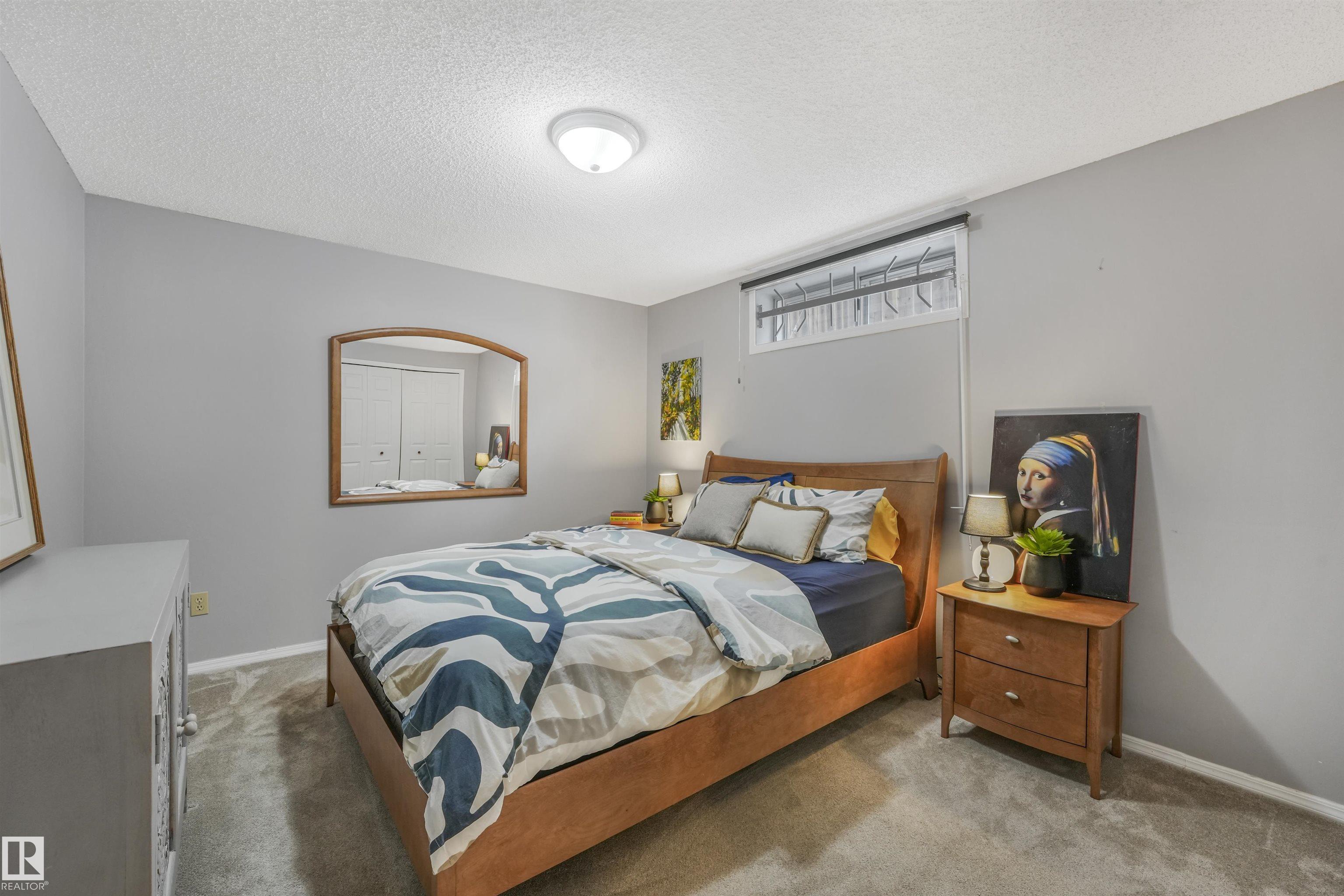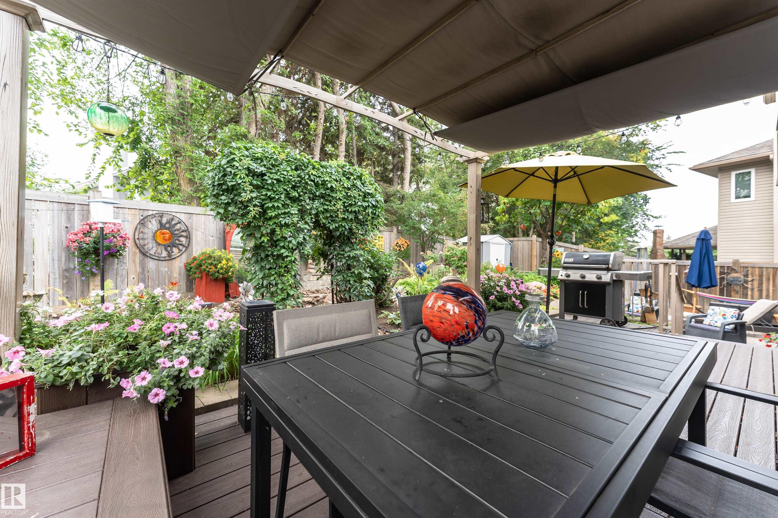 Tucked away in a quiet cul-de-sac in Jackson Heights, this well-maintained home sits on a beautifully landscaped pie-shaped lot. The private backyard is fully fenced with a composite deck & gas BBQ hookup. The main level showcases tiger hardwood throughout and a bright living room with vaulted ceilings. The kitchen offers granite counters, gas stove, SUB-ZERO FRIDGE, and corner appliance garage/bread box. A cozy family room with a gas fireplace, main floor office, and 3-pc bath complete the level. Upstairs has new carpet, primary suite with WIC and 3-pc ensuite, plus an additional 2 bedrooms and a 4-pc bath. The finished basement provides a large rec room with 2ND GAS FIREPLACE, plus built-in shelving, bedroom, 3-pc bath, laundry, and ample storage. Major updates incl. triple-glazed windows, A/C (2015), sump pump (2020), HWT (2020), furnace (2022), and Telus security system w/cameras. Fantastic location just steps to Jackie Parker Park, a short walk to Jackson Heights School, and access to the Whitemud!