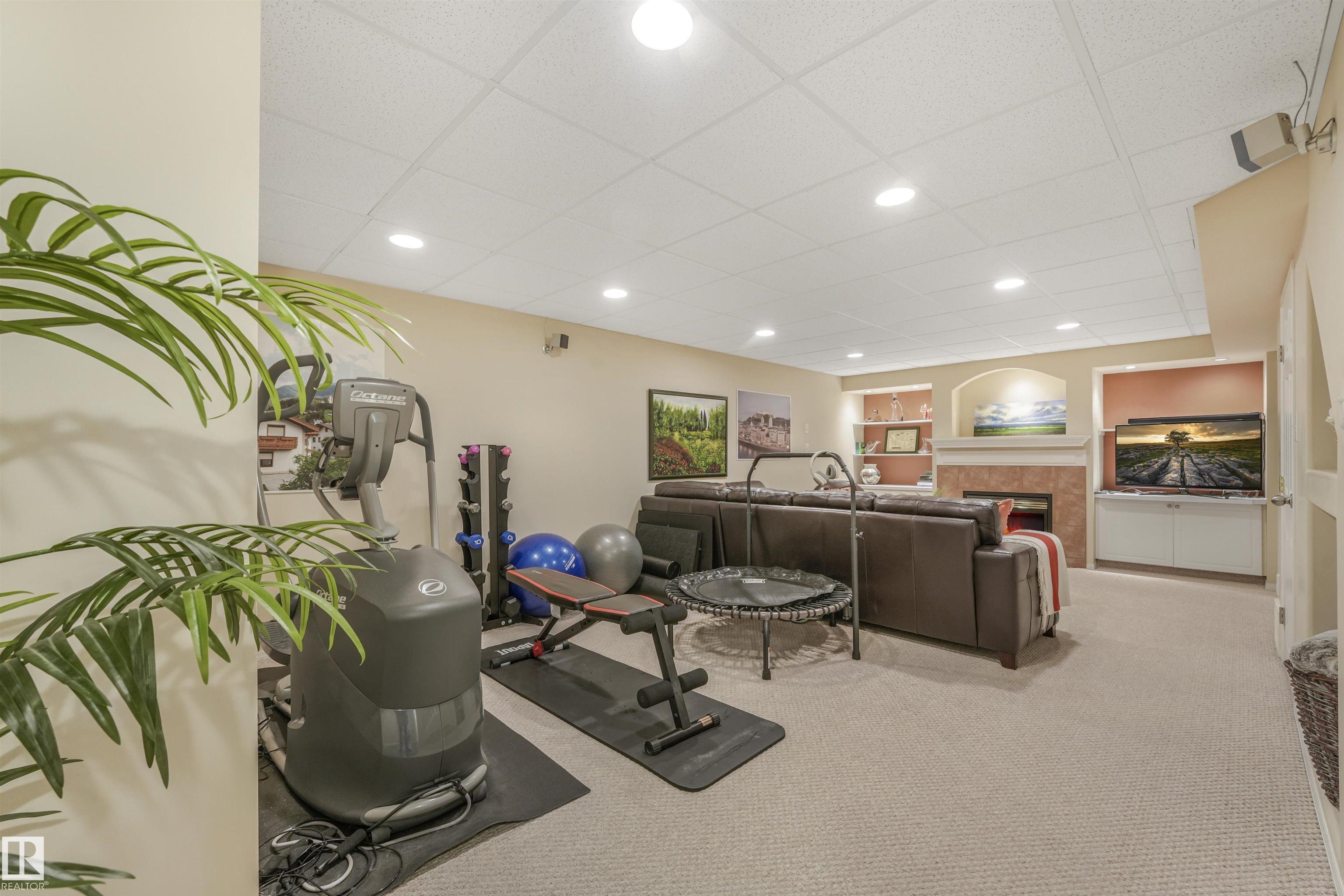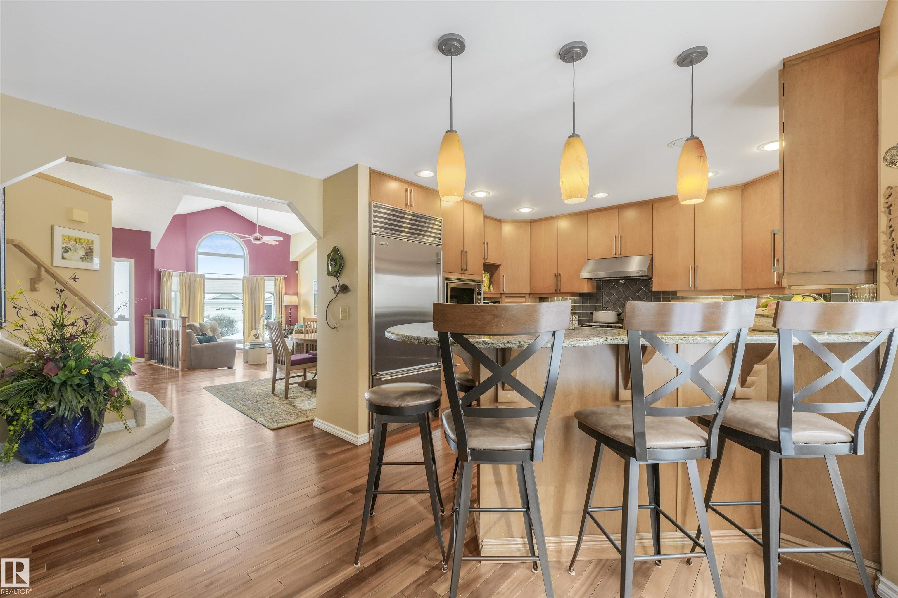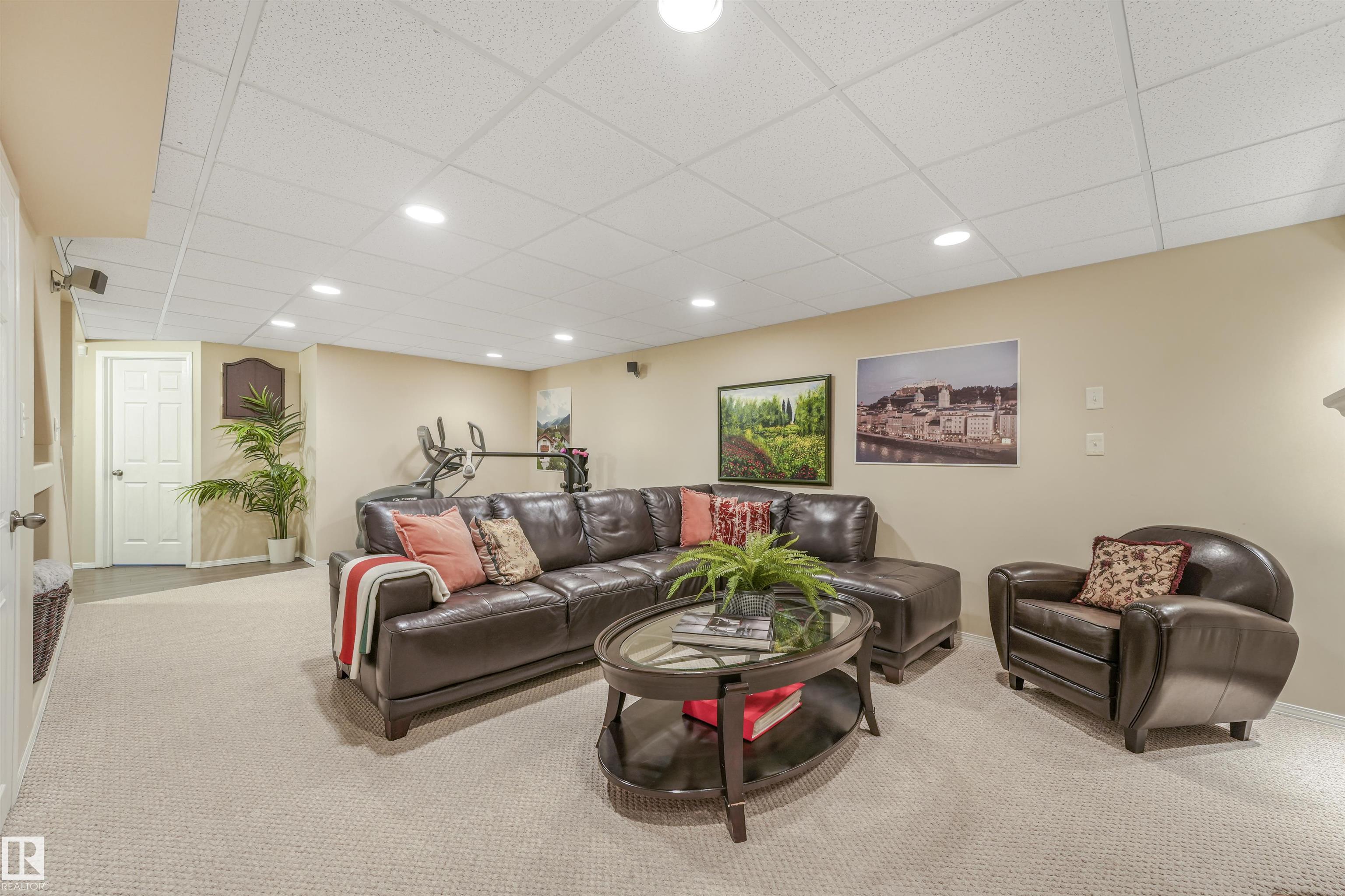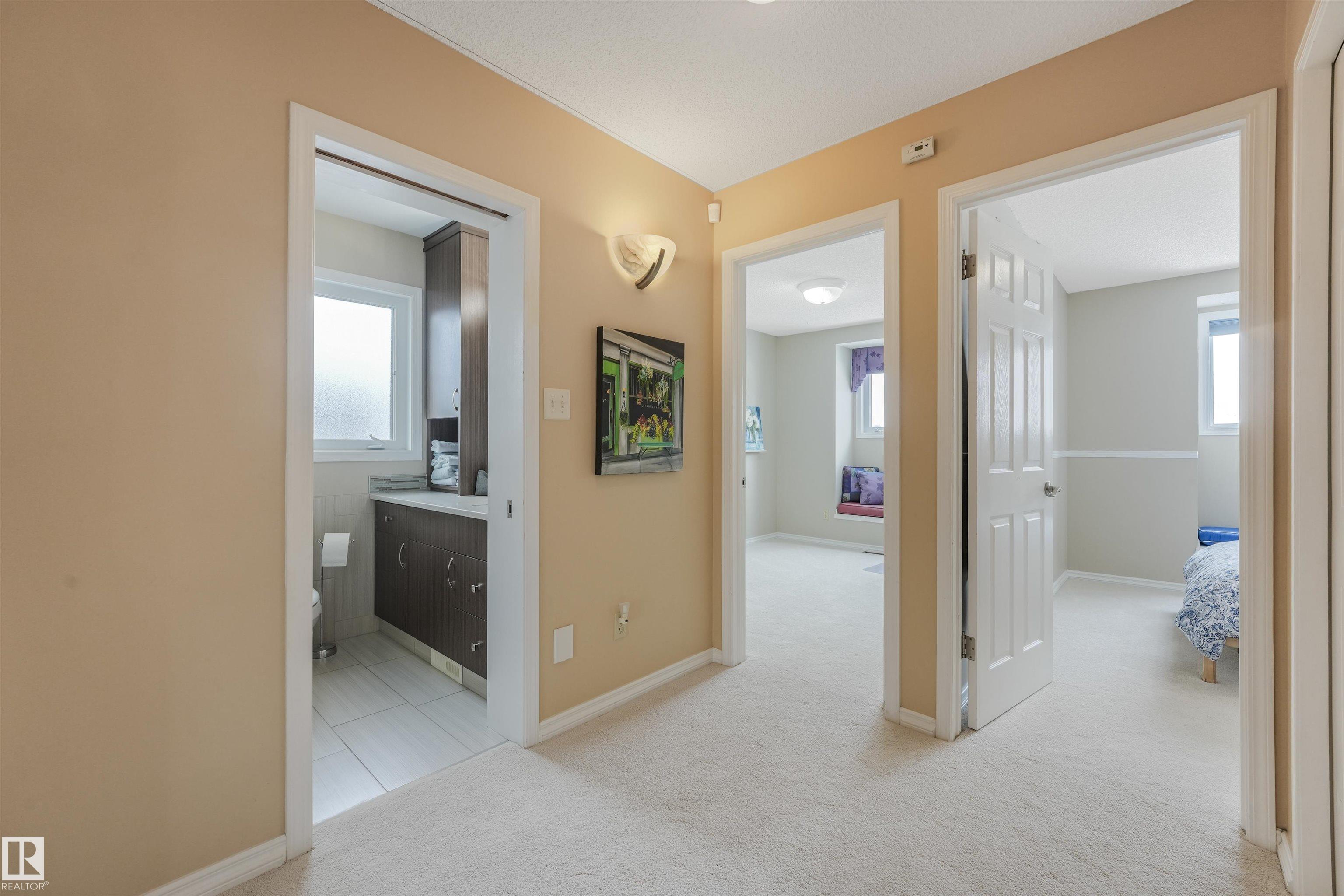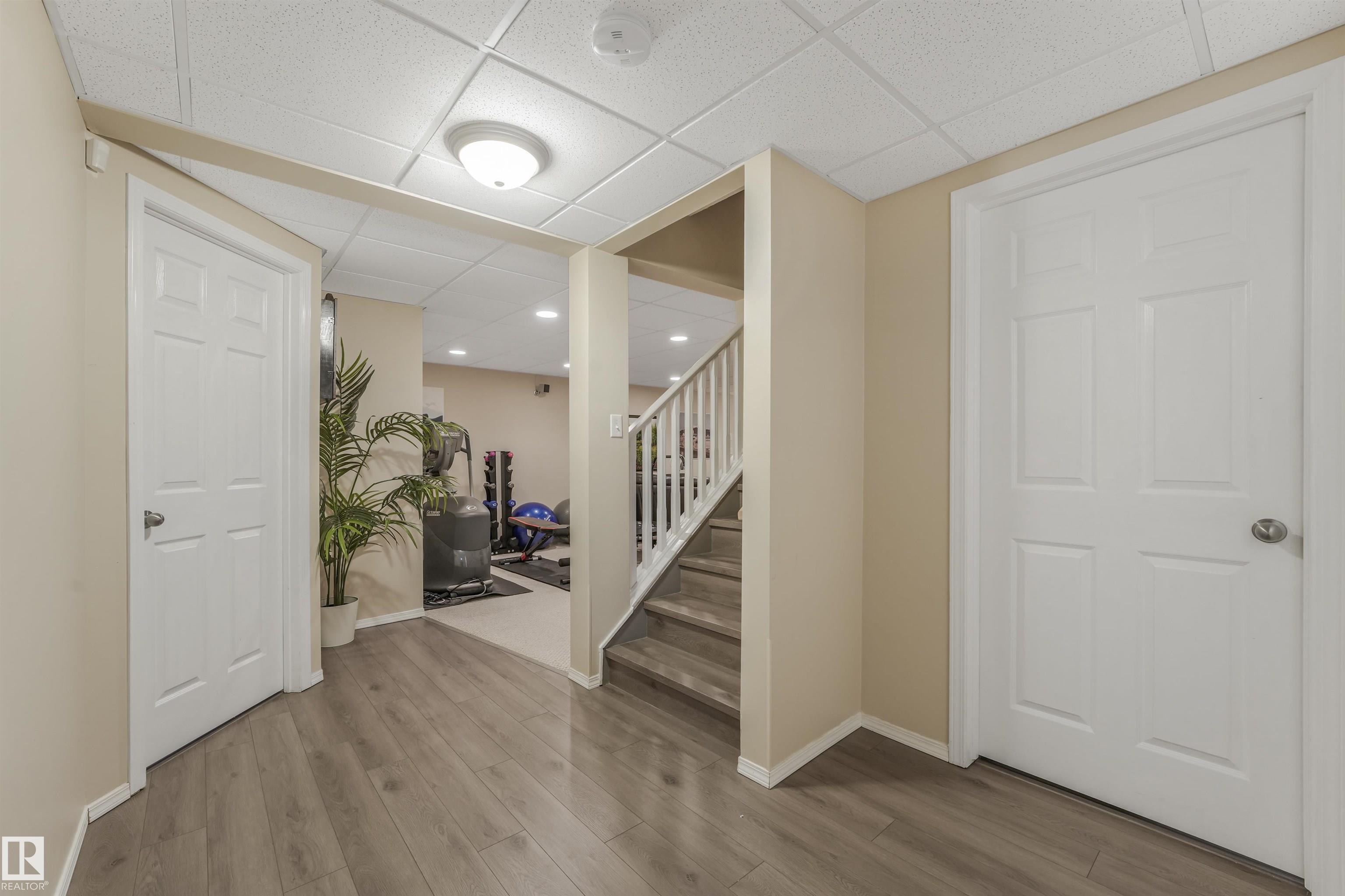 Tucked away in a quiet cul-de-sac in Jackson Heights, this well-maintained home sits on a beautifully landscaped pie-shaped lot. The private backyard is fully fenced with a composite deck & gas BBQ hookup. The main level showcases tiger hardwood throughout and a bright living room with vaulted ceilings. The kitchen offers granite counters, gas stove, SUB-ZERO FRIDGE, and corner appliance garage/bread box. A cozy family room with a gas fireplace, main floor office, and 3-pc bath complete the level. Upstairs has new carpet, primary suite with WIC and 3-pc ensuite, plus an additional 2 bedrooms and a 4-pc bath. The finished basement provides a large rec room with 2ND GAS FIREPLACE, plus built-in shelving, bedroom, 3-pc bath, laundry, and ample storage. Major updates incl. triple-glazed windows, A/C (2015), sump pump (2020), HWT (2020), furnace (2022), and Telus security system w/cameras. Fantastic location just steps to Jackie Parker Park, a short walk to Jackson Heights School, and access to the Whitemud!