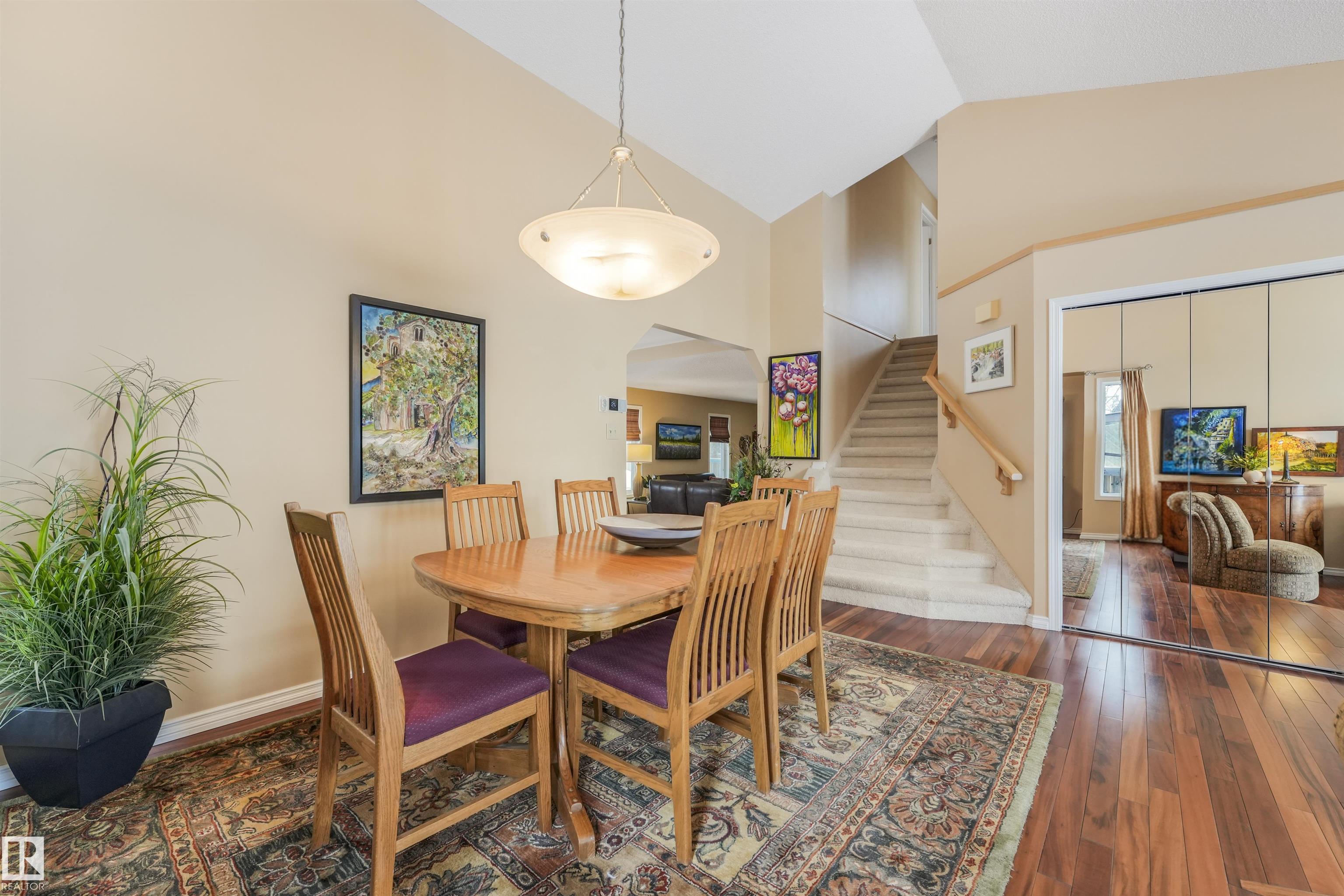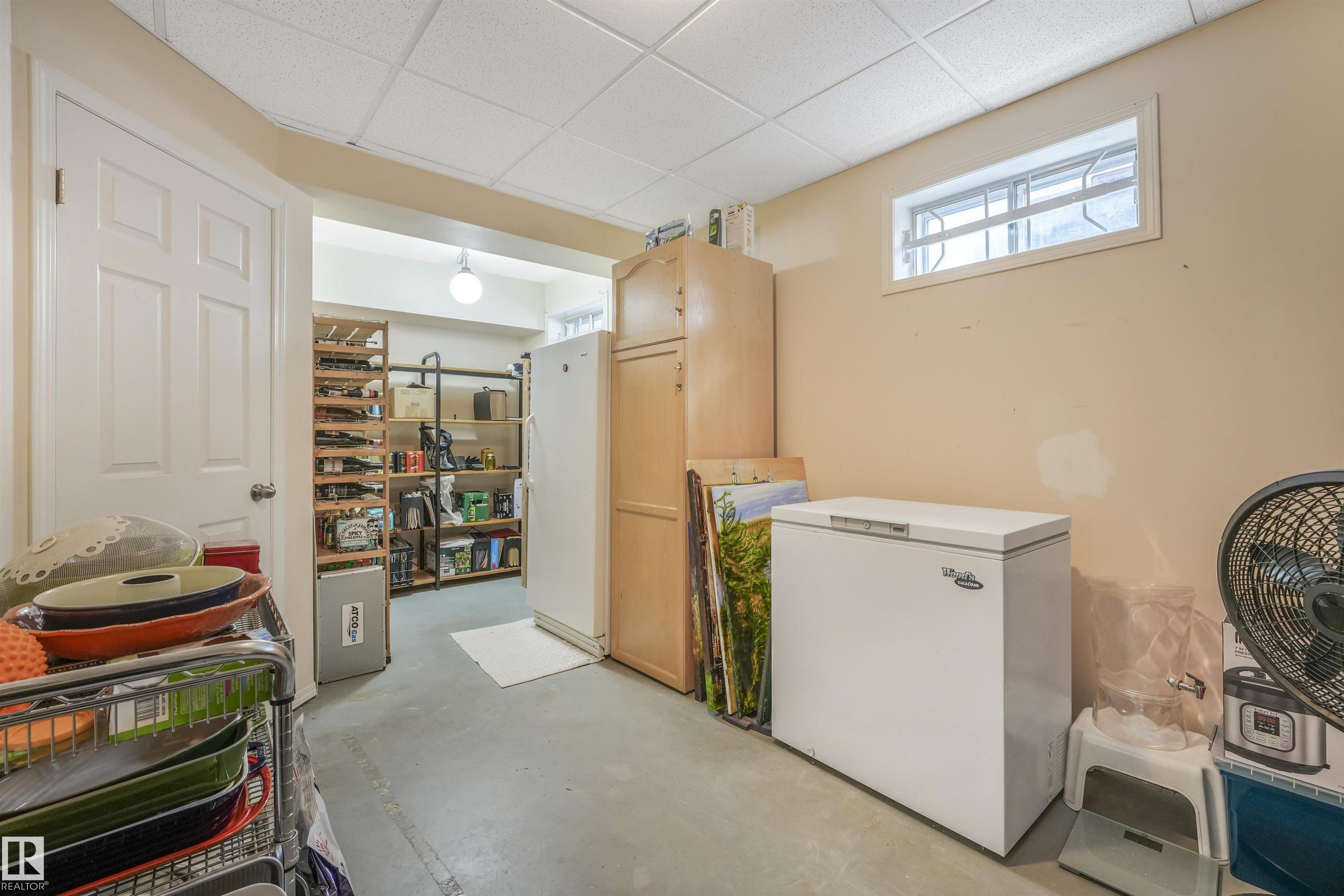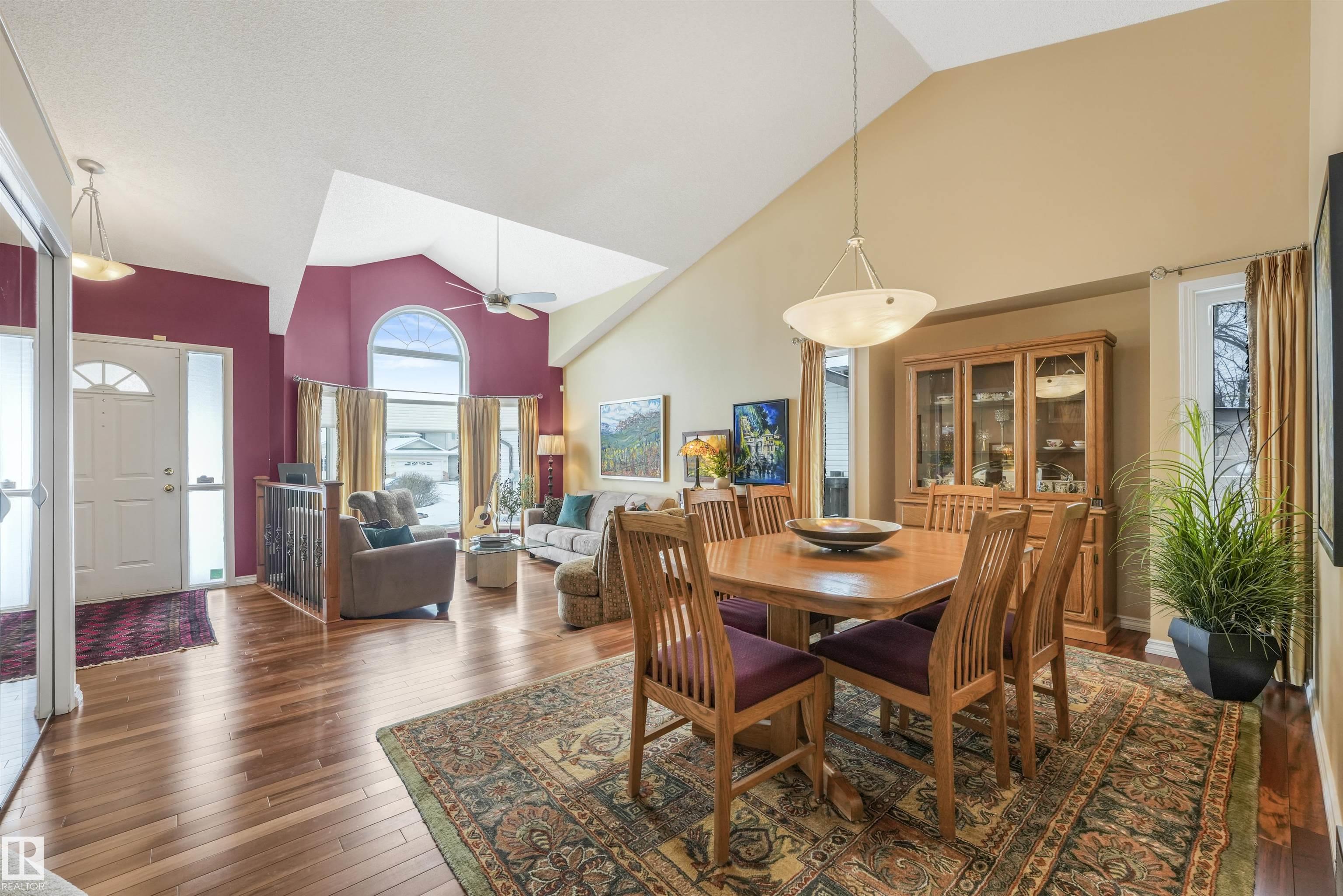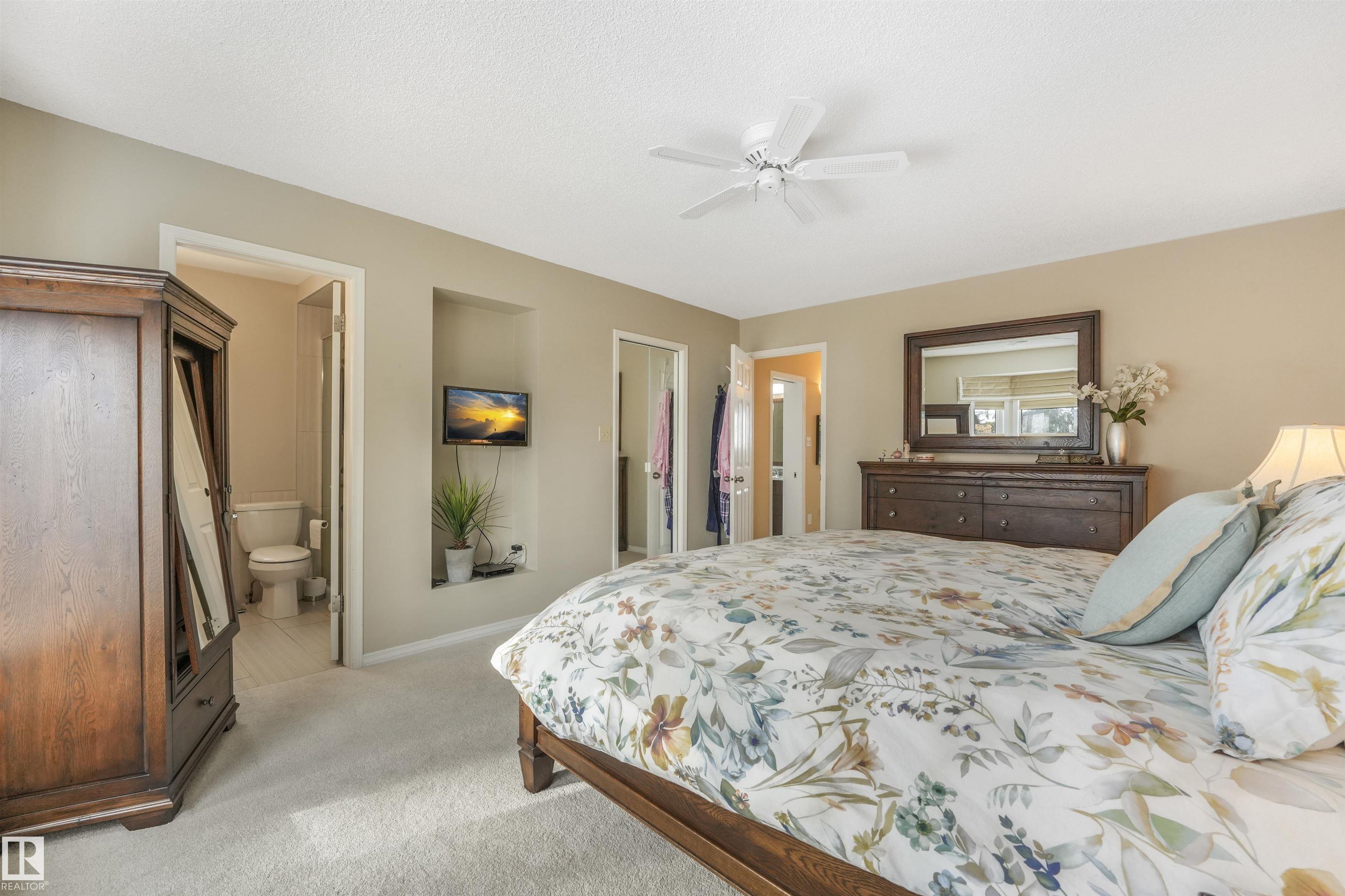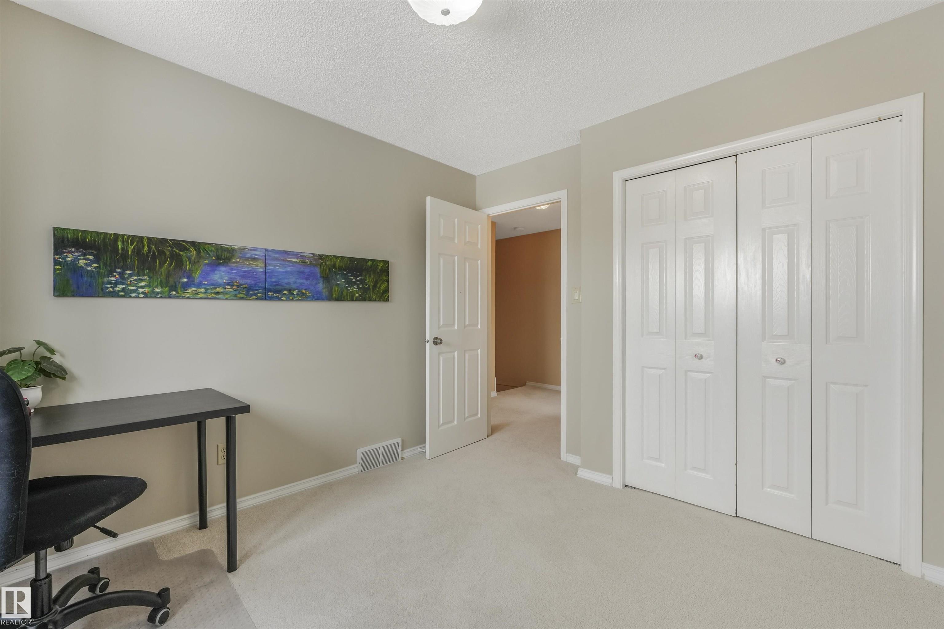 Tucked away in a quiet cul-de-sac in Jackson Heights, this well-maintained home sits on a beautifully landscaped pie-shaped lot. The private backyard is fully fenced with a composite deck & gas BBQ hookup. The main level showcases tiger hardwood throughout and a bright living room with vaulted ceilings. The kitchen offers granite counters, gas stove, SUB-ZERO FRIDGE, and corner appliance garage/bread box. A cozy family room with a gas fireplace, main floor office, and 3-pc bath complete the level. Upstairs has new carpet, primary suite with WIC and 3-pc ensuite, plus an additional 2 bedrooms and a 4-pc bath. The finished basement provides a large rec room with 2ND GAS FIREPLACE, plus built-in shelving, bedroom, 3-pc bath, laundry, and ample storage. Major updates incl. triple-glazed windows, A/C (2015), sump pump (2020), HWT (2020), furnace (2022), and Telus security system w/cameras. Fantastic location just steps to Jackie Parker Park, a short walk to Jackson Heights School, and access to the Whitemud!