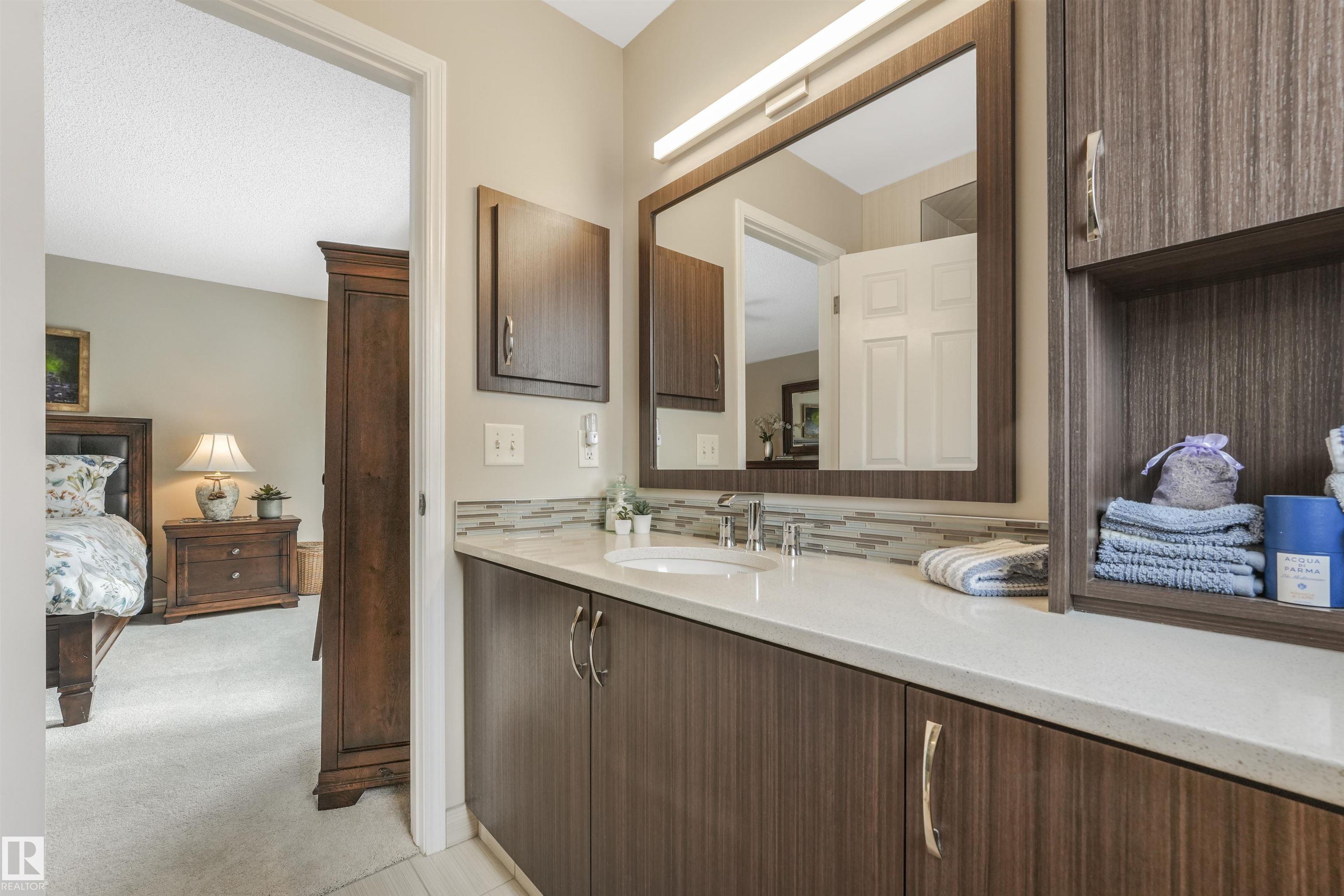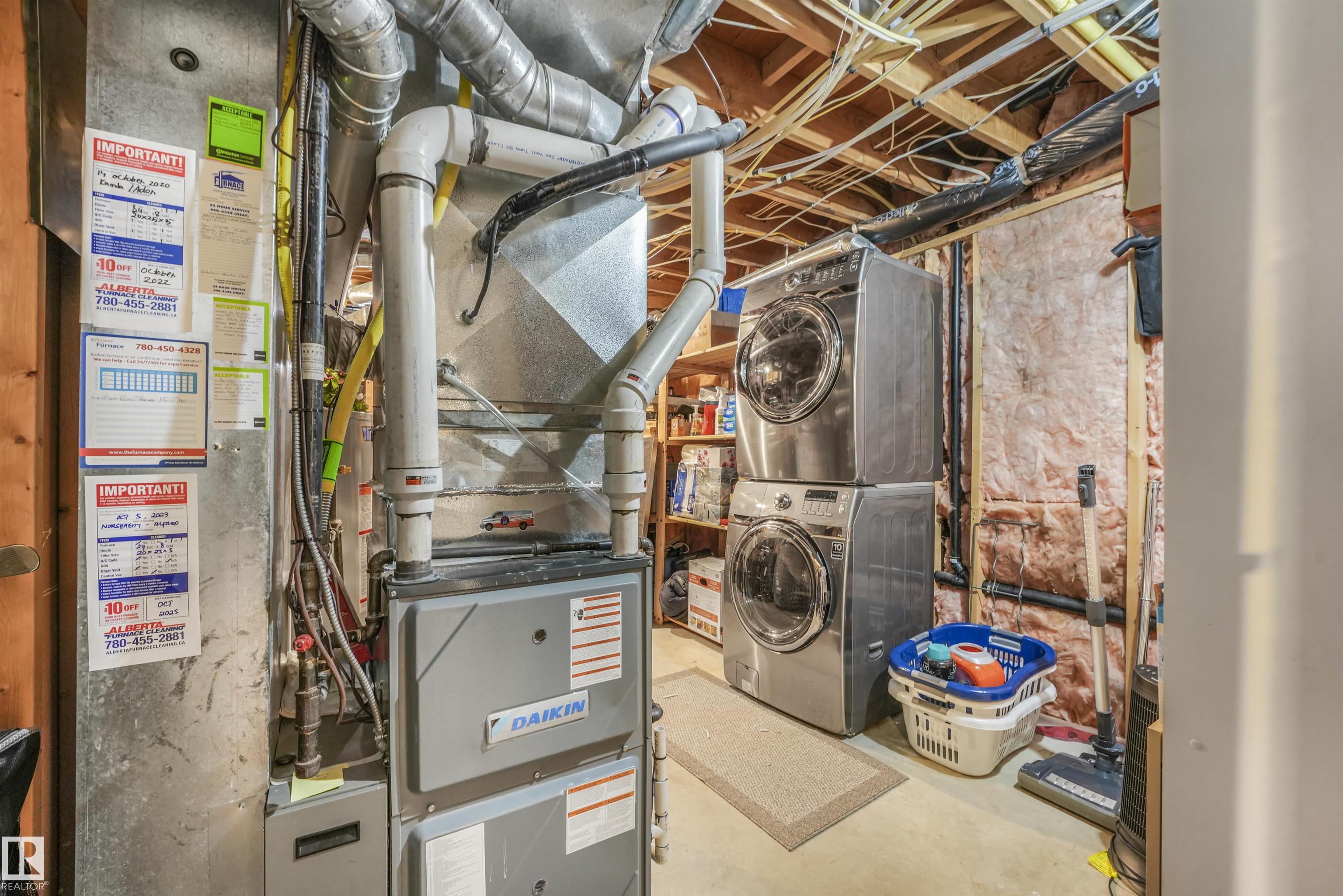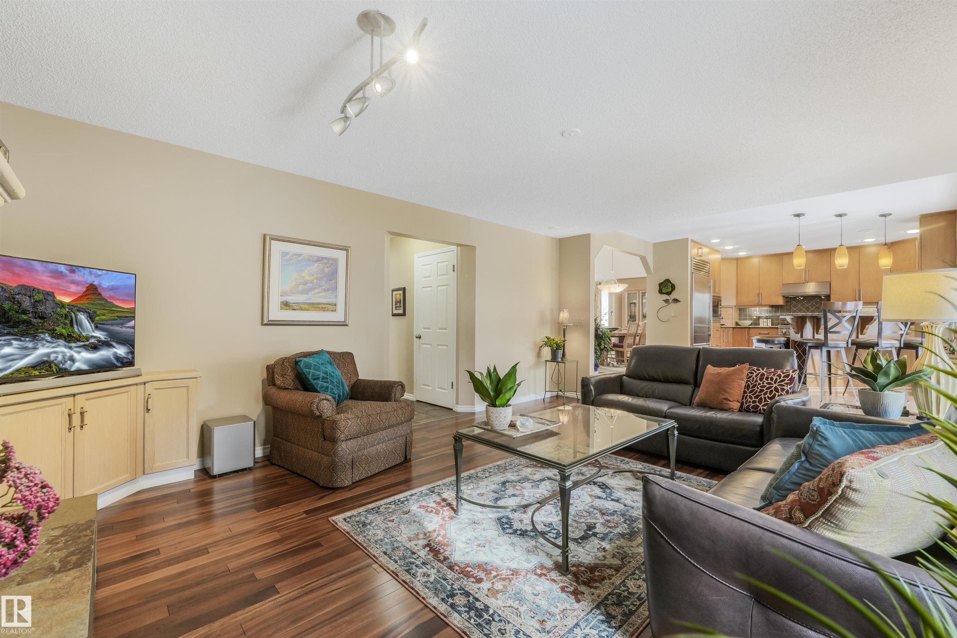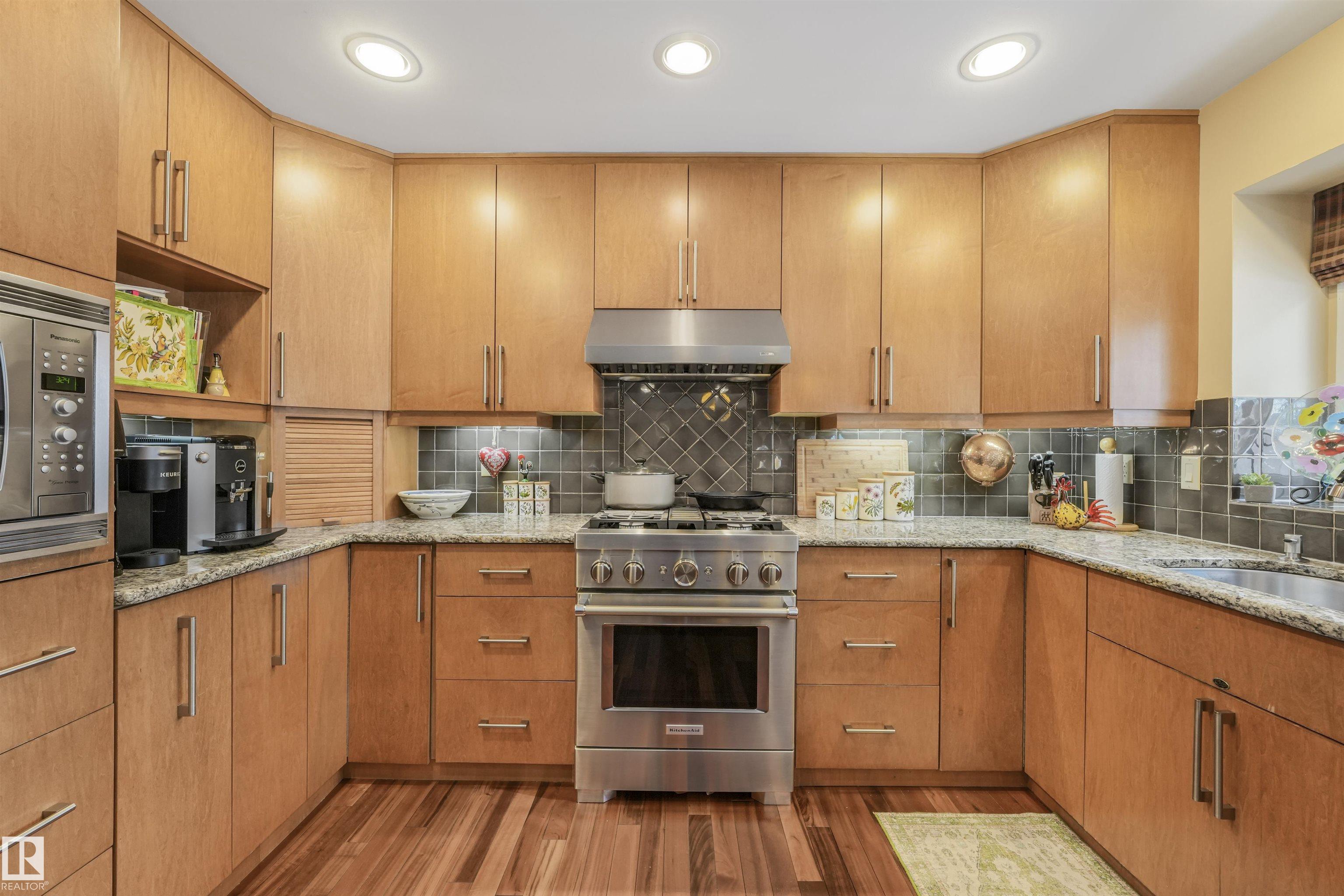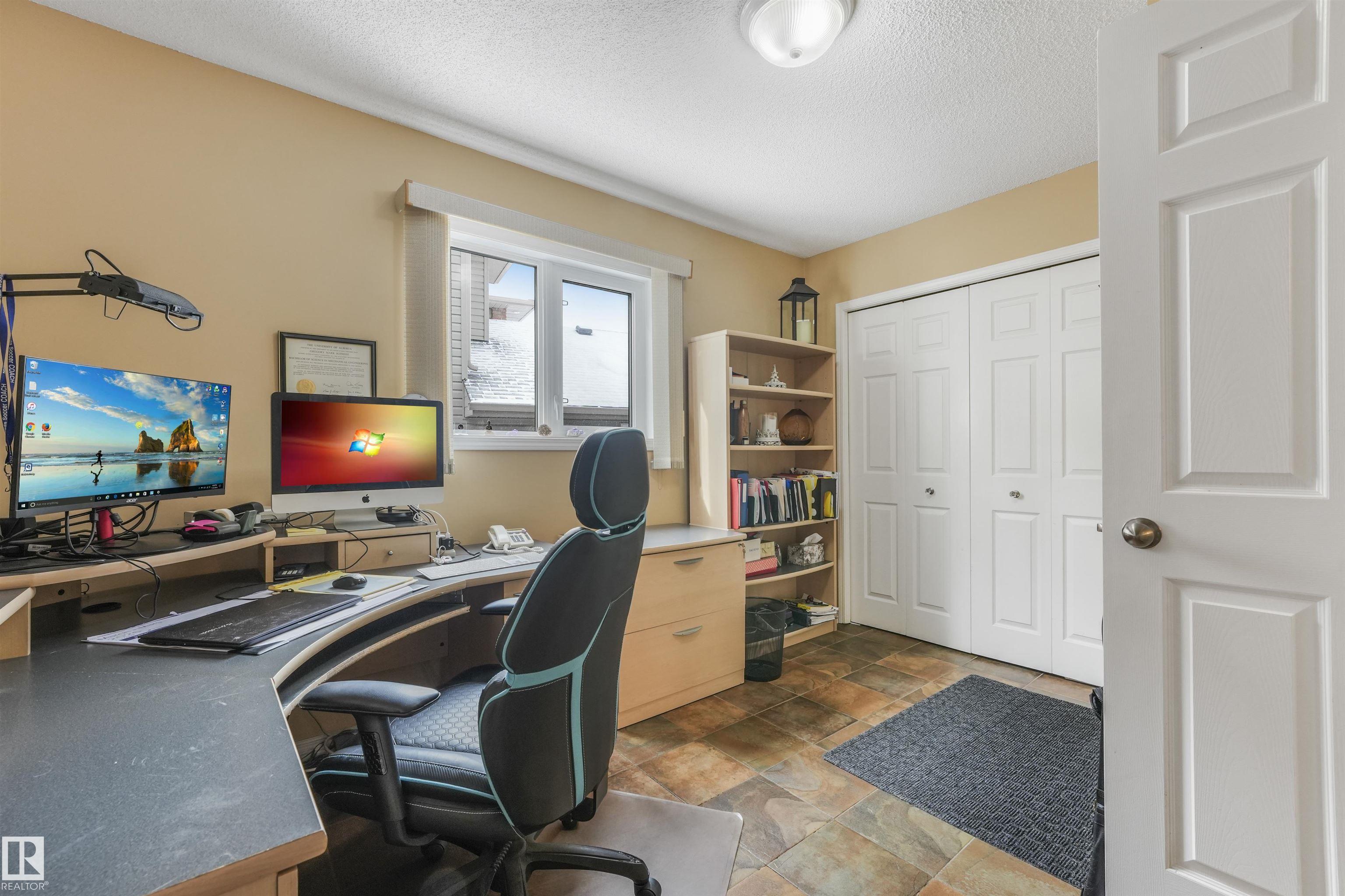 Tucked away in a quiet cul-de-sac in Jackson Heights, this well-maintained home sits on a beautifully landscaped pie-shaped lot. The private backyard is fully fenced with a composite deck & gas BBQ hookup. The main level showcases tiger hardwood throughout and a bright living room with vaulted ceilings. The kitchen offers granite counters, gas stove, SUB-ZERO FRIDGE, and corner appliance garage/bread box. A cozy family room with a gas fireplace, main floor office, and 3-pc bath complete the level. Upstairs has new carpet, primary suite with WIC and 3-pc ensuite, plus an additional 2 bedrooms and a 4-pc bath. The finished basement provides a large rec room with 2ND GAS FIREPLACE, plus built-in shelving, bedroom, 3-pc bath, laundry, and ample storage. Major updates incl. triple-glazed windows, A/C (2015), sump pump (2020), HWT (2020), furnace (2022), and Telus security system w/cameras. Fantastic location just steps to Jackie Parker Park, a short walk to Jackson Heights School, and access to the Whitemud!