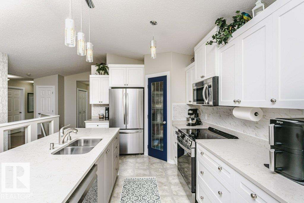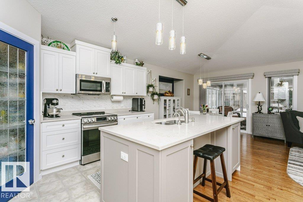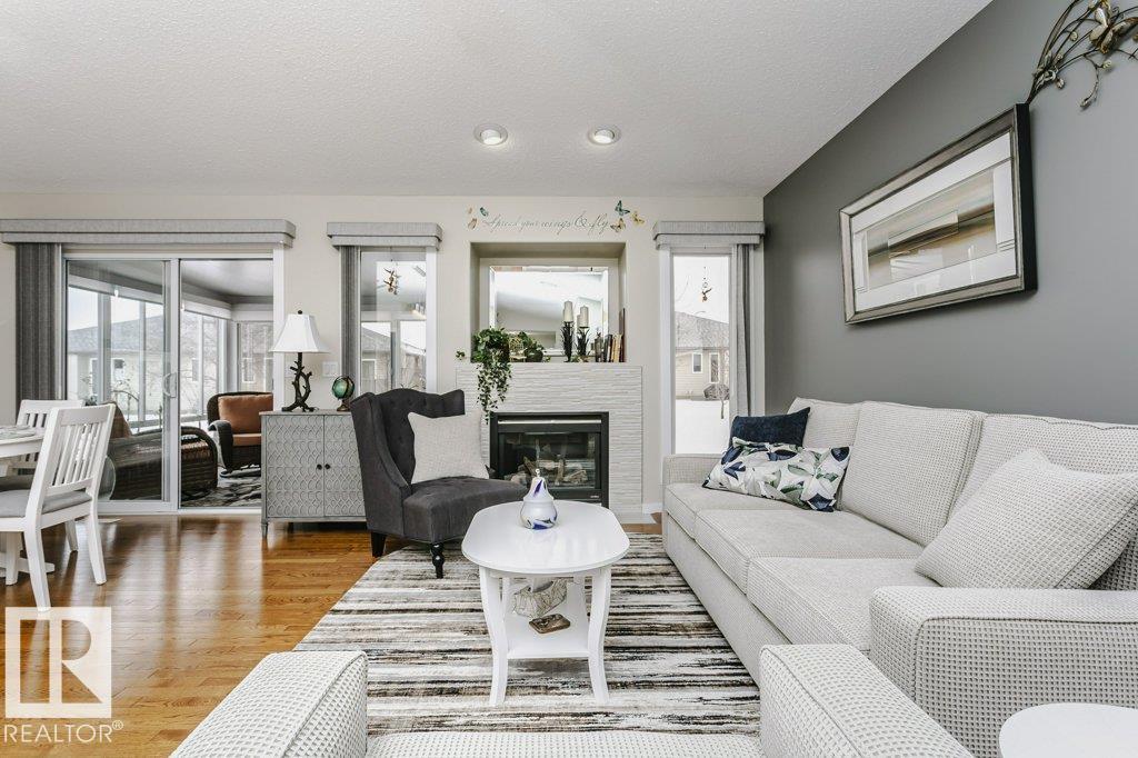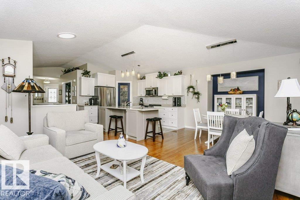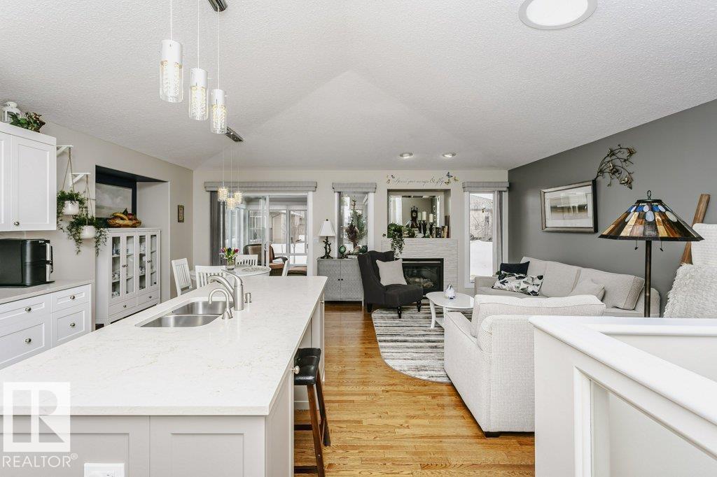 Welcome to this beautifully updated bungalow in a desirable 55+ adult living community, offering comfort, style, and convenience. This home features a spacious 20x24 attached garage and an extra-long driveway for ample parking. Inside, you?ll find an open-concept layout with a brand NEW kitchen, complete with an island and instant hot water tap?perfect for tea lovers. The inviting new sunroom adds bright, relaxing living space. The main floor boasts a large primary bedroom with a walk-in closet, additional wardrobe storage, and a private ensuite, along with a second 4-piece bathroom and a versatile front den. Enjoy the ease of main floor laundry and a beautifully updated fireplace with thermostat control. The fully finished basement offers high ceilings, two LARGE bedrooms, a 3-piece bathroom, generous storage, flex space, and a spacious family room. Additional upgrades include newer furnace, A/C, water softener, and UV-protective window film. A perfect blend of comfort and modern updates.