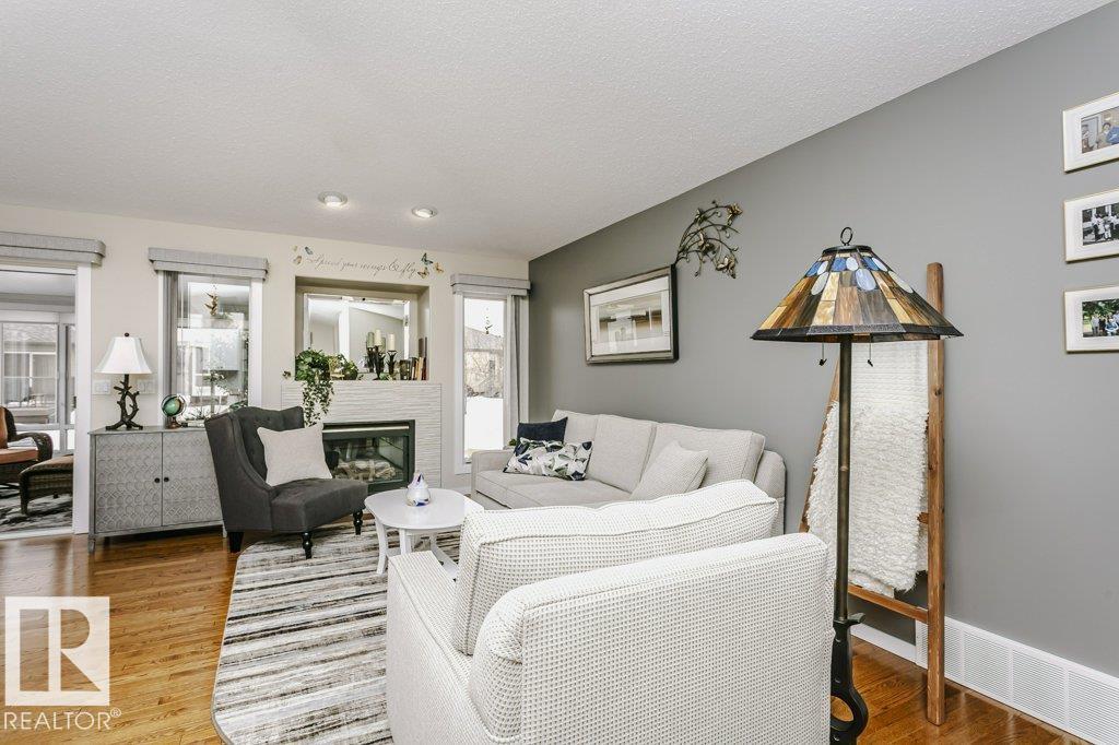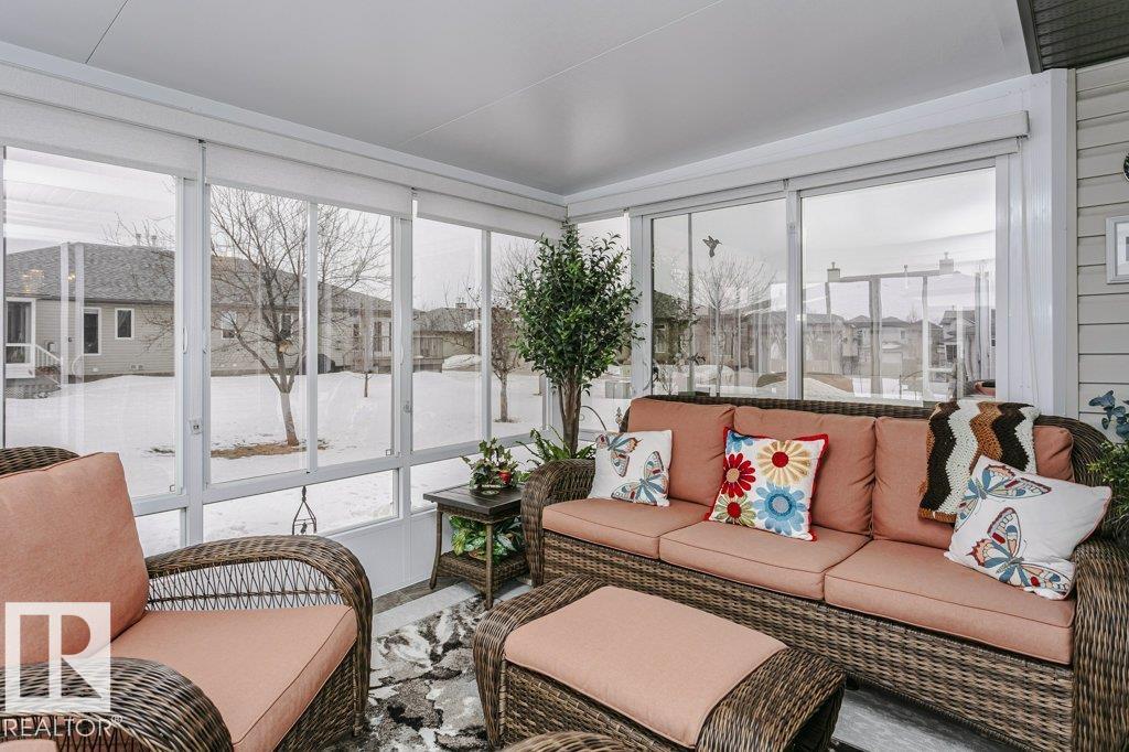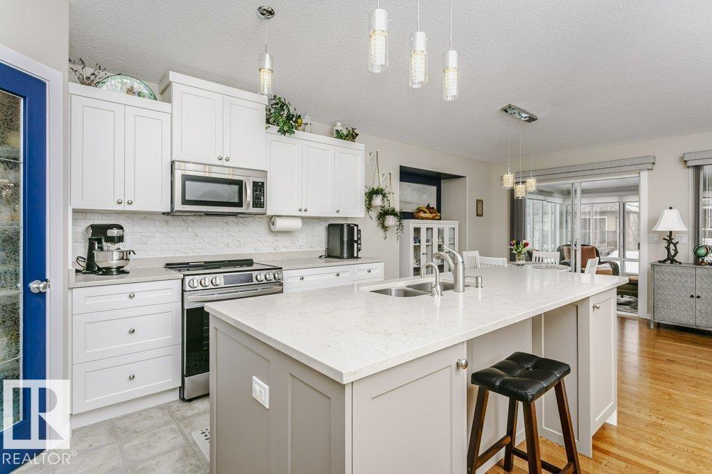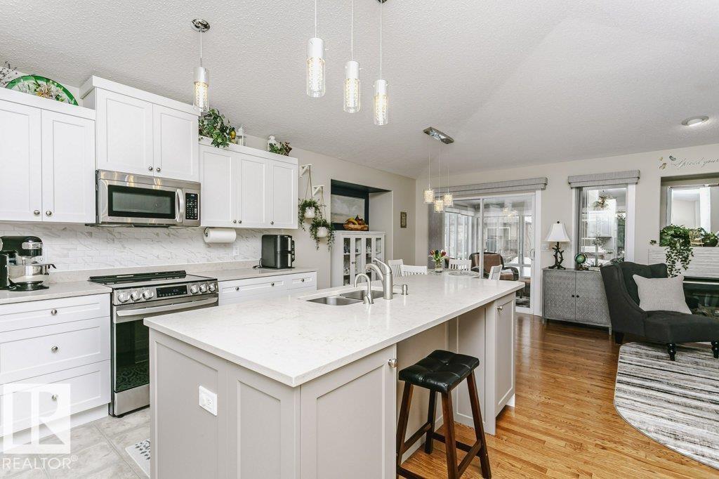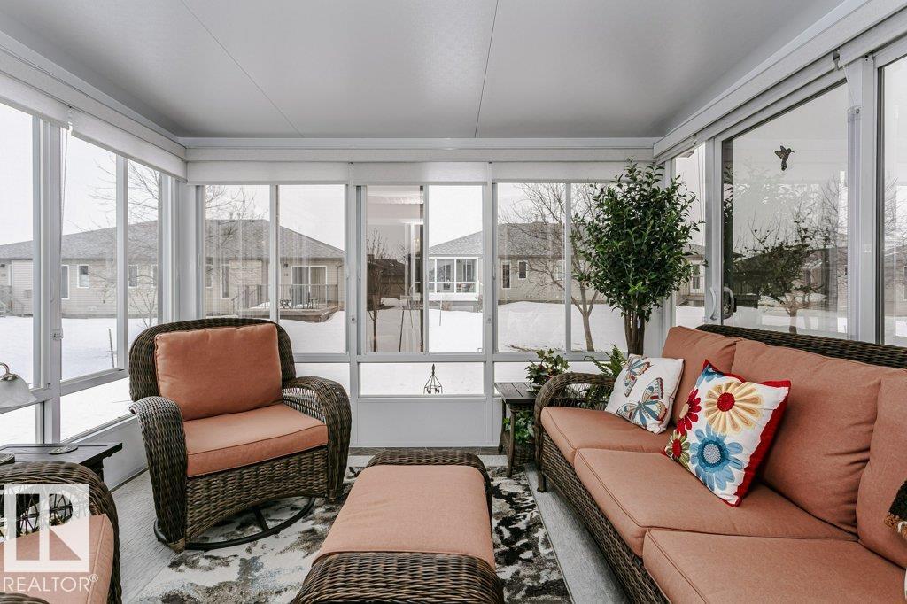 Welcome to this beautifully updated bungalow in a desirable 55+ adult living community, offering comfort, style, and convenience. This home features a spacious 20x24 attached garage and an extra-long driveway for ample parking. Inside, you?ll find an open-concept layout with a brand NEW kitchen, complete with an island and instant hot water tap?perfect for tea lovers. The inviting new sunroom adds bright, relaxing living space. The main floor boasts a large primary bedroom with a walk-in closet, additional wardrobe storage, and a private ensuite, along with a second 4-piece bathroom and a versatile front den. Enjoy the ease of main floor laundry and a beautifully updated fireplace with thermostat control. The fully finished basement offers high ceilings, two LARGE bedrooms, a 3-piece bathroom, generous storage, flex space, and a spacious family room. Additional upgrades include newer furnace, A/C, water softener, and UV-protective window film. A perfect blend of comfort and modern updates.