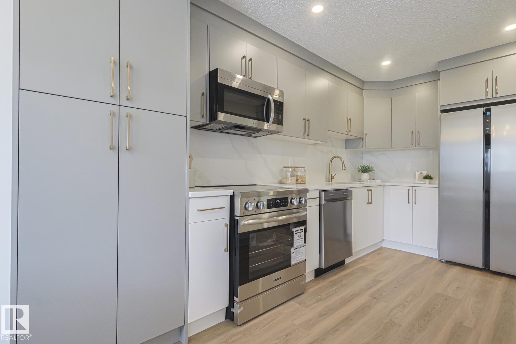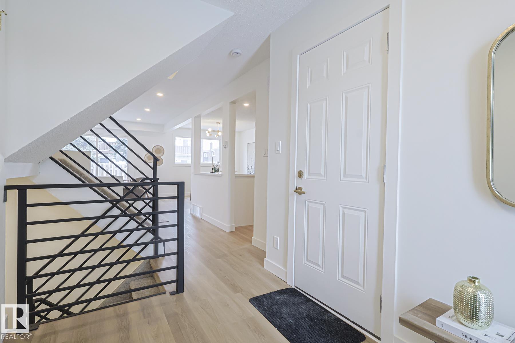 STUNNINGLY RENOVATED 2 STOREY TOWNHOME! This showpiece has 4 BEDROOMS UPSTAIRS! Beautifully transformed with high-end finishes and impeccable attention to detail throughout. The main level features a gorgeous chef?s kitchen with sleek new CABINETRY, QUARTZ countertops & backsplash, stylish island and premium BRAND NEW APLLIANCES, all open to a bright dining area and inviting living room with large patio doors leading to a private yard that backs onto a WALKING TRAIL! You?ll love the luxury vinyl plank flooring, elegant CUSTOM RAILINGS, designer lighting and pot lights, fresh textured ceilings, new trim, doors, electrical outlets, new HWT with upgraded PLUMBING LINES. Upstairs offers 4 spacious bedrooms, a spa-inspired bathroom with custom tile, and a private balcony off the primary retreat. The fully finished basement adds a cozy family room with fireplace, laundry and excellent storage. Located in a well-managed complex with LOW condo fees, close to parks, schools and shopping. DRIVEWAY CAN FIT 2 TRUCKS!