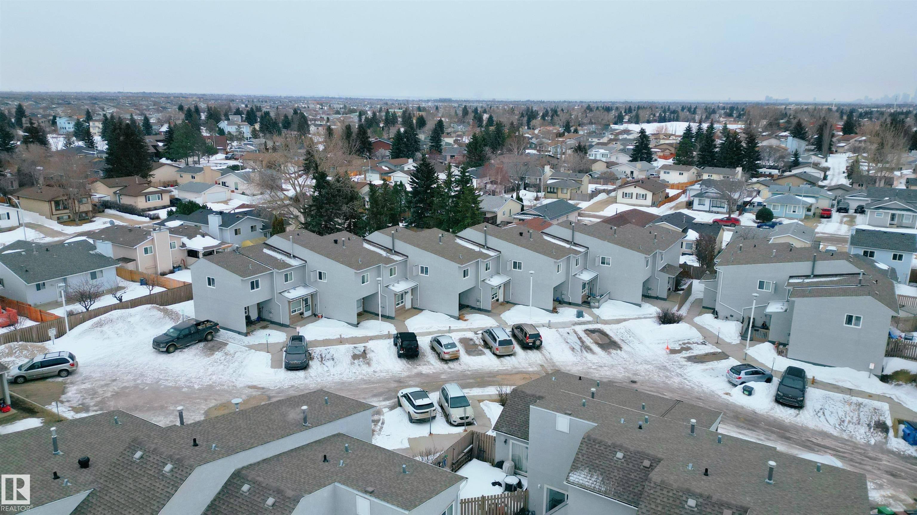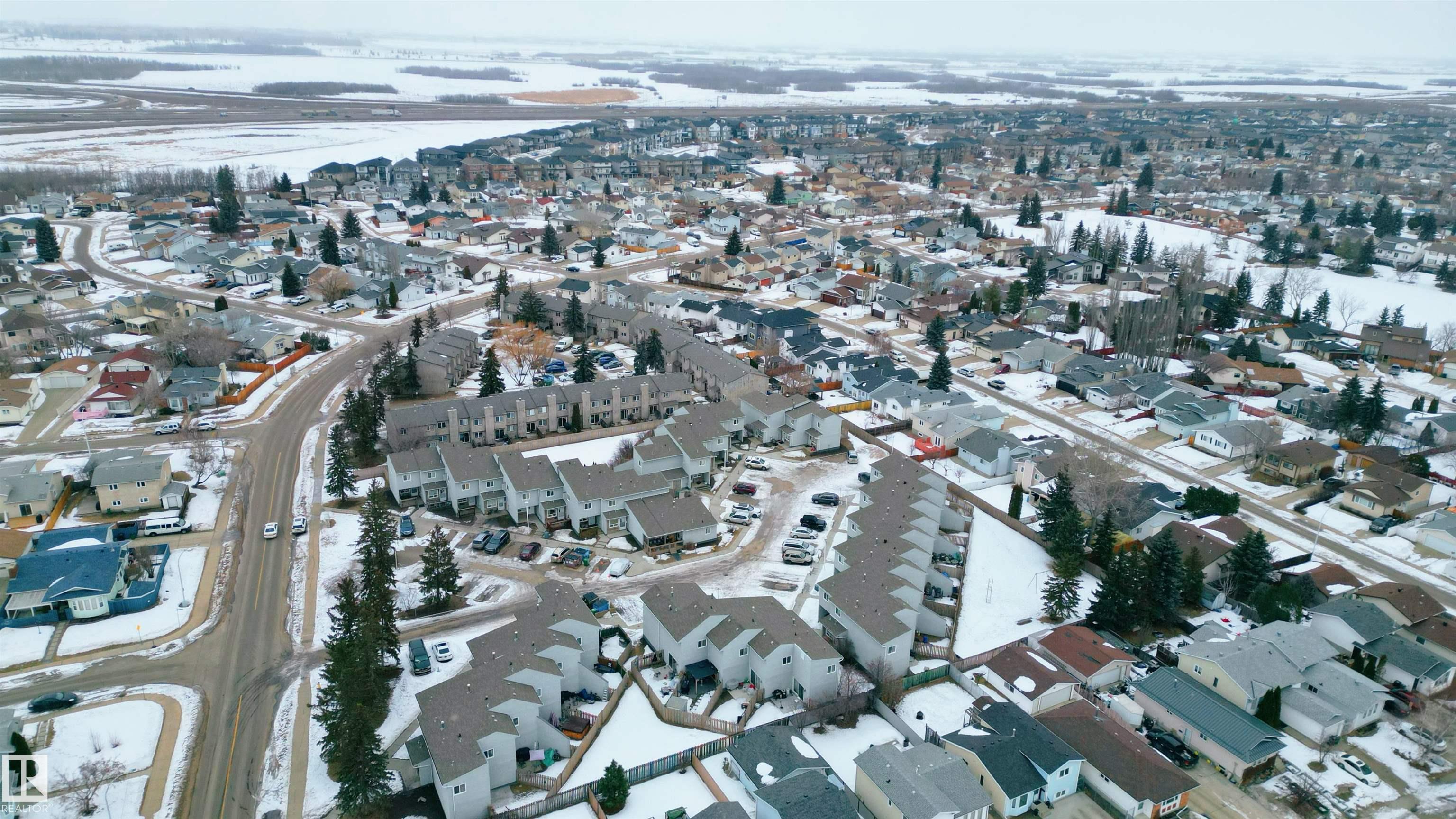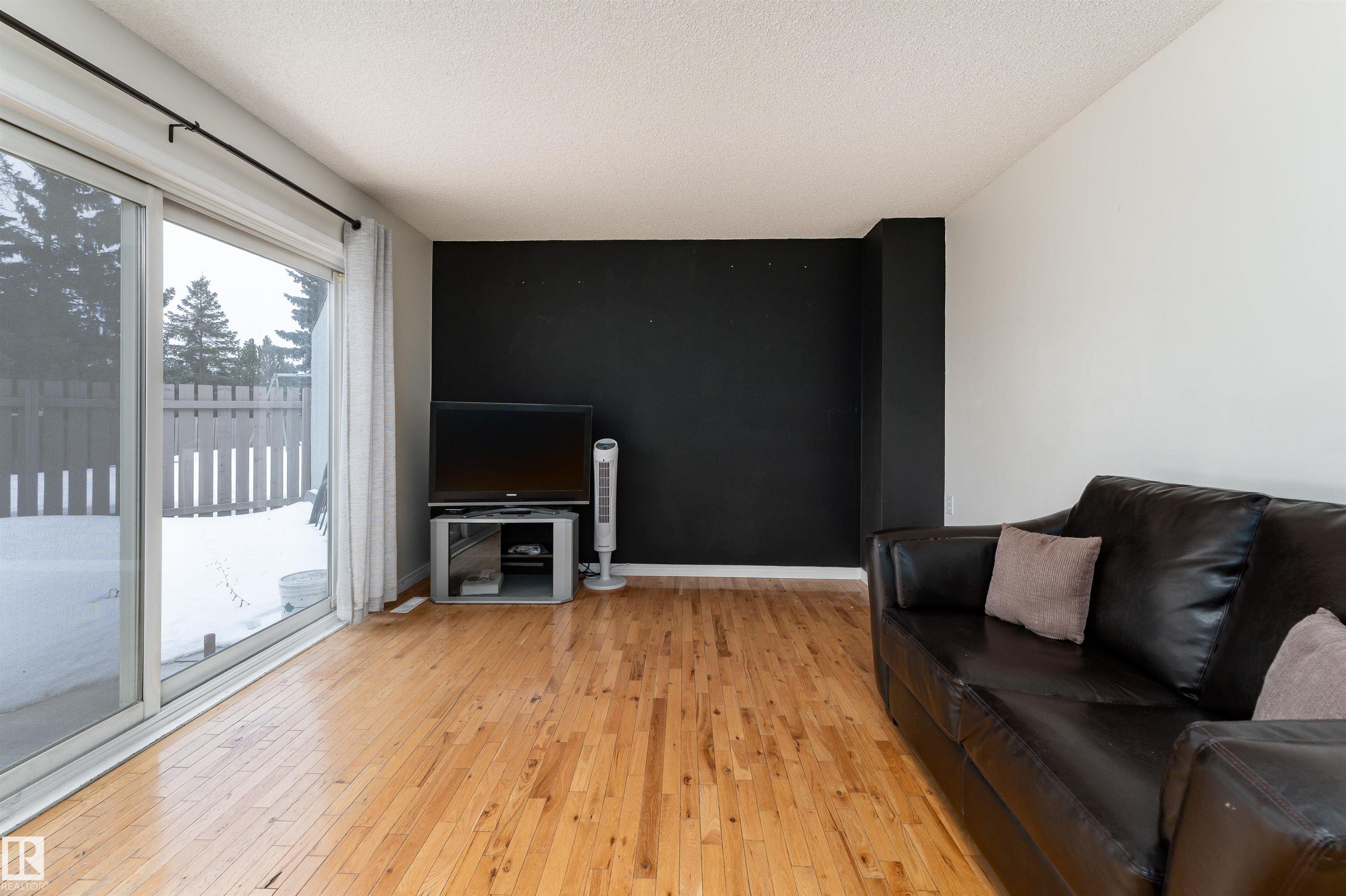 First-time buyers and investors ? step into comfort, value, and everyday convenience. This west-facing townhome in family-friendly Lago Lindo offers 960 sq ft plus a finished basement with a practical, inviting layout. The main floor features a bright eat-in kitchen with white upper cabinetry, darker lower cabinets, neutral countertops, stainless steel appliances, and ample storage, flowing into a spacious living room highlighted by warm hardwood flooring. Patio doors lead to your private fenced, east-facing backyard backing the greenbelt, perfect for enjoying morning and mid-day sun. Upstairs, 2 generous sized bedrooms sit on opposite sides of the full bathroom for added privacy. The finished basement adds flexible living space with a family or recreation area plus a large laundry and utility room with a convenient wet bar sink. Close to schools, shopping, amenities, and quick access to The Anthony Henday. An ideal fit for first-time buyers and investors ? don?t miss the chance to make this home yours!